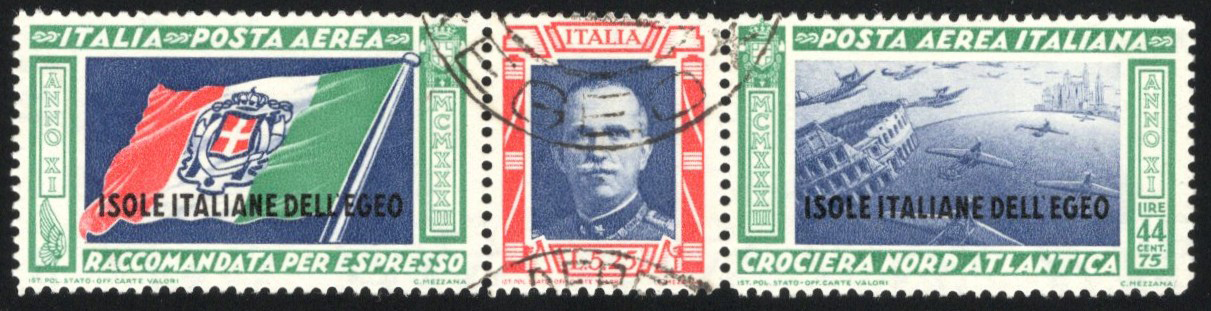 757 O C26-C27 image1933 Aegean Islands Airmail Triptic, used, with clean c.d.s. cancels, very fine.