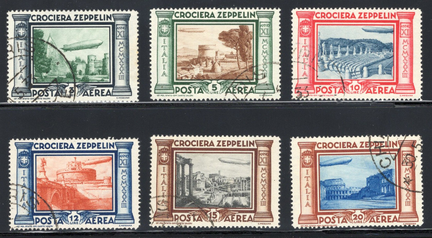 758 O C42-C47 image1933 3l to 20l Graf Zeppelin Set, used with neat c.d.s. cancels, very fine. A scarce set.