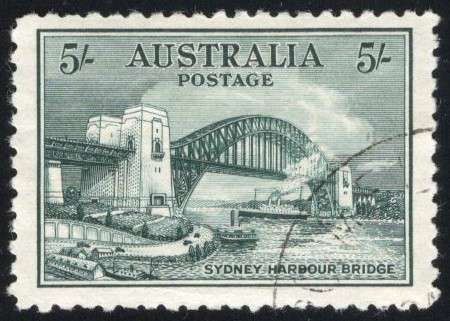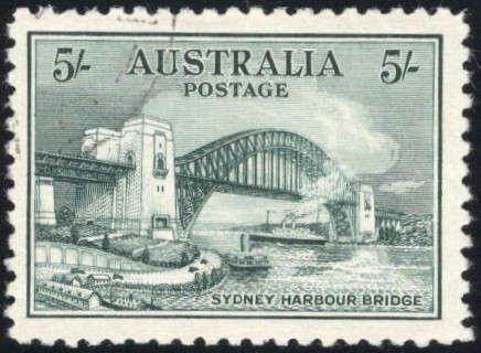 844 O 132 image1932 5sh Grey Green Sydney Harbor Bridge, used with very light and unobtrusive c.d.s. cancel, with deep colour, a fresh and very fine stamp.
