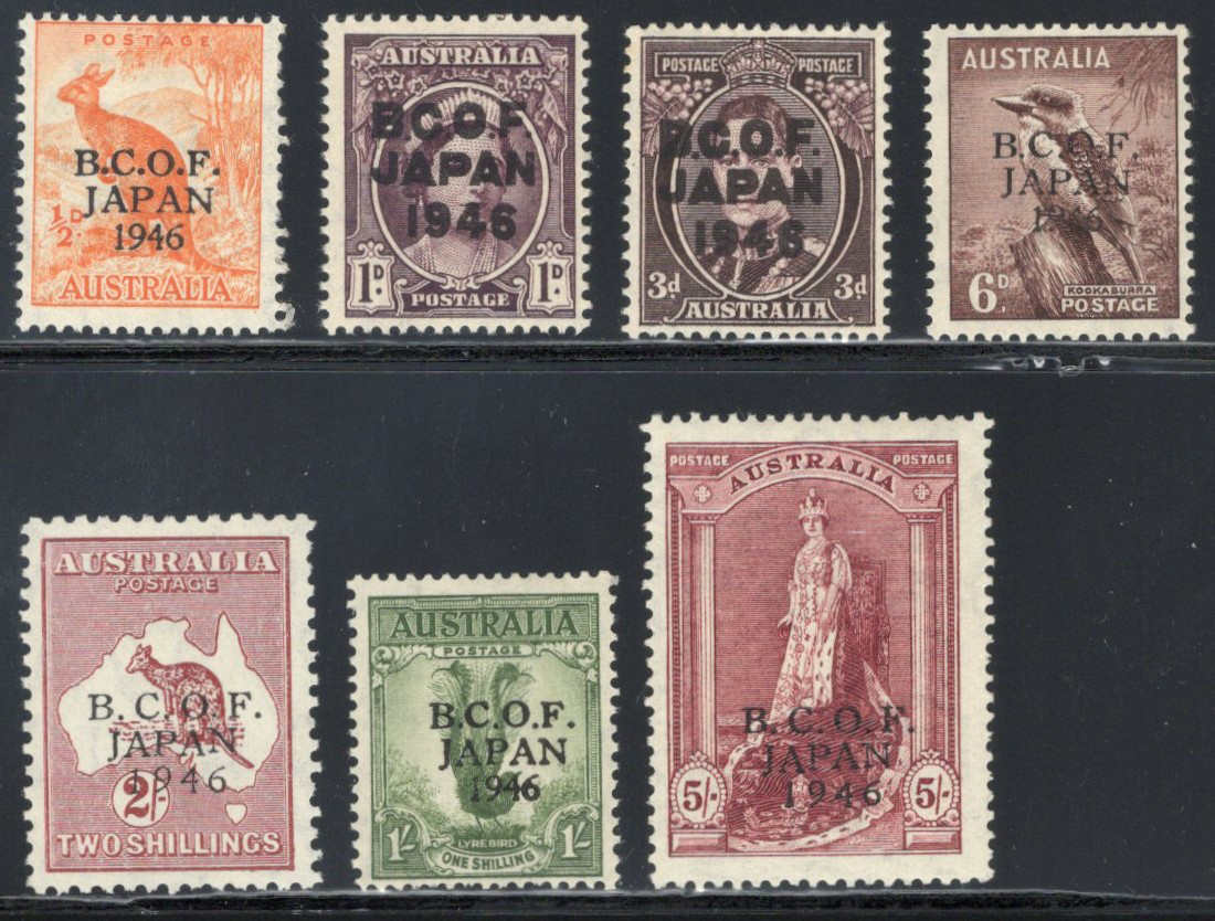 853 nh M1-M7 image1946-47 ½d to 5sh B.C.O.F Overprinted Set, mint never hinged and fine.