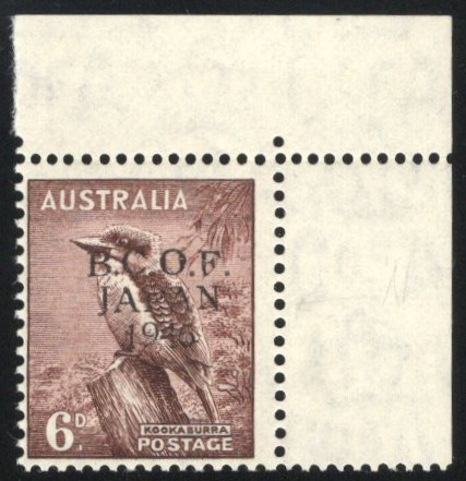 852 nh J4c (SG) image1946 6d Occupation R.C.O.F. Japan Overprint with "Narrow N" Variety, a mint never hinged upper right corner single clearly showing the variety, from position R. 1/8, fine.
