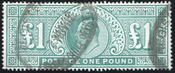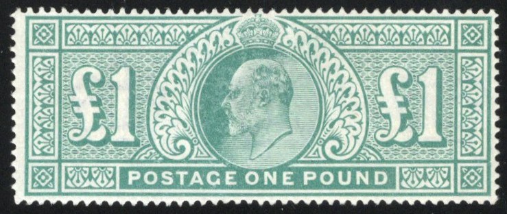 906 ng 142 image1902 £1 Green King Edward VII, a well centered and fresh stamp which has been regummed, possibly to appear as mint (traces of red crayon, or possibly offset on back), still a clean and very presentable stamp.