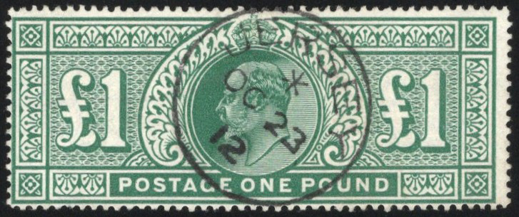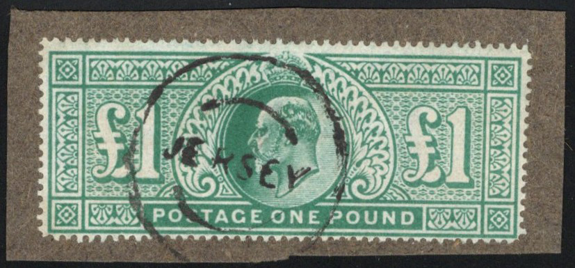 908 O 142a image1911 £1 Deep Green King Edward VII, used with a neat, and centrally struck Jersey OC 23 / 12 circular datestamp, fine. A lovely stamp.