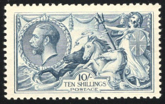 911 og 181 image1919 10sh Blue King George V Seahorse, mint hinged, with light toning spot on gum, else very fine.