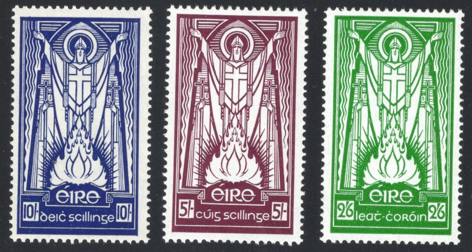 963 nh 96-98 image1927 2sh6d to 10sh St Patrick and Paschal Fire Set, SE in Monogram Watermark, mint never hinged, quite fresh and well centered, very fine.