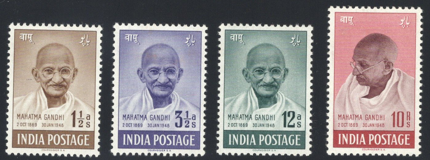961 og 203-206 image1948 1½a to 10r Mahatma Gandhi Set, mint hinged well centered and very fine.