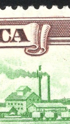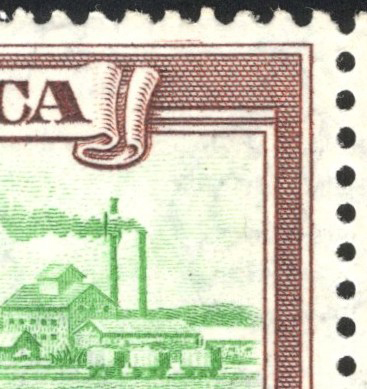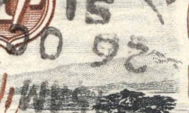967 O 145ad (SG) image1938 1sh Black and Yellowish Brown King George VI Pictorial, with "Mountain Retouch" Variety, used with OCT.26.1951 c.d.s. cancel just missing the variety from position 7BR. 5/10. There are a few shorter perfs at top, else fine and scarce. (Scan 1) (Scan 2) (All Scans)