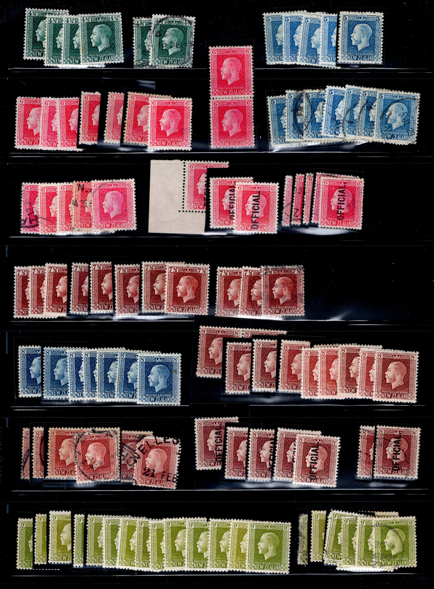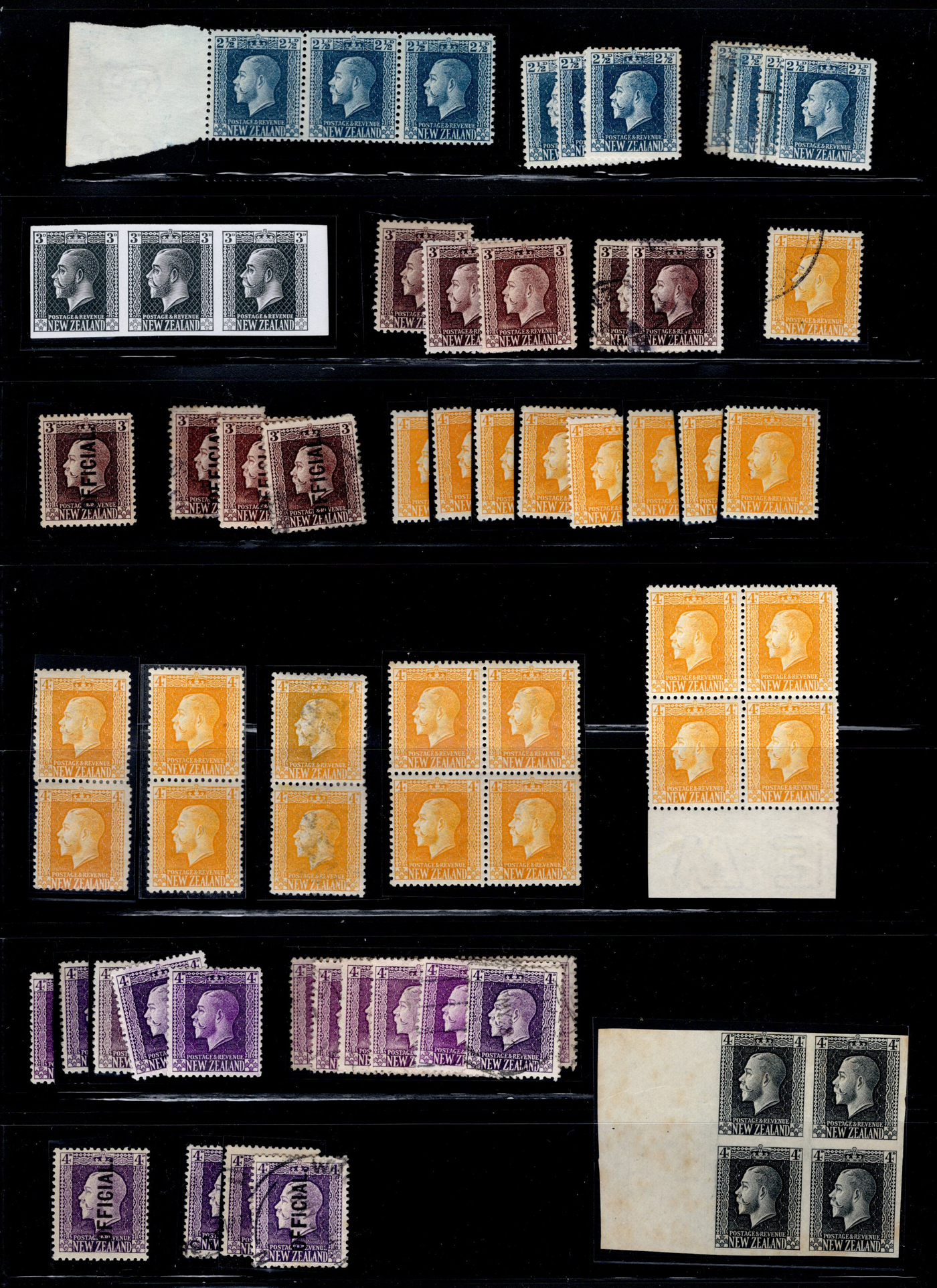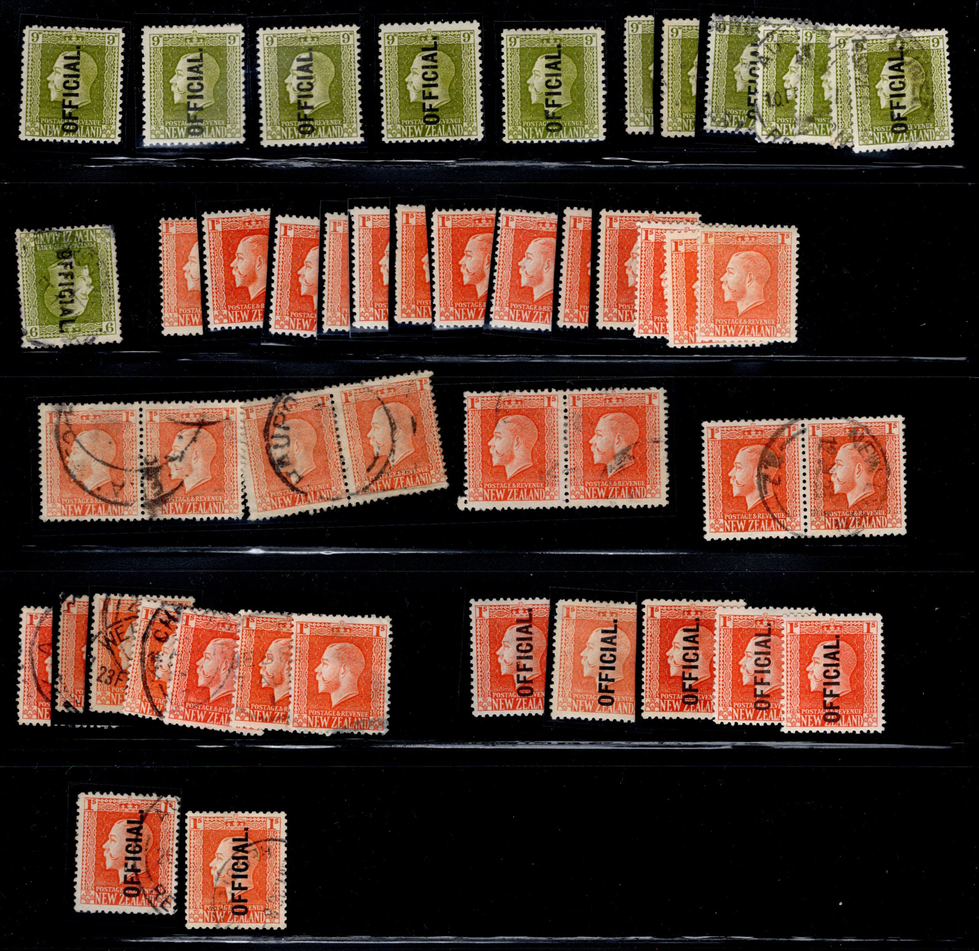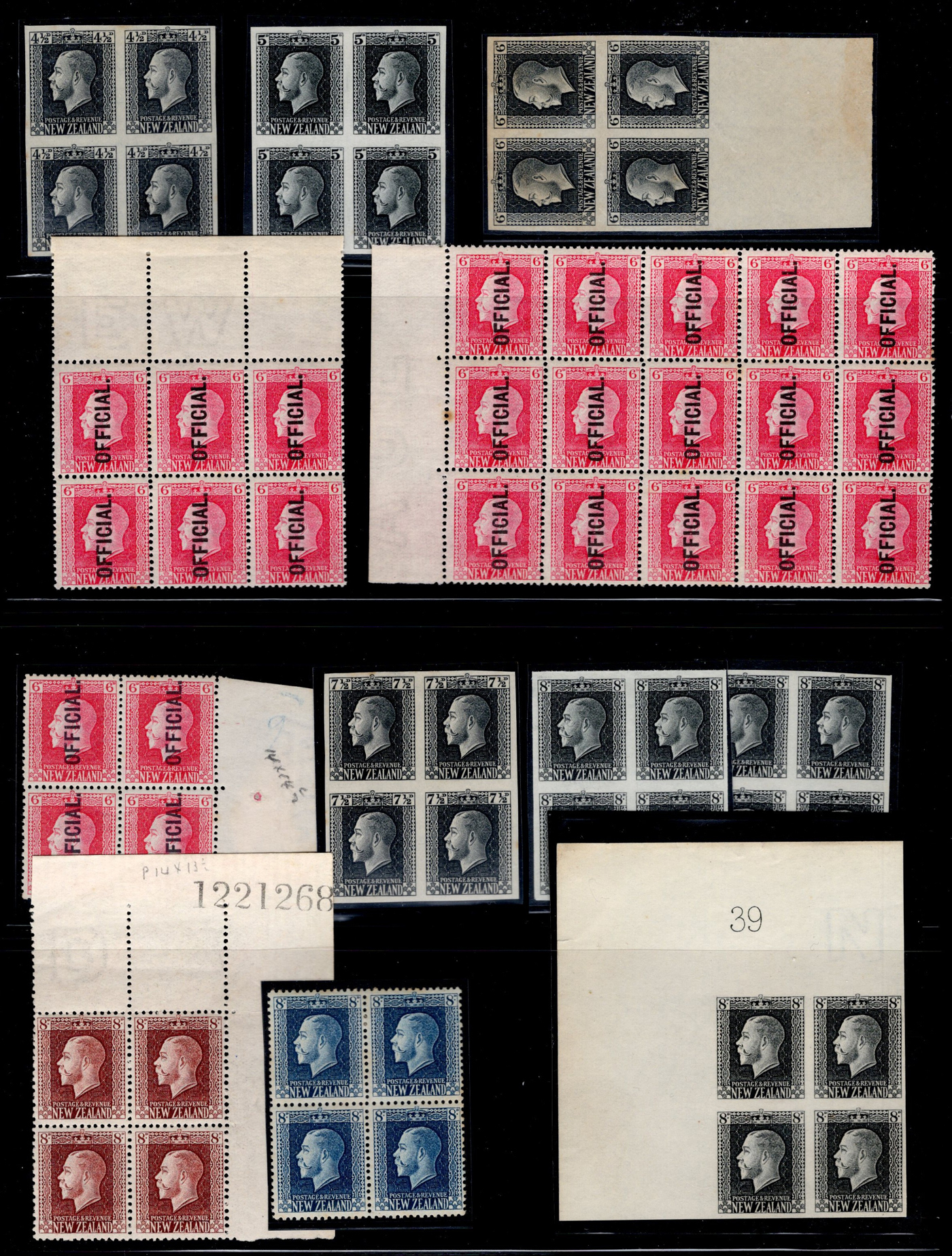 980 og/O 152/159, O48/O53 imageBalance of the 4½d to 1sh King George V Holding That We Have Been Breaking Up, with four pages of mostly mint, with plate proofs, officials and “2 perf-pairs”, with light to moderate duplication. Dozens of $10-$30 stamps, and lots of potential to study colour shades. Expect the mint to be hinged, with relatively few faults and generally fine to very fine. A great opportunity to expand the eye appeal of your collection. (Scan 1) (Scan 2) (Scan 3) (Scan 4) (All Scans)