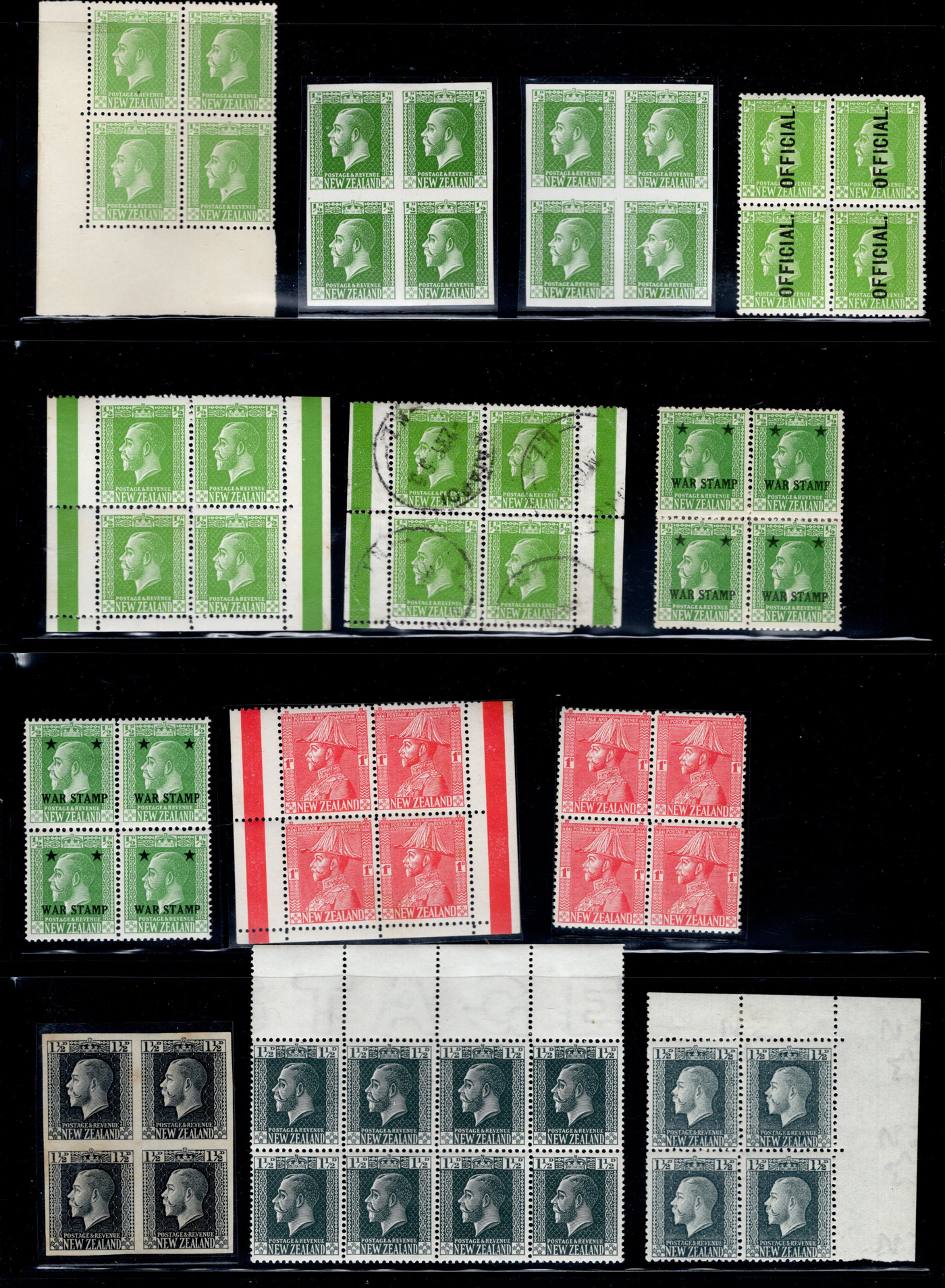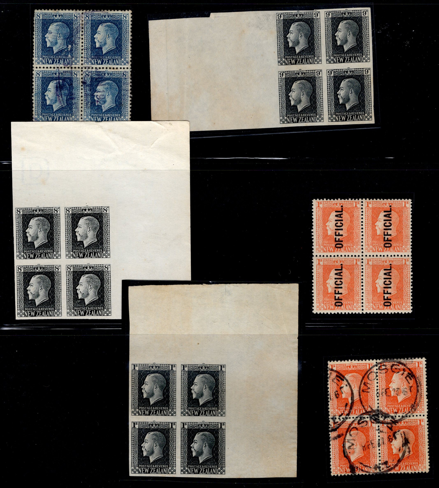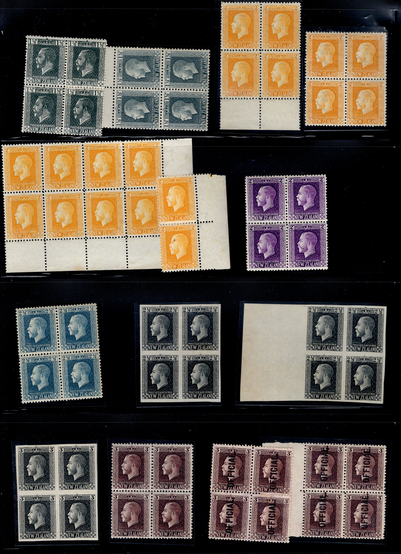 978 og/O 144/184, O41/O52, MR1 imageBalance of The ½d to 4d King George V Holding That We Have Been Breaking Up, with four pages of mostly mint, with plate proofs, partial booklet panes, officials, “2 perf-pairs” a “Colour Print” overprint, with light to moderate duplication. Expect the mint to be hinged, with relatively few faults and generally fine to very fine. A great opportunity to expand the eye appeal of your collection. (Scan 1) (Scan 2) (Scan 3) (Scan 4) (All Scans)