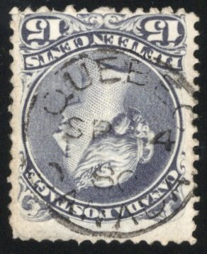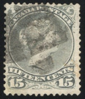 Large Queen on Very Thick Paper, used with a useful and well centered SEP.4.1880 c.d.s. cancel from Québec. The stamp has faults, but is dated in period for this paper and should prove useful to calendar collectors or students of the 15c value. A