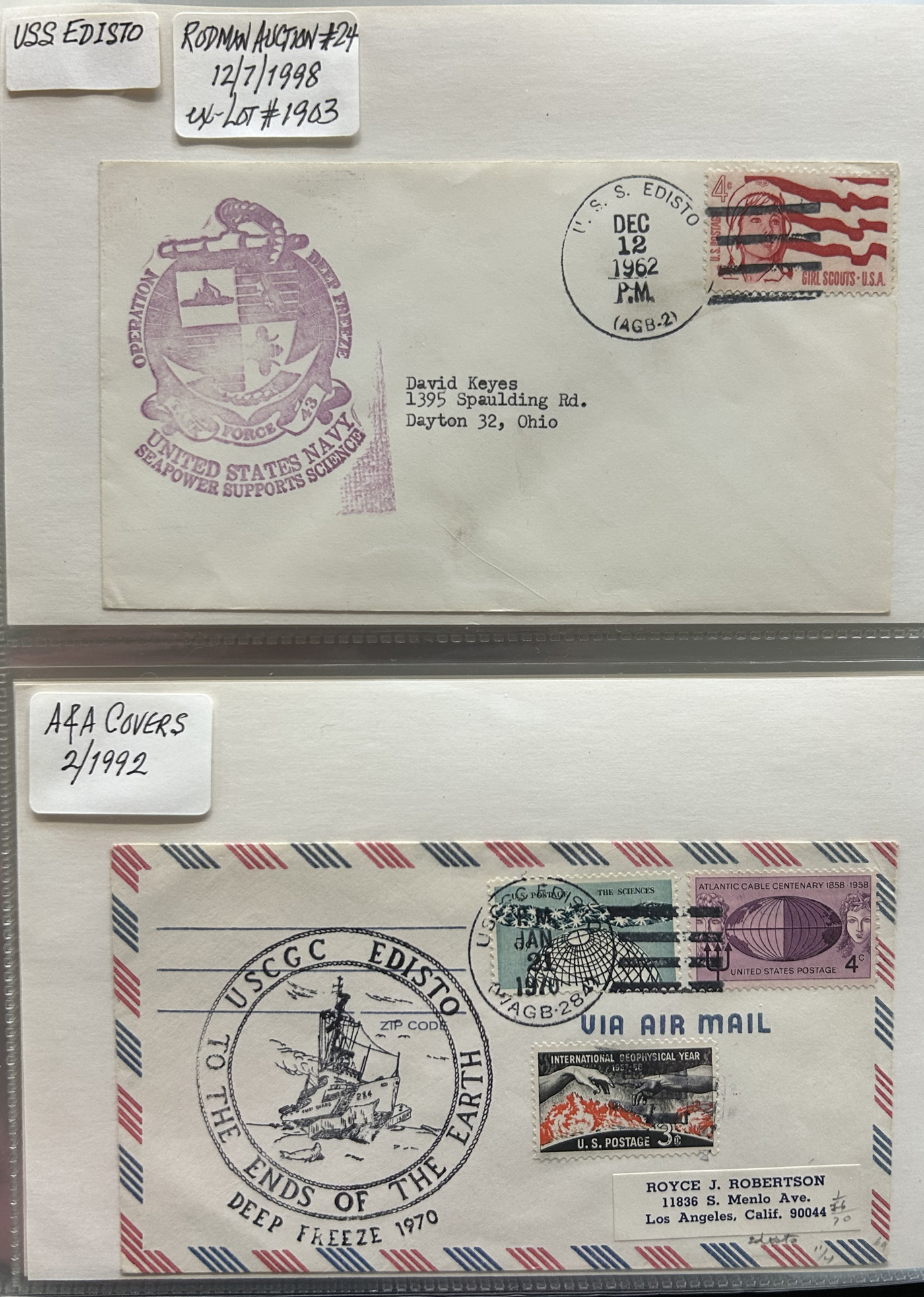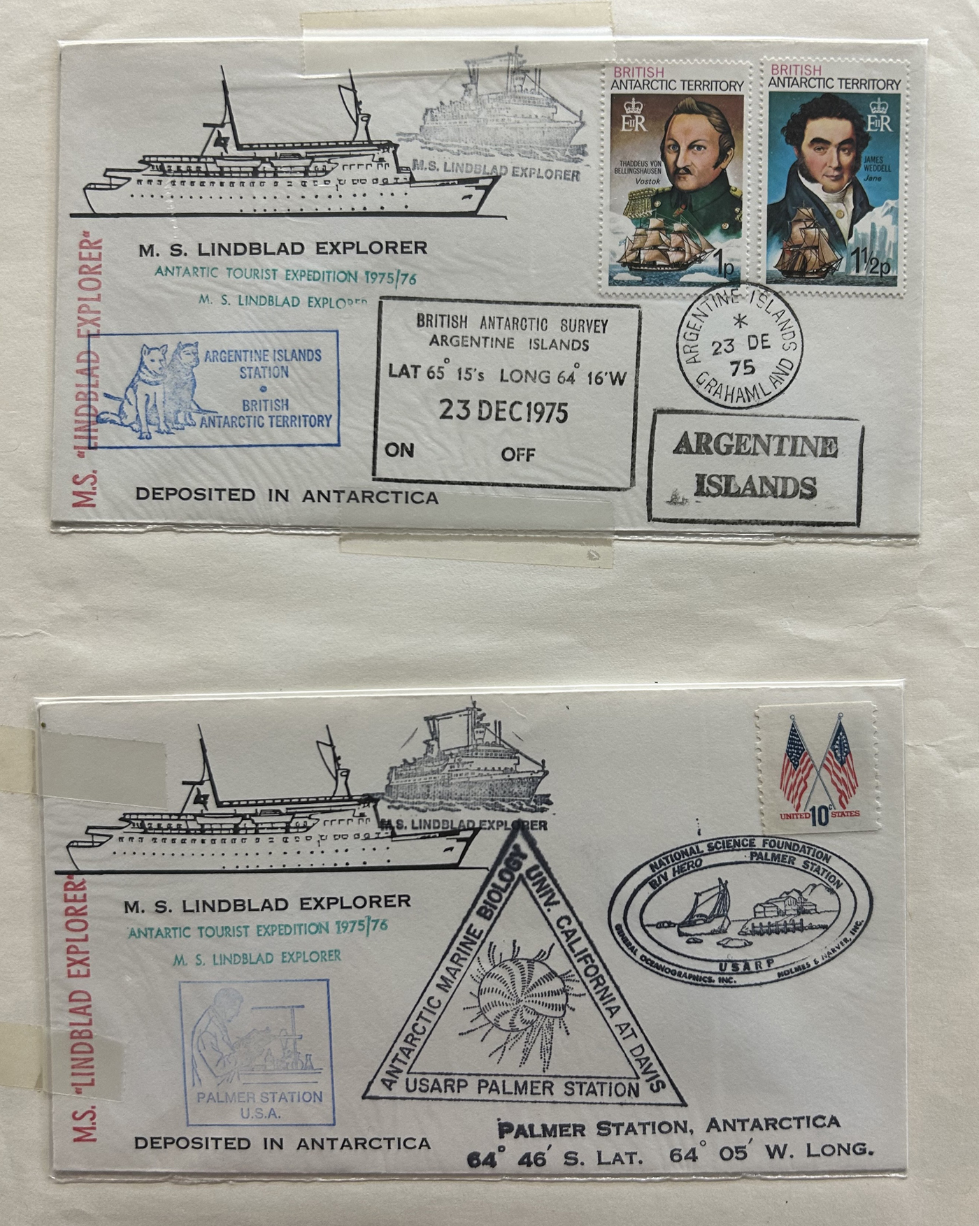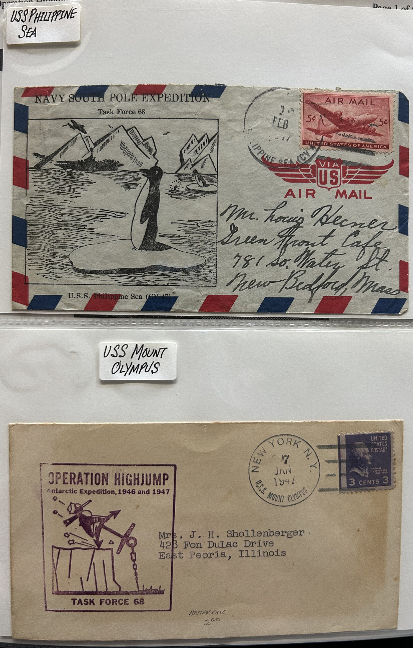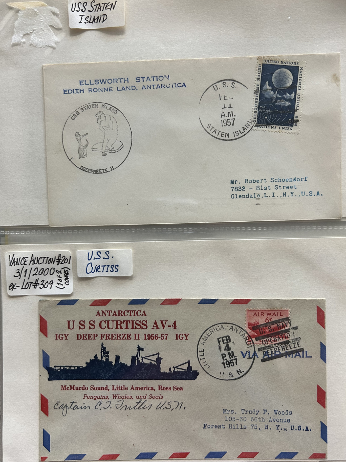 1218 CVR/nh   imageExtensive Collection of Antarctica Covers and Stamps in Three Volumes, Early 1950s to 2000s, consisting of 312 total covers and cards, with 67 in one binder from many different countries, plus 245 in the other two, mostly franked with United States stamps. All sorts of subjects covered, loaded with special cachets and postmarks, plus a lot of ephemera literature on each expedition, operation, project, expedition, etc. Very fine throughout. (Scan 1) (Scan 2) (Scan 3) (Scan 4) (Scan 5) (Scan 6) (Scan 7) (Scan 8) (Scan 9) (Scan 10) (Scan 11) (Scan 12) (Scan 13) (All Scans)