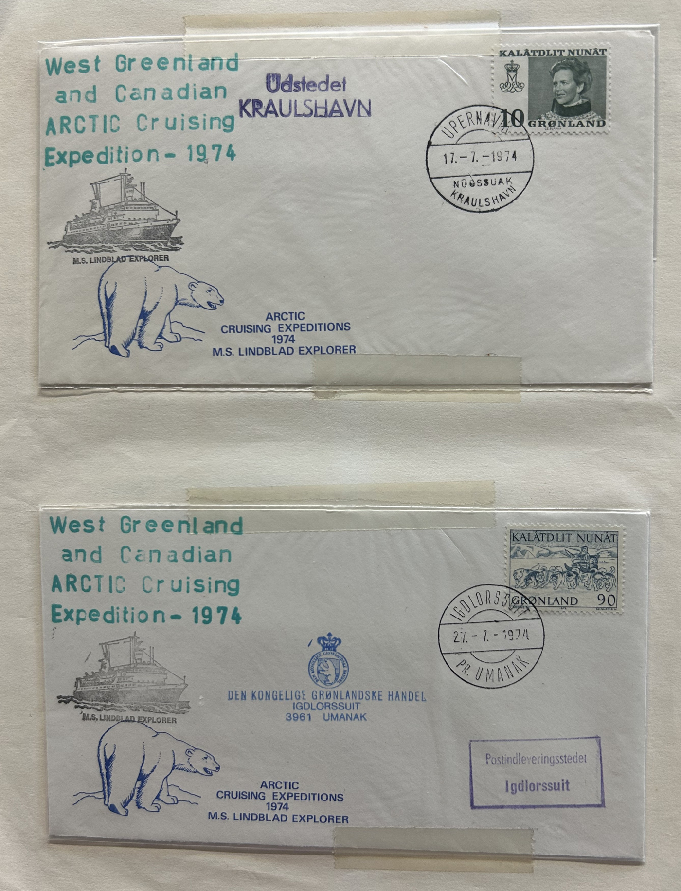 1217 CVR   imageCollection of 51 Arctic and Antarctic Covers, from a variety of different countries (many Greenland), with special event and special trip postmarks, handstamps, etc. Saw many better frankings, etc. Pictures show a small sampling, overall very fine. (Scan 1) (Scan 2) (Scan 3) (Scan 4) (Scan 5) (All Scans)