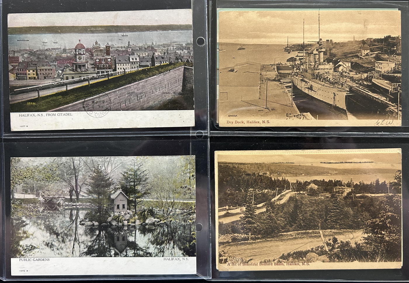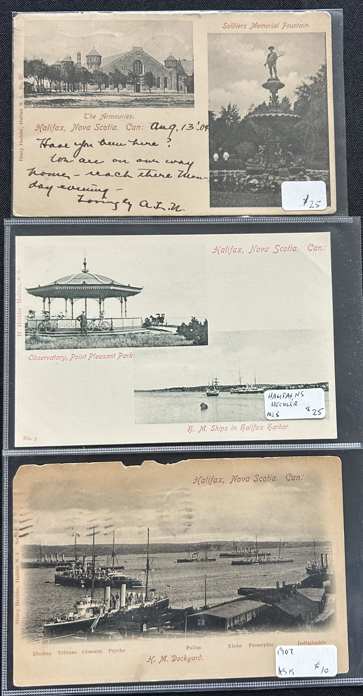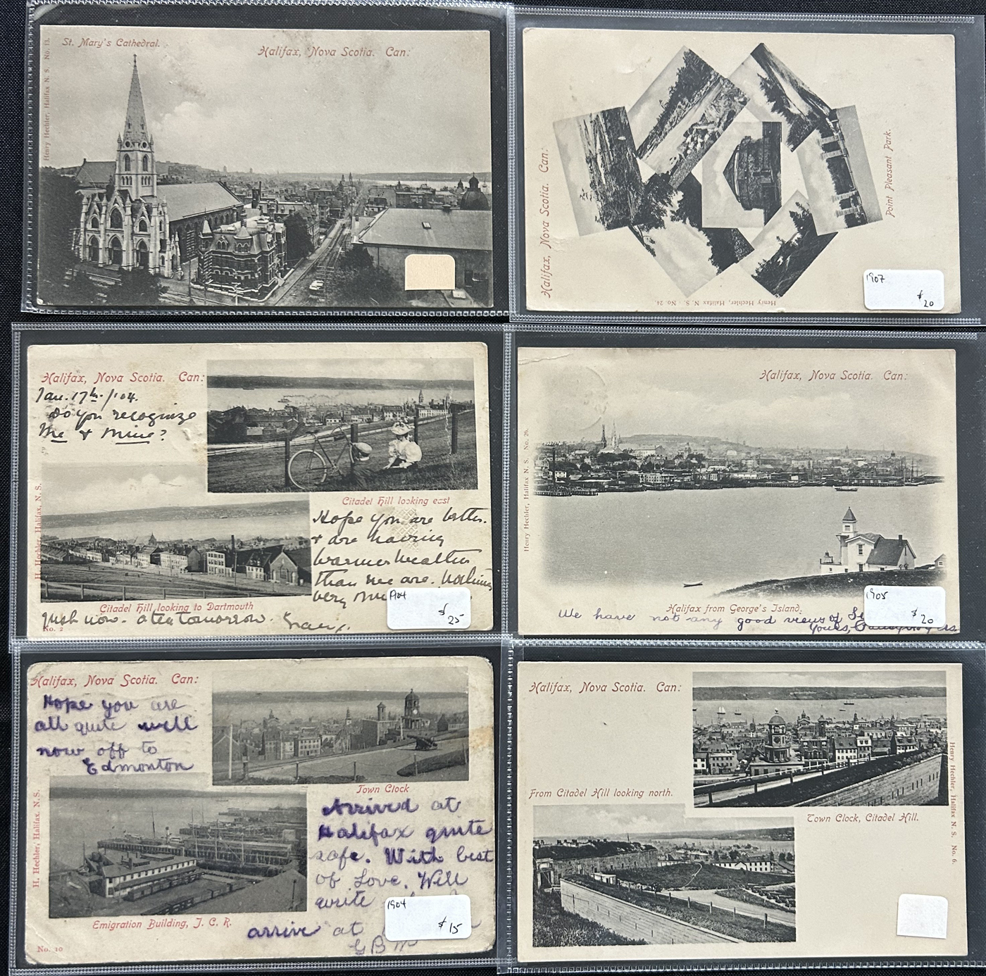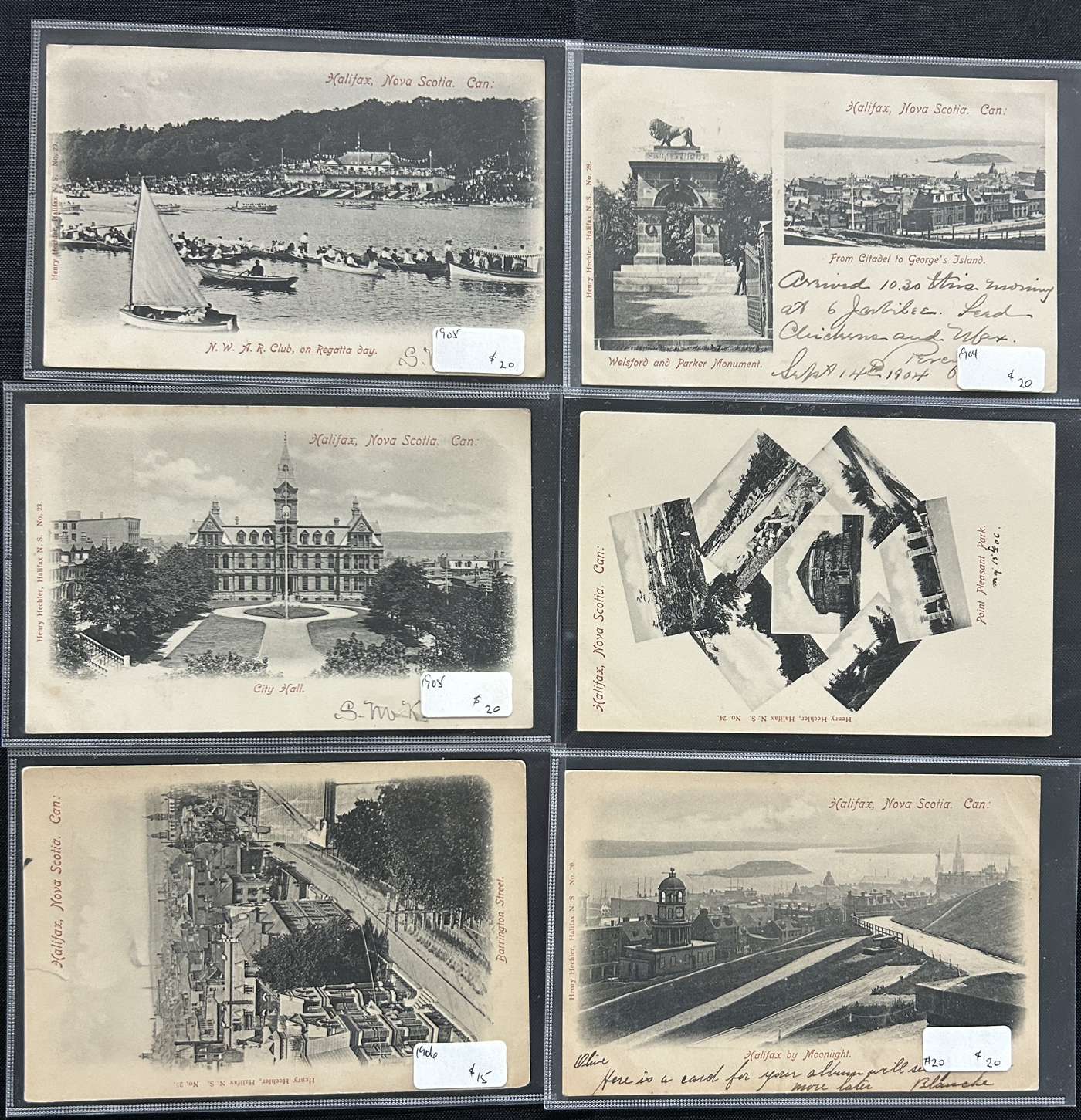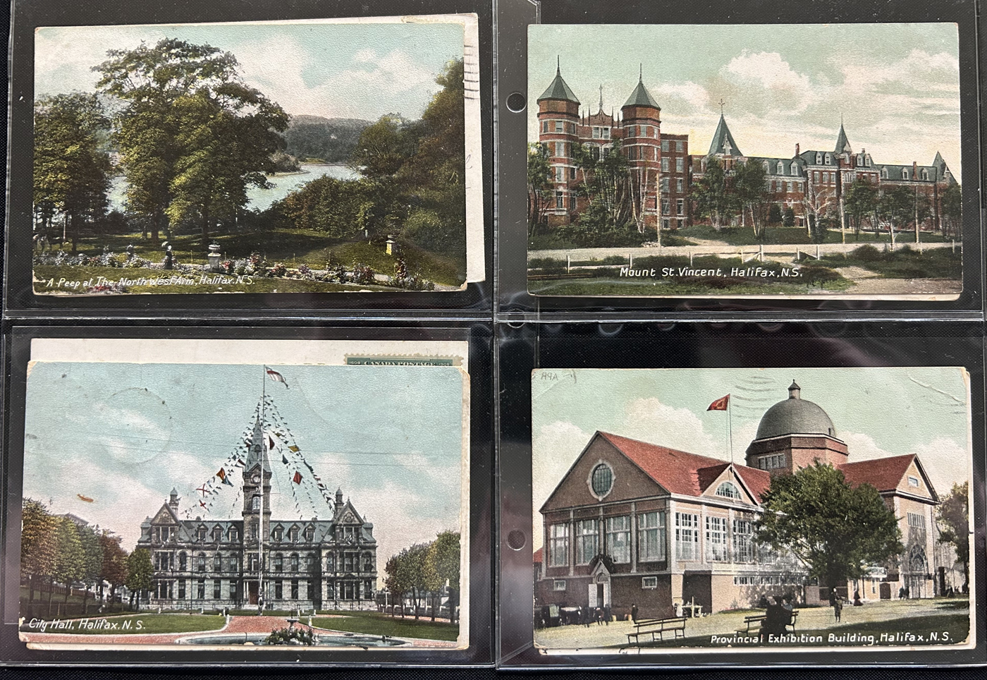 1213 PC   imageCollection of 129 Early Halifax, Nova Scotia Picture Postcards, in a postcard binder, with about 120 different (mostly pre-World War II), including a wide variety of cards such as patriotic (several types, incl. series), leather, real photo, street scenes, Henry Hechler views, and more. Mix of used and unused and overall fine to very fine. All different cards pictured online (duplicates tucked under). (Scan 1) (Scan 2) (Scan 3) (Scan 4) (Scan 5) (Scan 6) (Scan 7) (Scan 8) (Scan 9) (Scan 10) (Scan 11) (Scan 12) (Scan 13) (Scan 14) (Scan 15) (Scan 16) (Scan 17) (Scan 18) (Scan 19) (Scan 20) (Scan 21) (Scan 22) (Scan 23) (Scan 24) (Scan 25) (Scan 26) (Scan 27) (Scan 28) (Scan 29) (Scan 30) (Scan 31) (All Scans)
