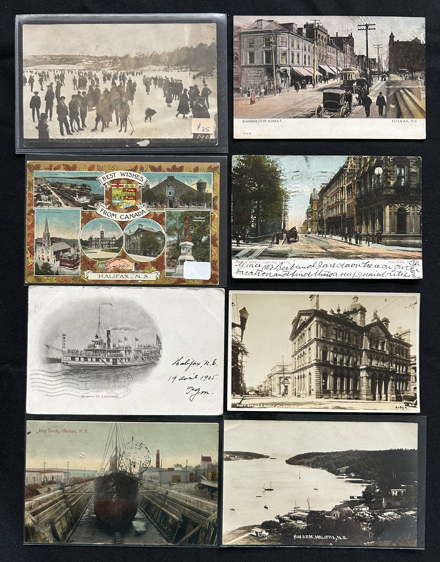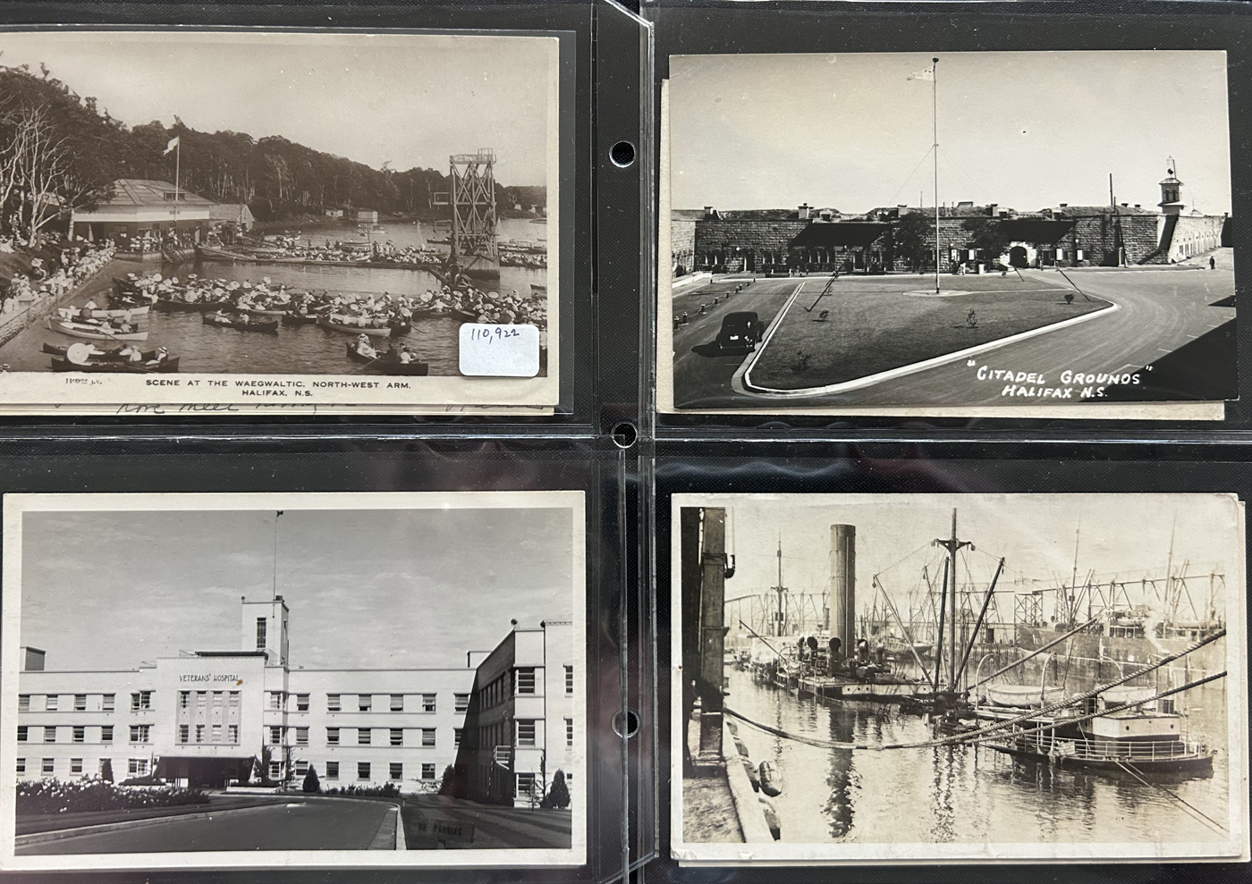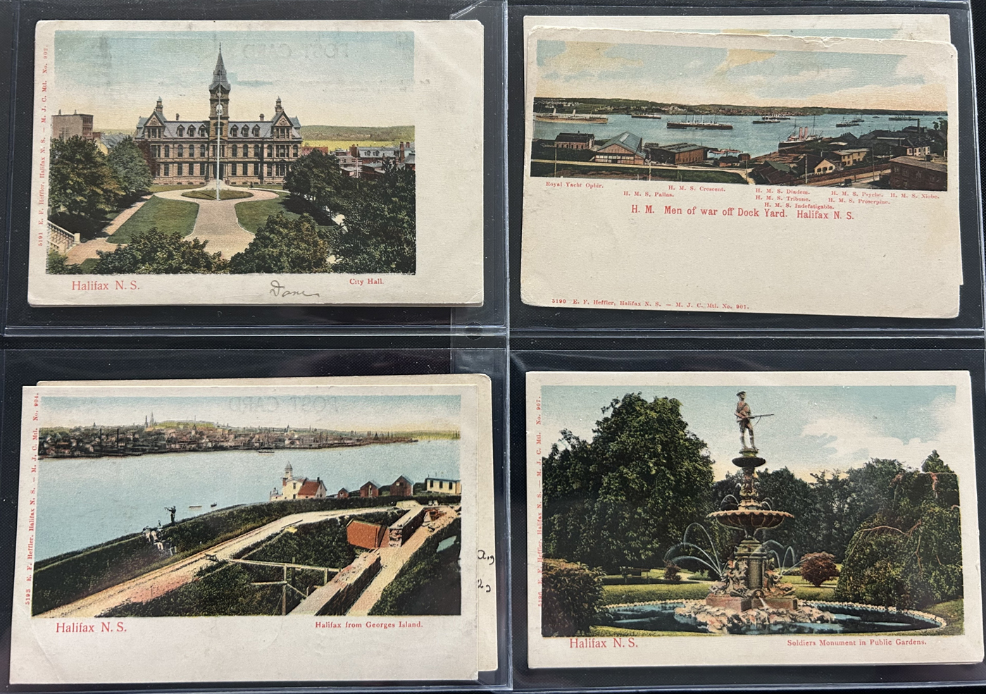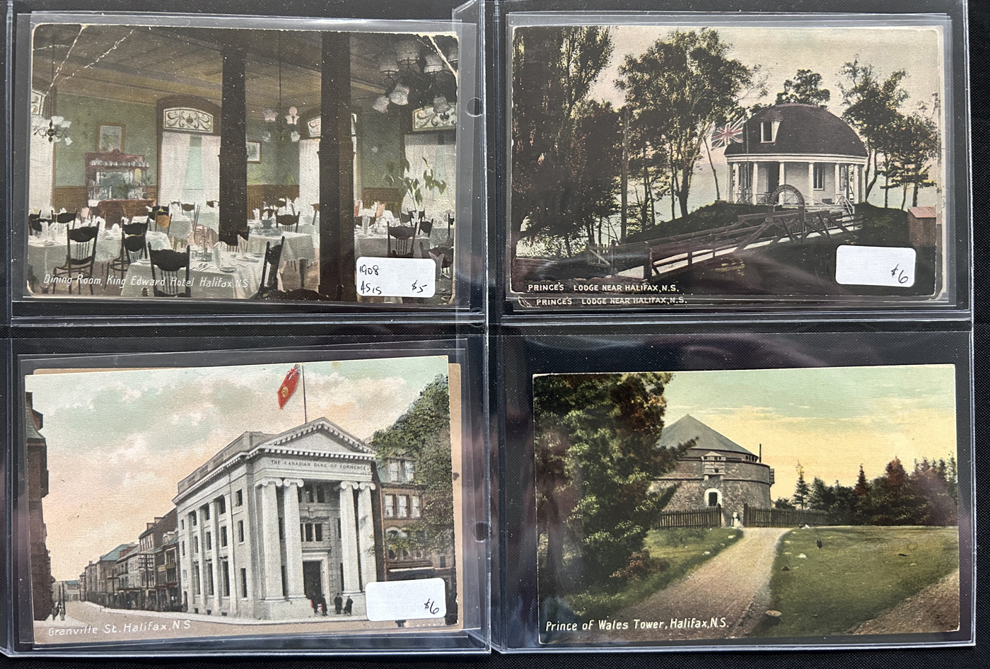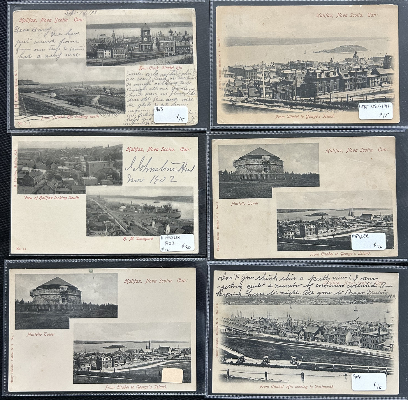 1213 PC   imageCollection of 129 Early Halifax, Nova Scotia Picture Postcards, in a postcard binder, with about 120 different (mostly pre-World War II), including a wide variety of cards such as patriotic (several types, incl. series), leather, real photo, street scenes, Henry Hechler views, and more. Mix of used and unused and overall fine to very fine. All different cards pictured online (duplicates tucked under). (Scan 1) (Scan 2) (Scan 3) (Scan 4) (Scan 5) (Scan 6) (Scan 7) (Scan 8) (Scan 9) (Scan 10) (Scan 11) (Scan 12) (Scan 13) (Scan 14) (Scan 15) (Scan 16) (Scan 17) (Scan 18) (Scan 19) (Scan 20) (Scan 21) (Scan 22) (Scan 23) (Scan 24) (Scan 25) (Scan 26) (Scan 27) (Scan 28) (Scan 29) (Scan 30) (Scan 31) (All Scans)
