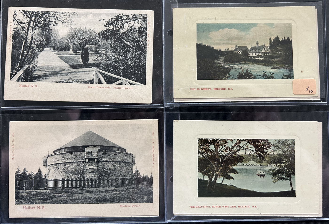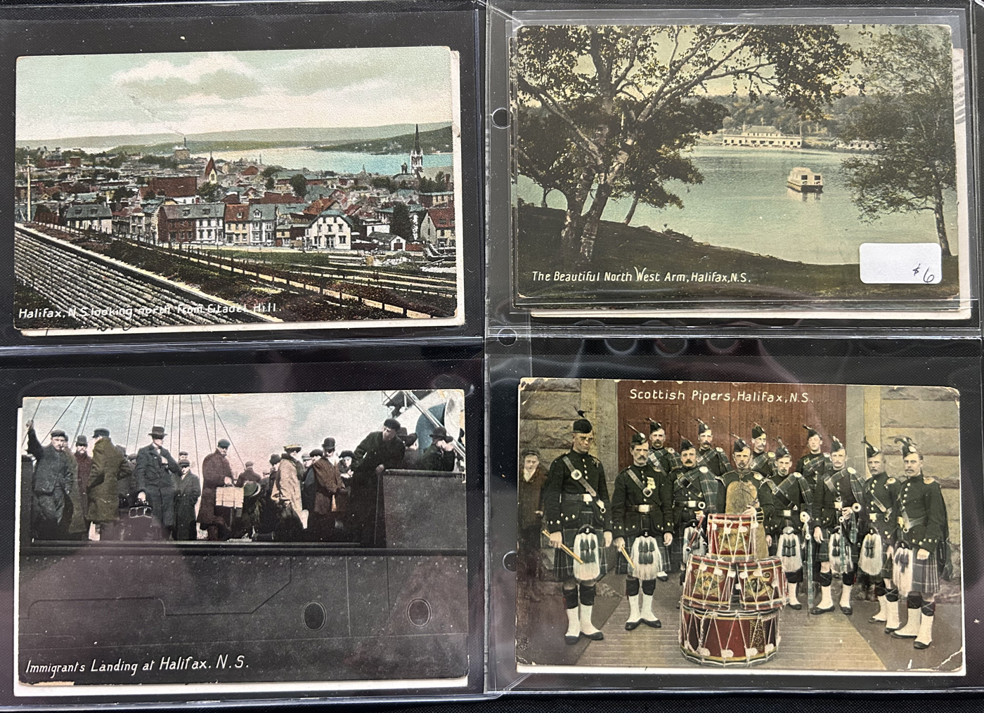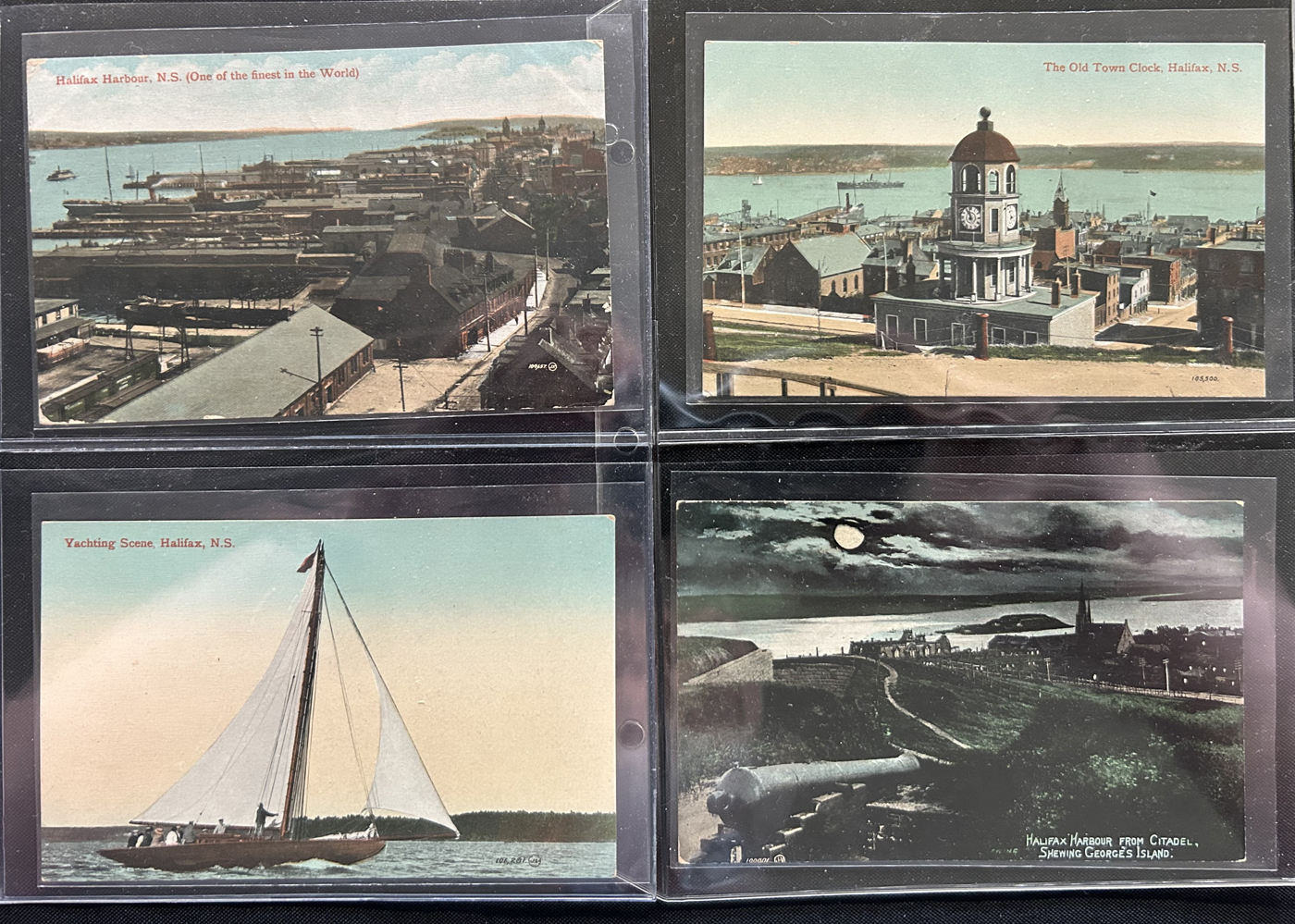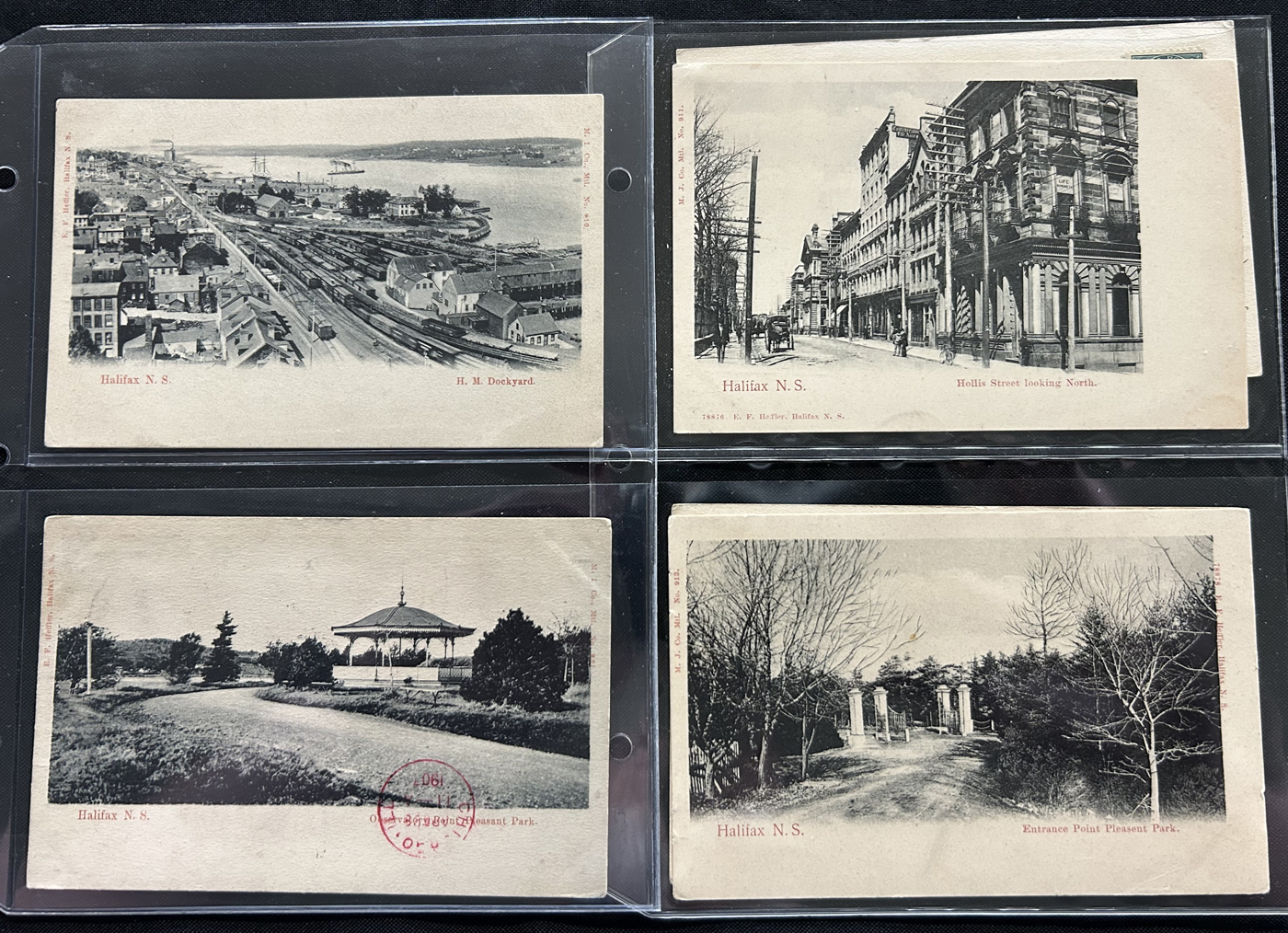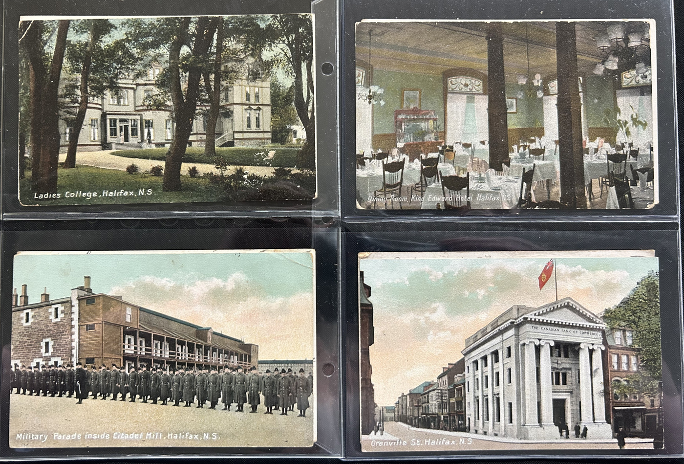 1213 PC   imageCollection of 129 Early Halifax, Nova Scotia Picture Postcards, in a postcard binder, with about 120 different (mostly pre-World War II), including a wide variety of cards such as patriotic (several types, incl. series), leather, real photo, street scenes, Henry Hechler views, and more. Mix of used and unused and overall fine to very fine. All different cards pictured online (duplicates tucked under). (Scan 1) (Scan 2) (Scan 3) (Scan 4) (Scan 5) (Scan 6) (Scan 7) (Scan 8) (Scan 9) (Scan 10) (Scan 11) (Scan 12) (Scan 13) (Scan 14) (Scan 15) (Scan 16) (Scan 17) (Scan 18) (Scan 19) (Scan 20) (Scan 21) (Scan 22) (Scan 23) (Scan 24) (Scan 25) (Scan 26) (Scan 27) (Scan 28) (Scan 29) (Scan 30) (Scan 31) (All Scans)