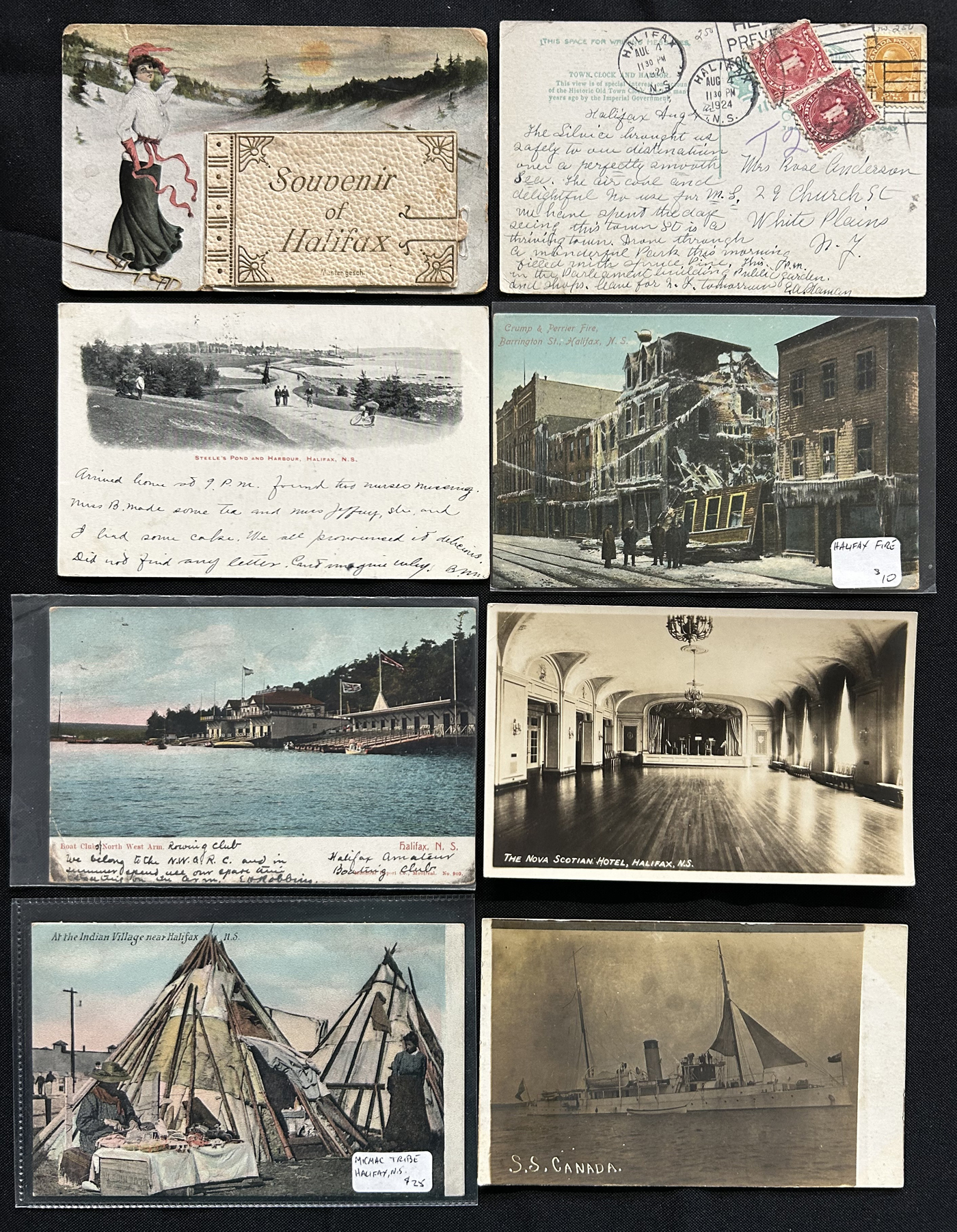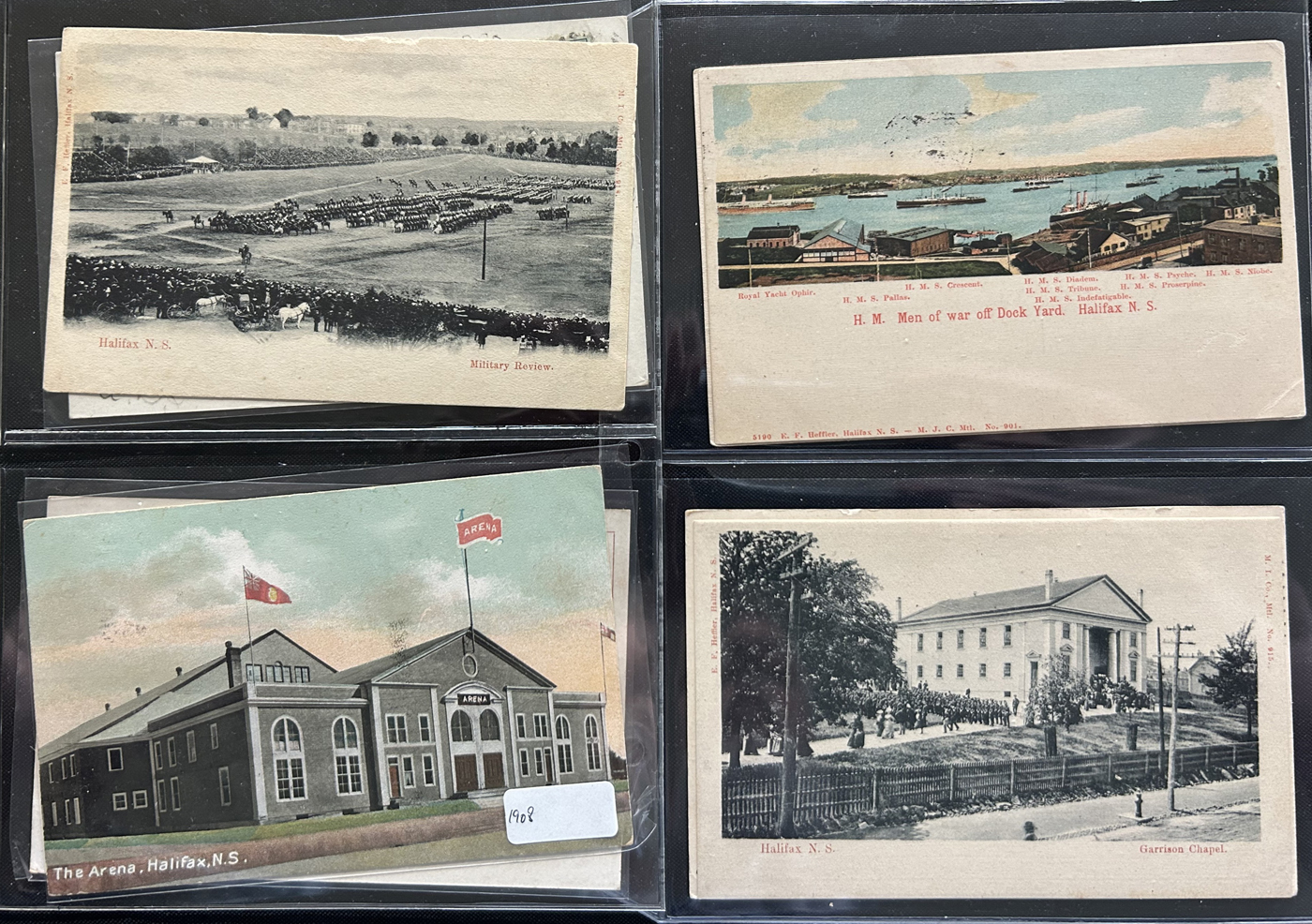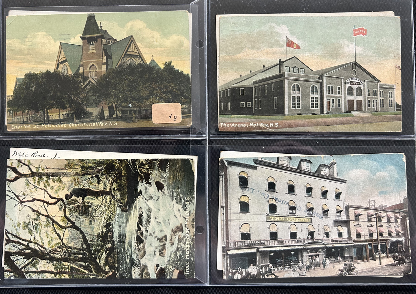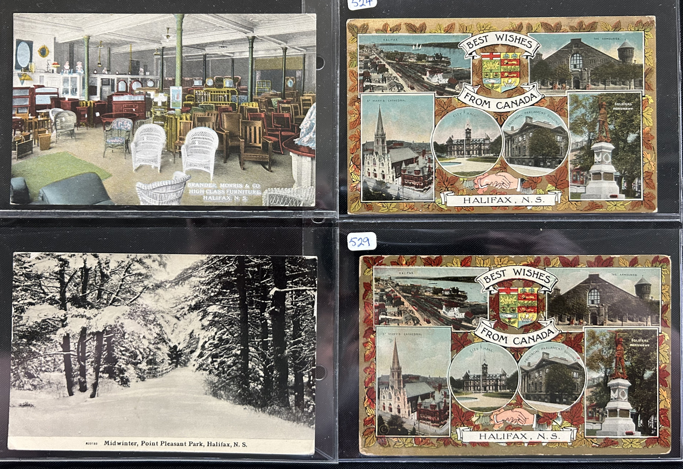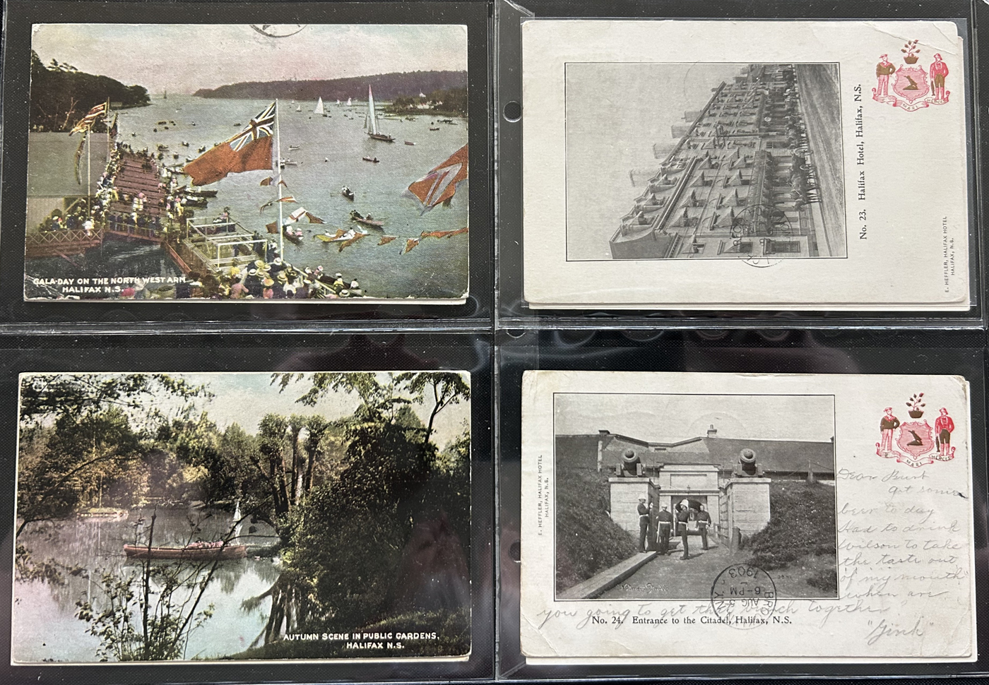 1213 PC   imageCollection of 129 Early Halifax, Nova Scotia Picture Postcards, in a postcard binder, with about 120 different (mostly pre-World War II), including a wide variety of cards such as patriotic (several types, incl. series), leather, real photo, street scenes, Henry Hechler views, and more. Mix of used and unused and overall fine to very fine. All different cards pictured online (duplicates tucked under). (Scan 1) (Scan 2) (Scan 3) (Scan 4) (Scan 5) (Scan 6) (Scan 7) (Scan 8) (Scan 9) (Scan 10) (Scan 11) (Scan 12) (Scan 13) (Scan 14) (Scan 15) (Scan 16) (Scan 17) (Scan 18) (Scan 19) (Scan 20) (Scan 21) (Scan 22) (Scan 23) (Scan 24) (Scan 25) (Scan 26) (Scan 27) (Scan 28) (Scan 29) (Scan 30) (Scan 31) (All Scans)