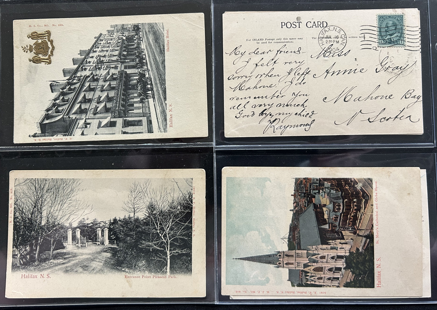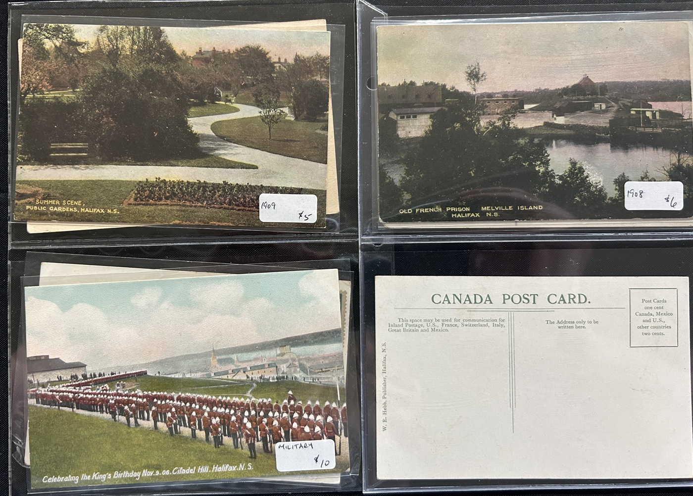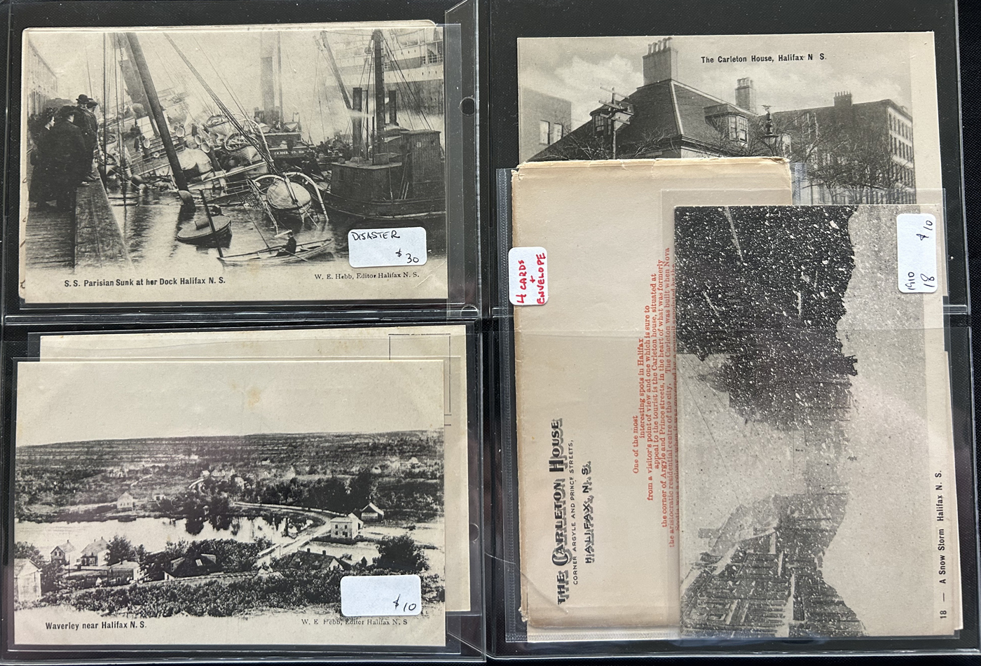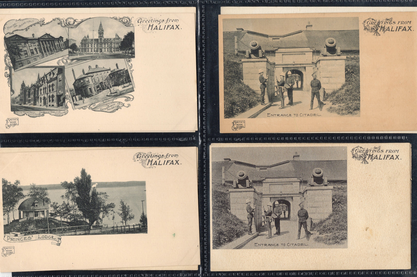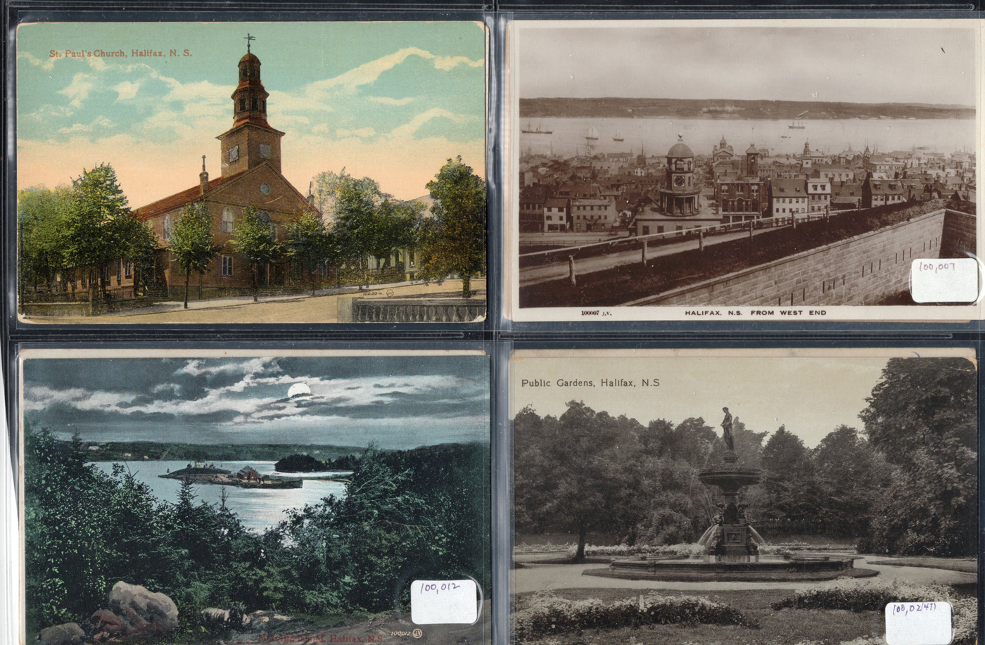1213 PC   imageCollection of 129 Early Halifax, Nova Scotia Picture Postcards, in a postcard binder, with about 120 different (mostly pre-World War II), including a wide variety of cards such as patriotic (several types, incl. series), leather, real photo, street scenes, Henry Hechler views, and more. Mix of used and unused and overall fine to very fine. All different cards pictured online (duplicates tucked under). (Scan 1) (Scan 2) (Scan 3) (Scan 4) (Scan 5) (Scan 6) (Scan 7) (Scan 8) (Scan 9) (Scan 10) (Scan 11) (Scan 12) (Scan 13) (Scan 14) (Scan 15) (Scan 16) (Scan 17) (Scan 18) (Scan 19) (Scan 20) (Scan 21) (Scan 22) (Scan 23) (Scan 24) (Scan 25) (Scan 26) (Scan 27) (Scan 28) (Scan 29) (Scan 30) (Scan 31) (All Scans)