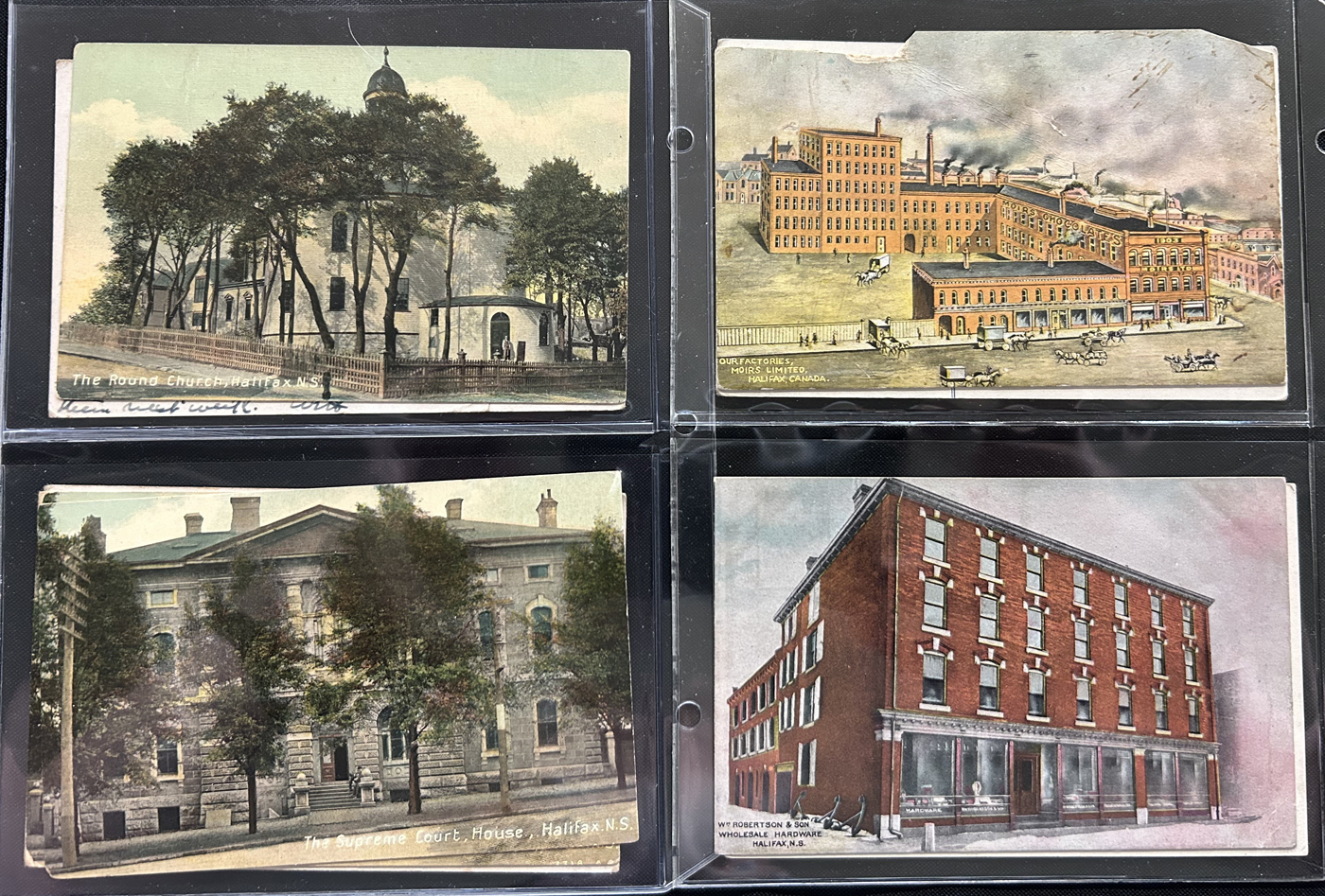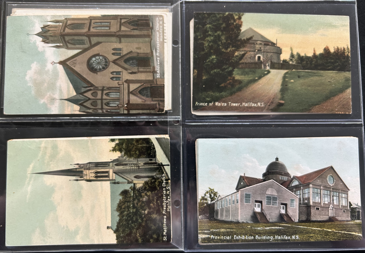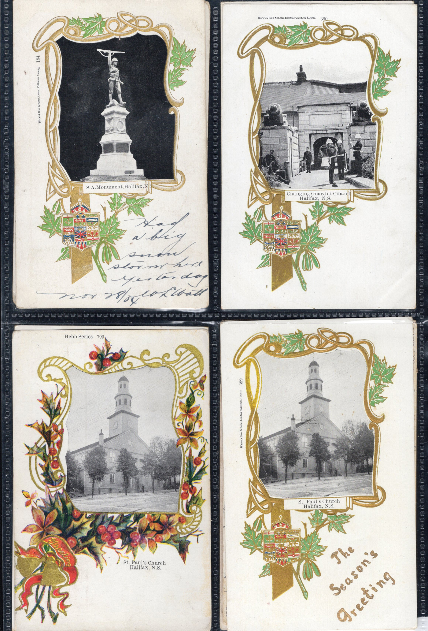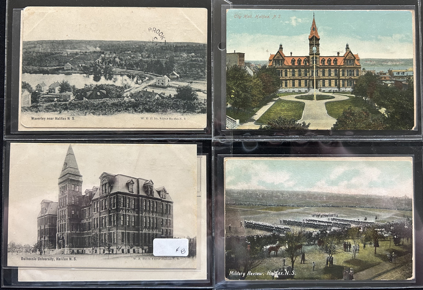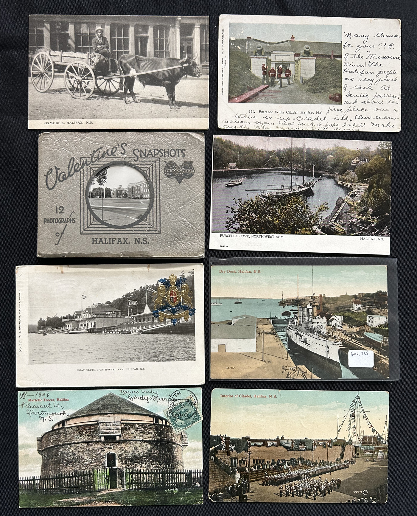 1213 PC   imageCollection of 129 Early Halifax, Nova Scotia Picture Postcards, in a postcard binder, with about 120 different (mostly pre-World War II), including a wide variety of cards such as patriotic (several types, incl. series), leather, real photo, street scenes, Henry Hechler views, and more. Mix of used and unused and overall fine to very fine. All different cards pictured online (duplicates tucked under). (Scan 1) (Scan 2) (Scan 3) (Scan 4) (Scan 5) (Scan 6) (Scan 7) (Scan 8) (Scan 9) (Scan 10) (Scan 11) (Scan 12) (Scan 13) (Scan 14) (Scan 15) (Scan 16) (Scan 17) (Scan 18) (Scan 19) (Scan 20) (Scan 21) (Scan 22) (Scan 23) (Scan 24) (Scan 25) (Scan 26) (Scan 27) (Scan 28) (Scan 29) (Scan 30) (Scan 31) (All Scans)