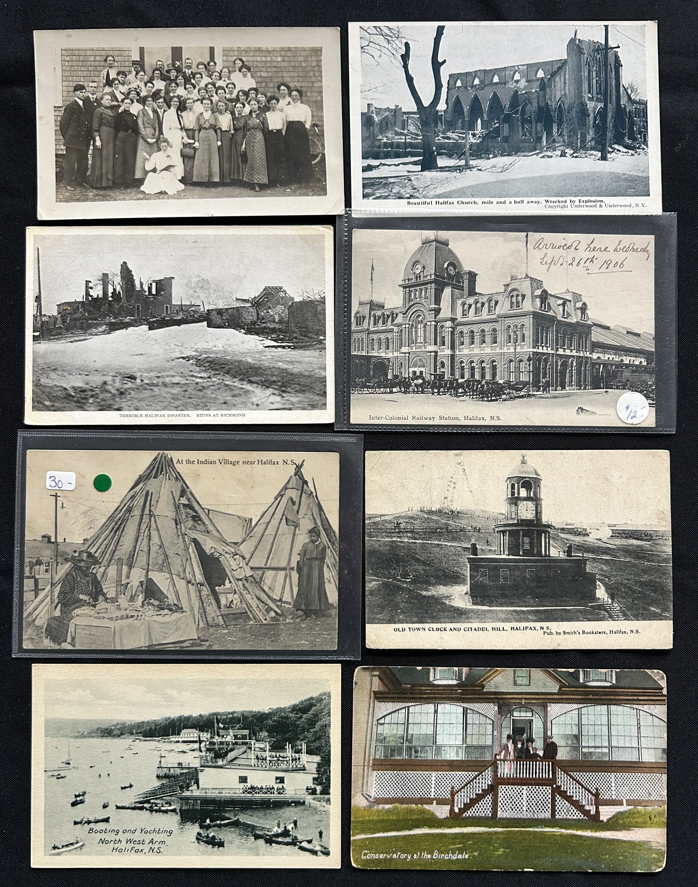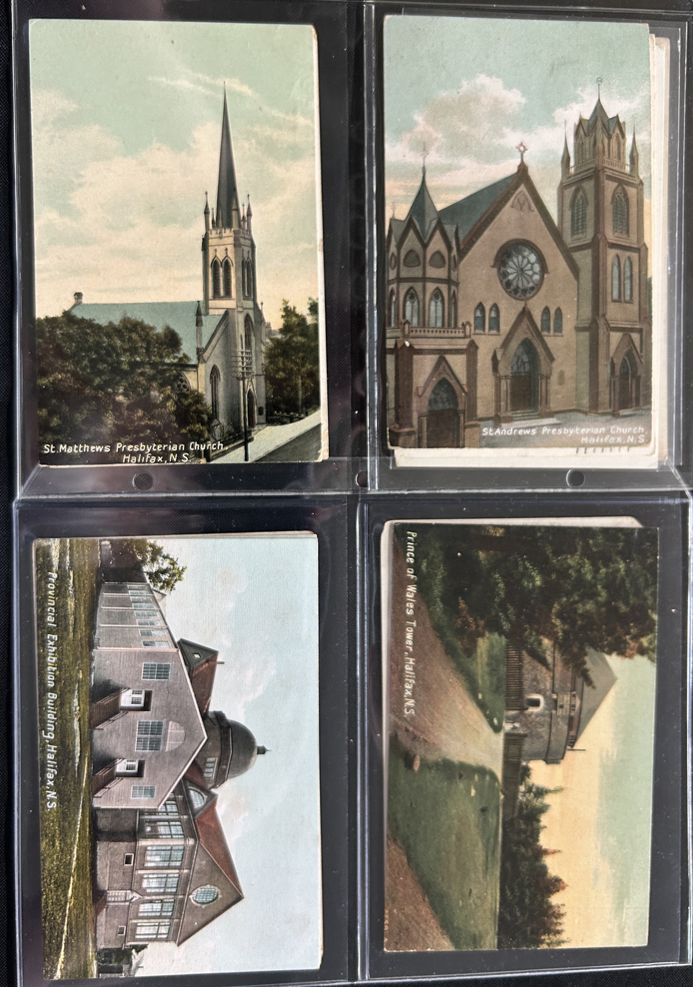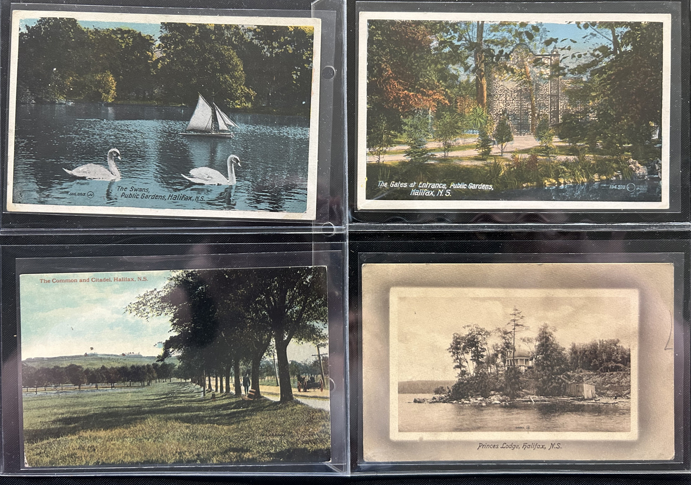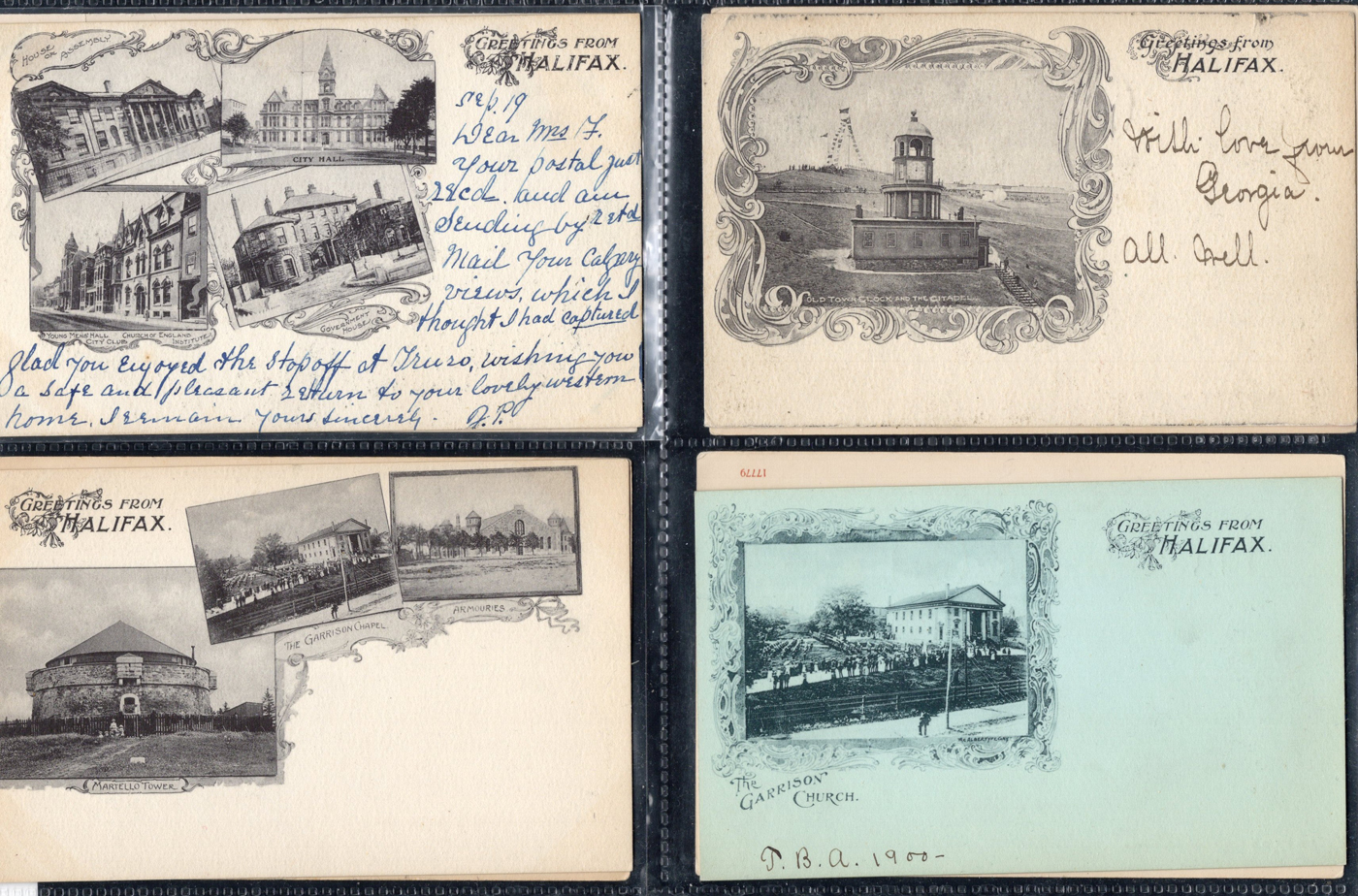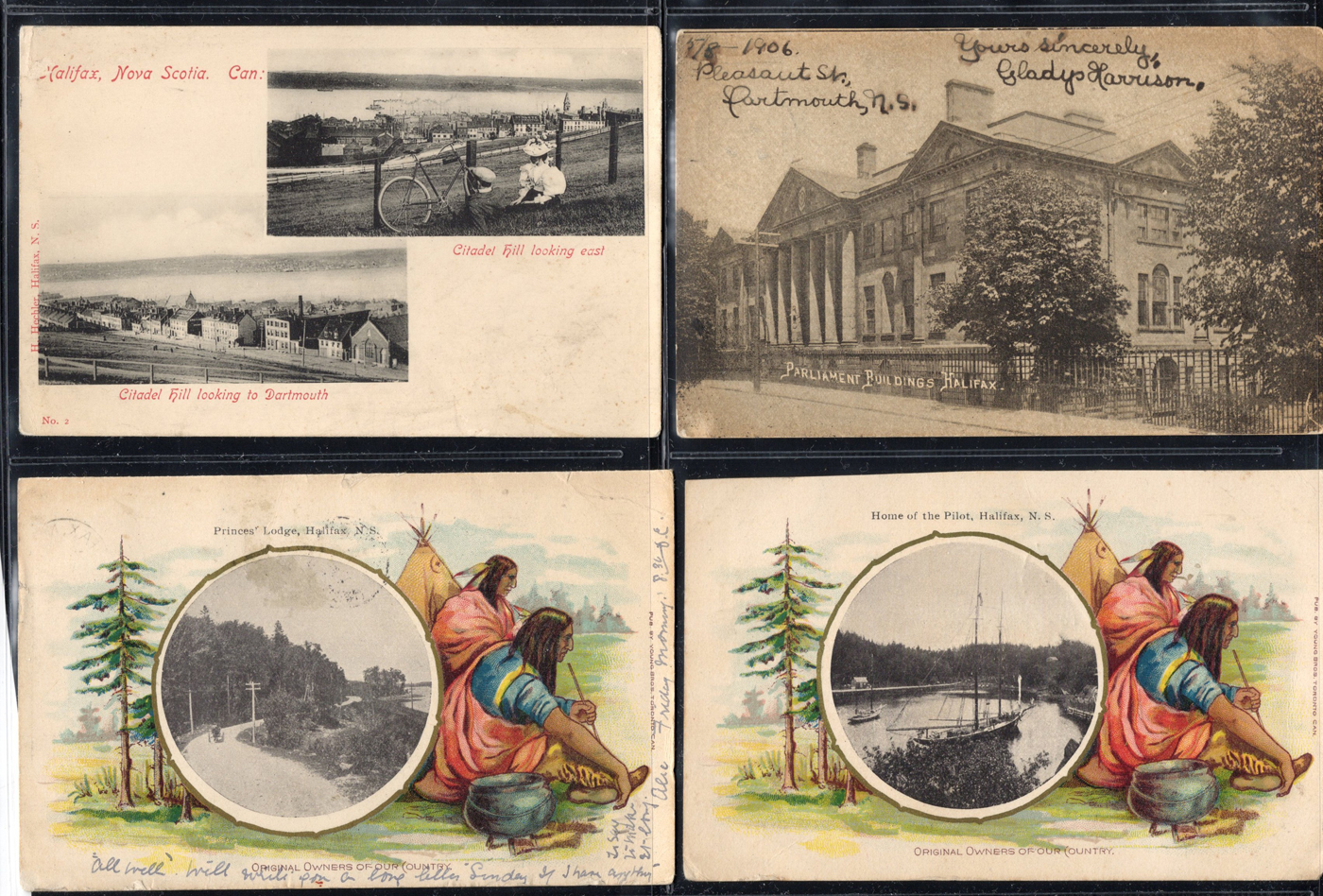 1213 PC   imageCollection of 129 Early Halifax, Nova Scotia Picture Postcards, in a postcard binder, with about 120 different (mostly pre-World War II), including a wide variety of cards such as patriotic (several types, incl. series), leather, real photo, street scenes, Henry Hechler views, and more. Mix of used and unused and overall fine to very fine. All different cards pictured online (duplicates tucked under). (Scan 1) (Scan 2) (Scan 3) (Scan 4) (Scan 5) (Scan 6) (Scan 7) (Scan 8) (Scan 9) (Scan 10) (Scan 11) (Scan 12) (Scan 13) (Scan 14) (Scan 15) (Scan 16) (Scan 17) (Scan 18) (Scan 19) (Scan 20) (Scan 21) (Scan 22) (Scan 23) (Scan 24) (Scan 25) (Scan 26) (Scan 27) (Scan 28) (Scan 29) (Scan 30) (Scan 31) (All Scans)