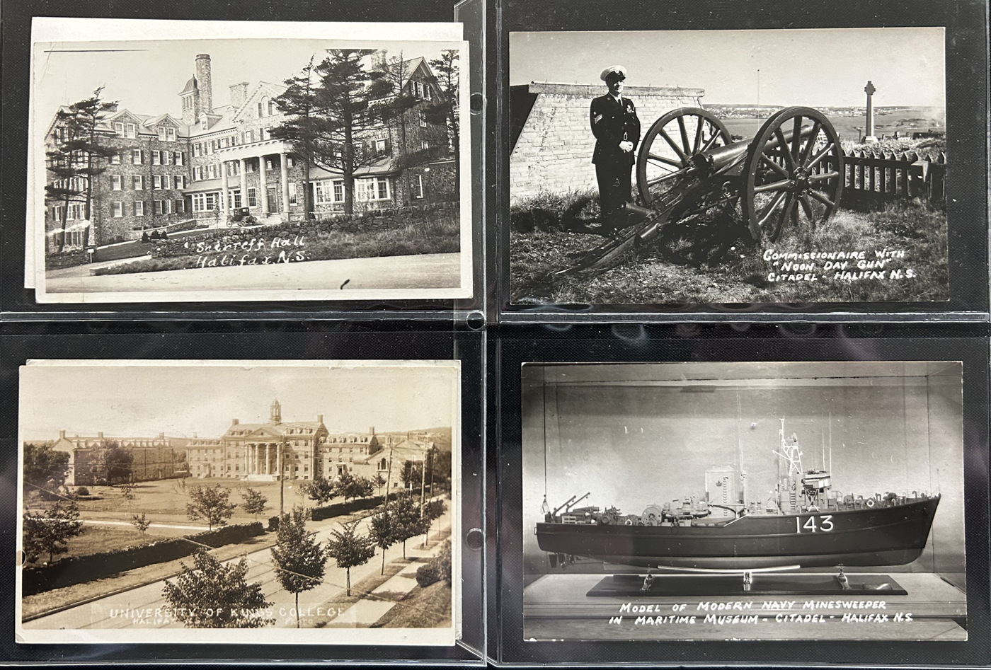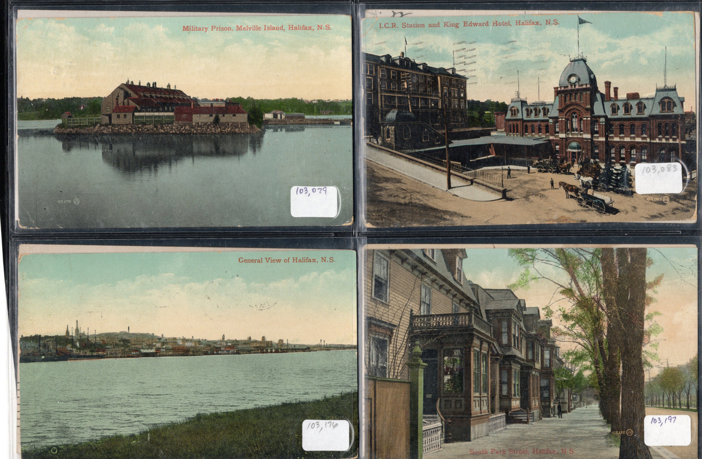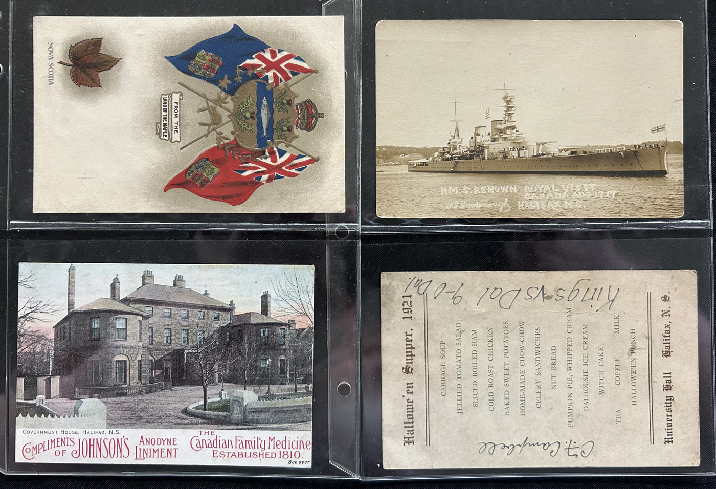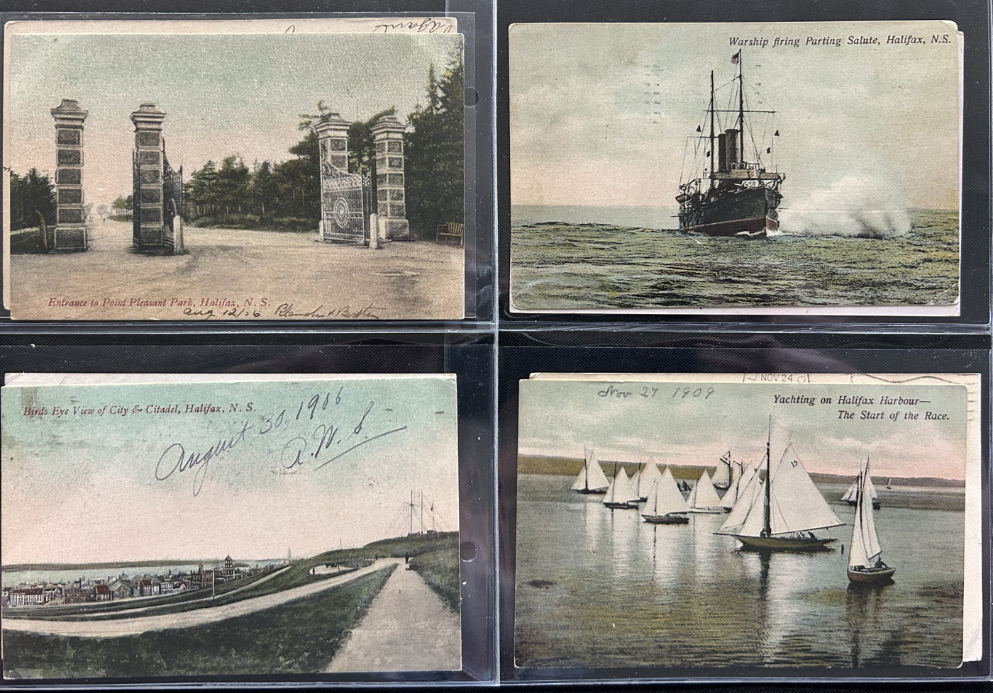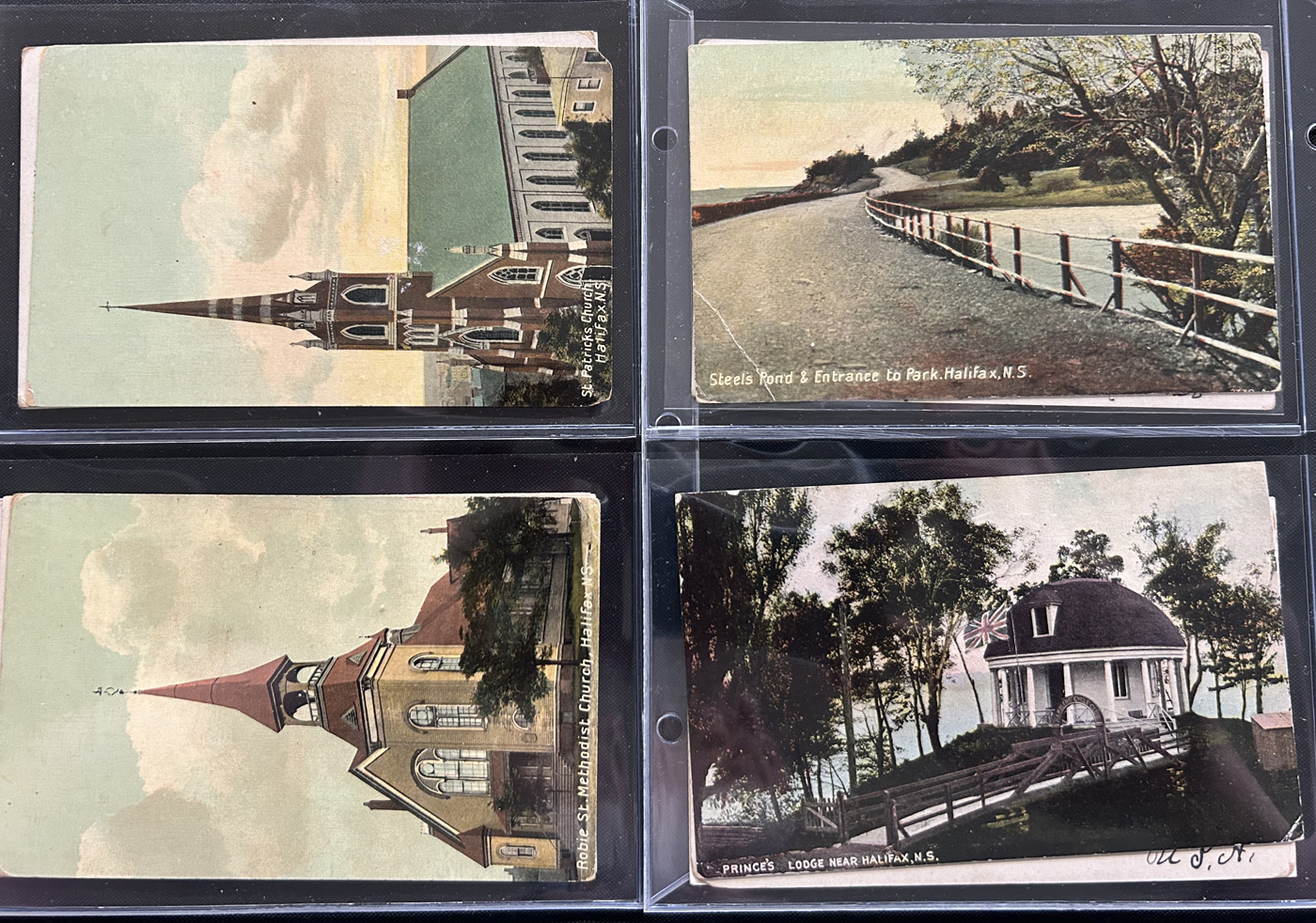 1213 PC   imageCollection of 129 Early Halifax, Nova Scotia Picture Postcards, in a postcard binder, with about 120 different (mostly pre-World War II), including a wide variety of cards such as patriotic (several types, incl. series), leather, real photo, street scenes, Henry Hechler views, and more. Mix of used and unused and overall fine to very fine. All different cards pictured online (duplicates tucked under). (Scan 1) (Scan 2) (Scan 3) (Scan 4) (Scan 5) (Scan 6) (Scan 7) (Scan 8) (Scan 9) (Scan 10) (Scan 11) (Scan 12) (Scan 13) (Scan 14) (Scan 15) (Scan 16) (Scan 17) (Scan 18) (Scan 19) (Scan 20) (Scan 21) (Scan 22) (Scan 23) (Scan 24) (Scan 25) (Scan 26) (Scan 27) (Scan 28) (Scan 29) (Scan 30) (Scan 31) (All Scans)