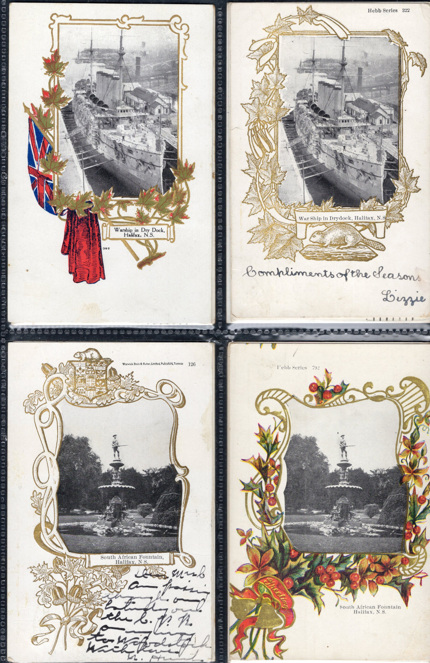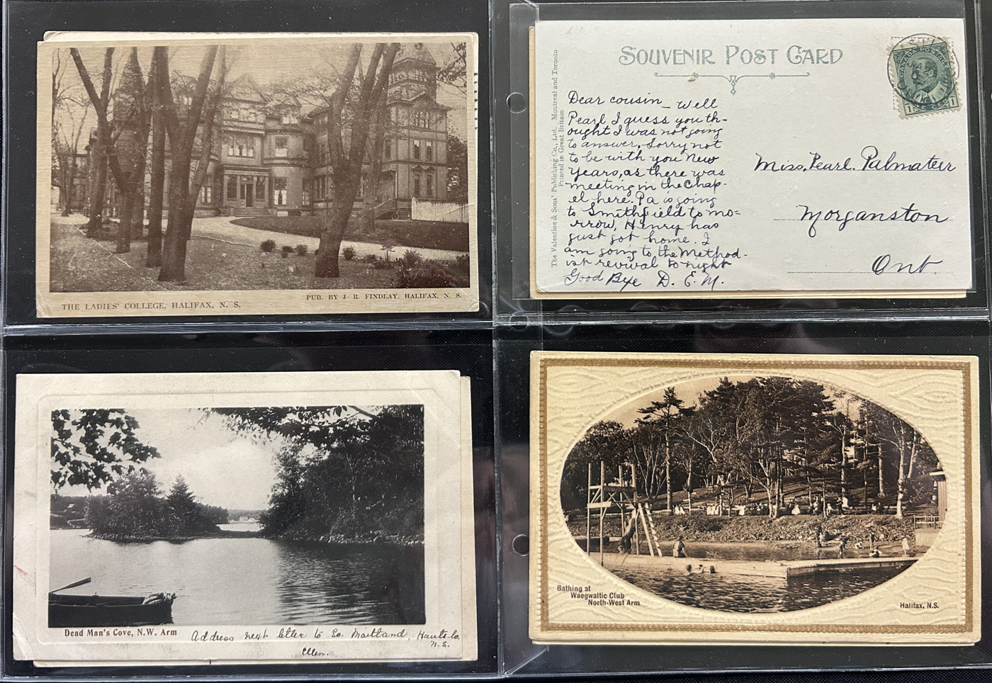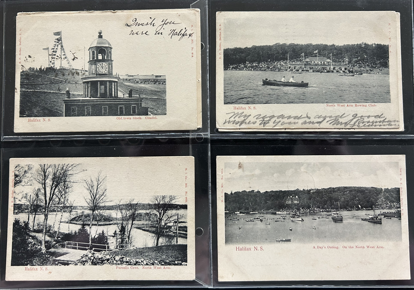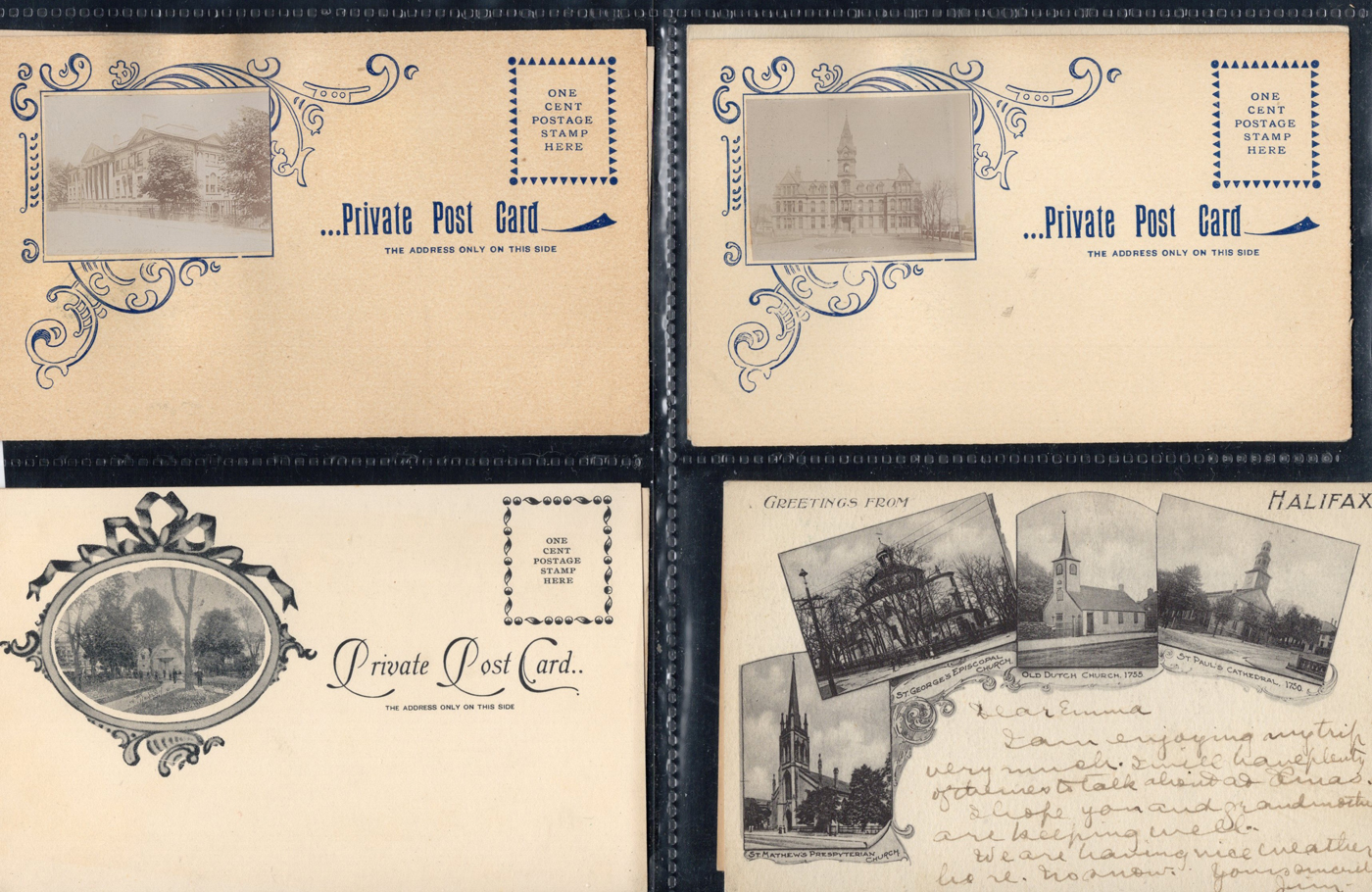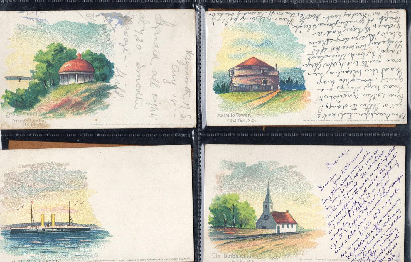 1213 PC   imageCollection of 129 Early Halifax, Nova Scotia Picture Postcards, in a postcard binder, with about 120 different (mostly pre-World War II), including a wide variety of cards such as patriotic (several types, incl. series), leather, real photo, street scenes, Henry Hechler views, and more. Mix of used and unused and overall fine to very fine. All different cards pictured online (duplicates tucked under). (Scan 1) (Scan 2) (Scan 3) (Scan 4) (Scan 5) (Scan 6) (Scan 7) (Scan 8) (Scan 9) (Scan 10) (Scan 11) (Scan 12) (Scan 13) (Scan 14) (Scan 15) (Scan 16) (Scan 17) (Scan 18) (Scan 19) (Scan 20) (Scan 21) (Scan 22) (Scan 23) (Scan 24) (Scan 25) (Scan 26) (Scan 27) (Scan 28) (Scan 29) (Scan 30) (Scan 31) (All Scans)