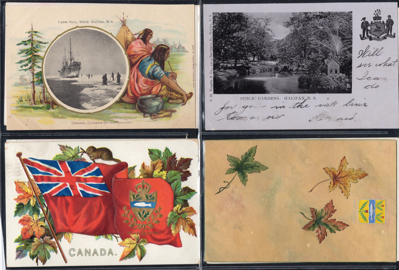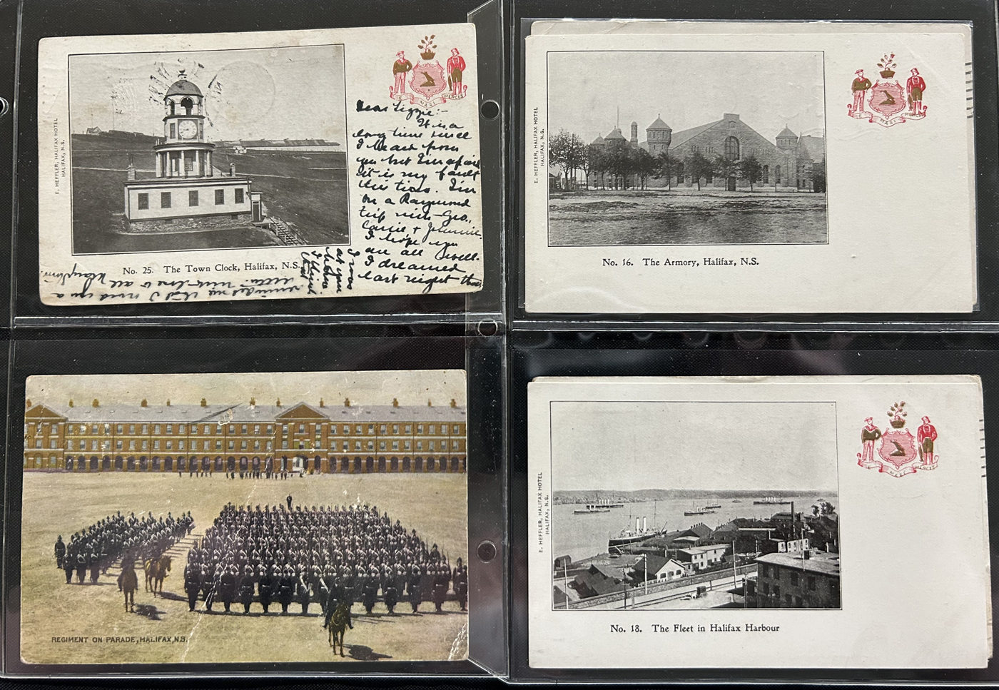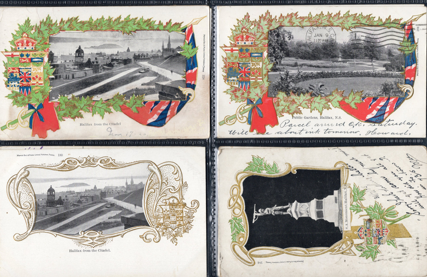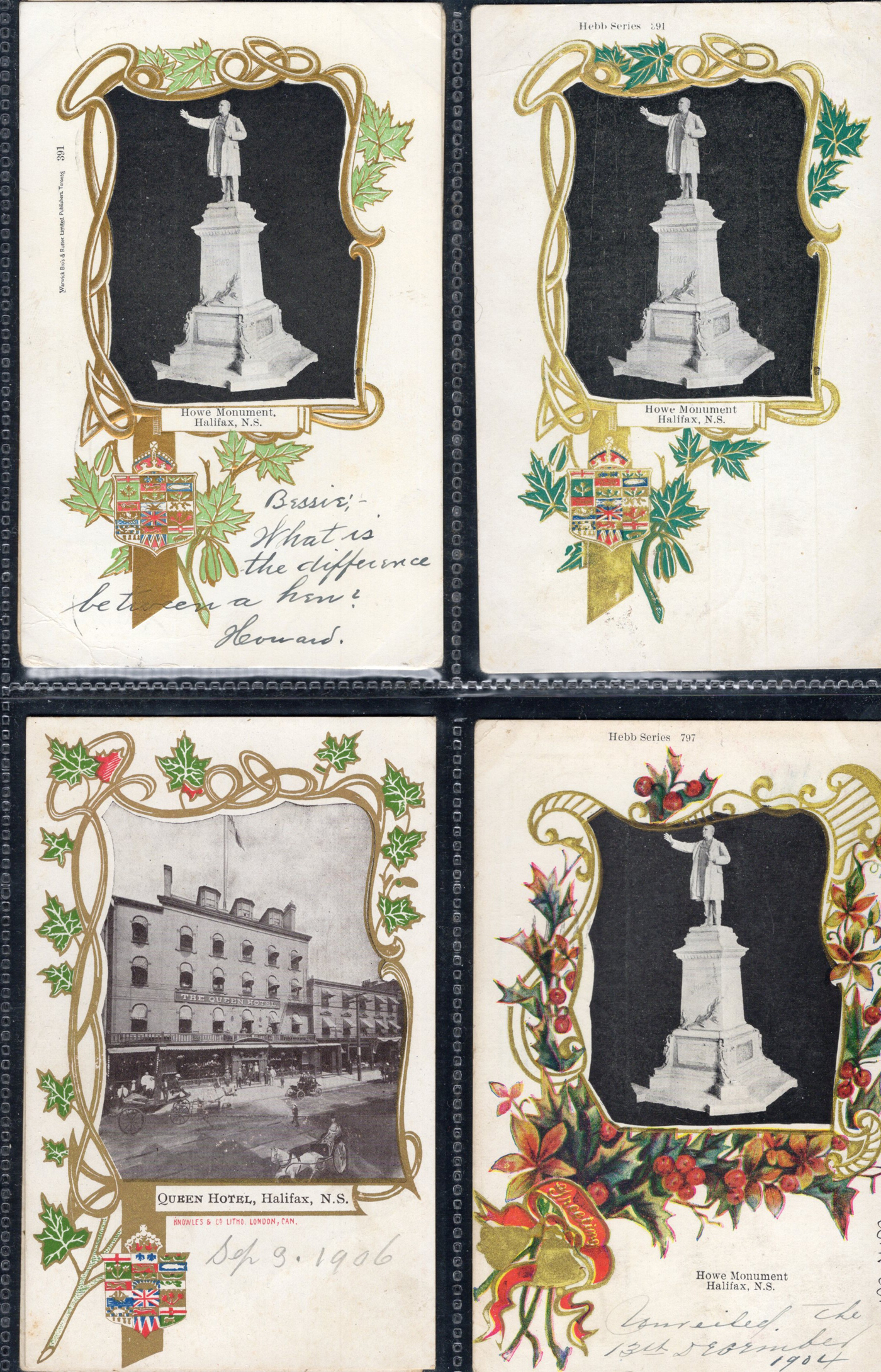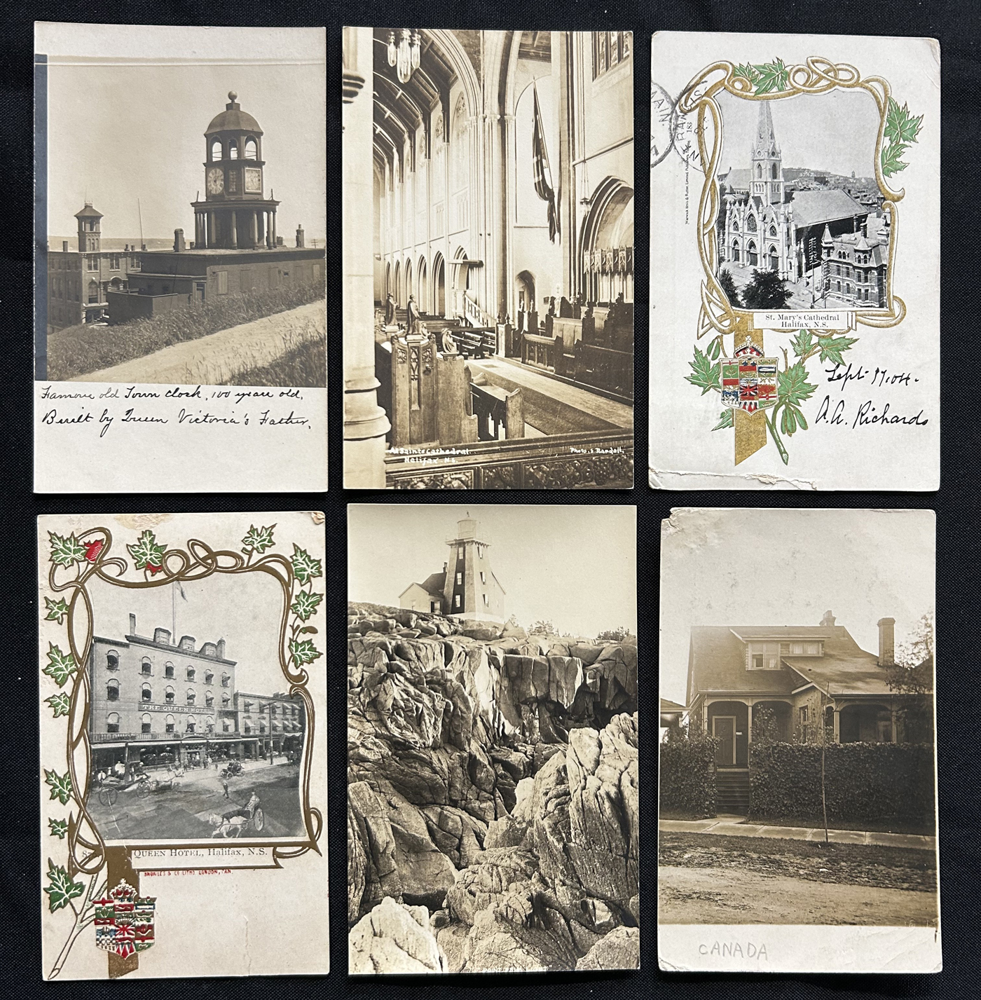 1213 PC   imageCollection of 129 Early Halifax, Nova Scotia Picture Postcards, in a postcard binder, with about 120 different (mostly pre-World War II), including a wide variety of cards such as patriotic (several types, incl. series), leather, real photo, street scenes, Henry Hechler views, and more. Mix of used and unused and overall fine to very fine. All different cards pictured online (duplicates tucked under). (Scan 1) (Scan 2) (Scan 3) (Scan 4) (Scan 5) (Scan 6) (Scan 7) (Scan 8) (Scan 9) (Scan 10) (Scan 11) (Scan 12) (Scan 13) (Scan 14) (Scan 15) (Scan 16) (Scan 17) (Scan 18) (Scan 19) (Scan 20) (Scan 21) (Scan 22) (Scan 23) (Scan 24) (Scan 25) (Scan 26) (Scan 27) (Scan 28) (Scan 29) (Scan 30) (Scan 31) (All Scans)