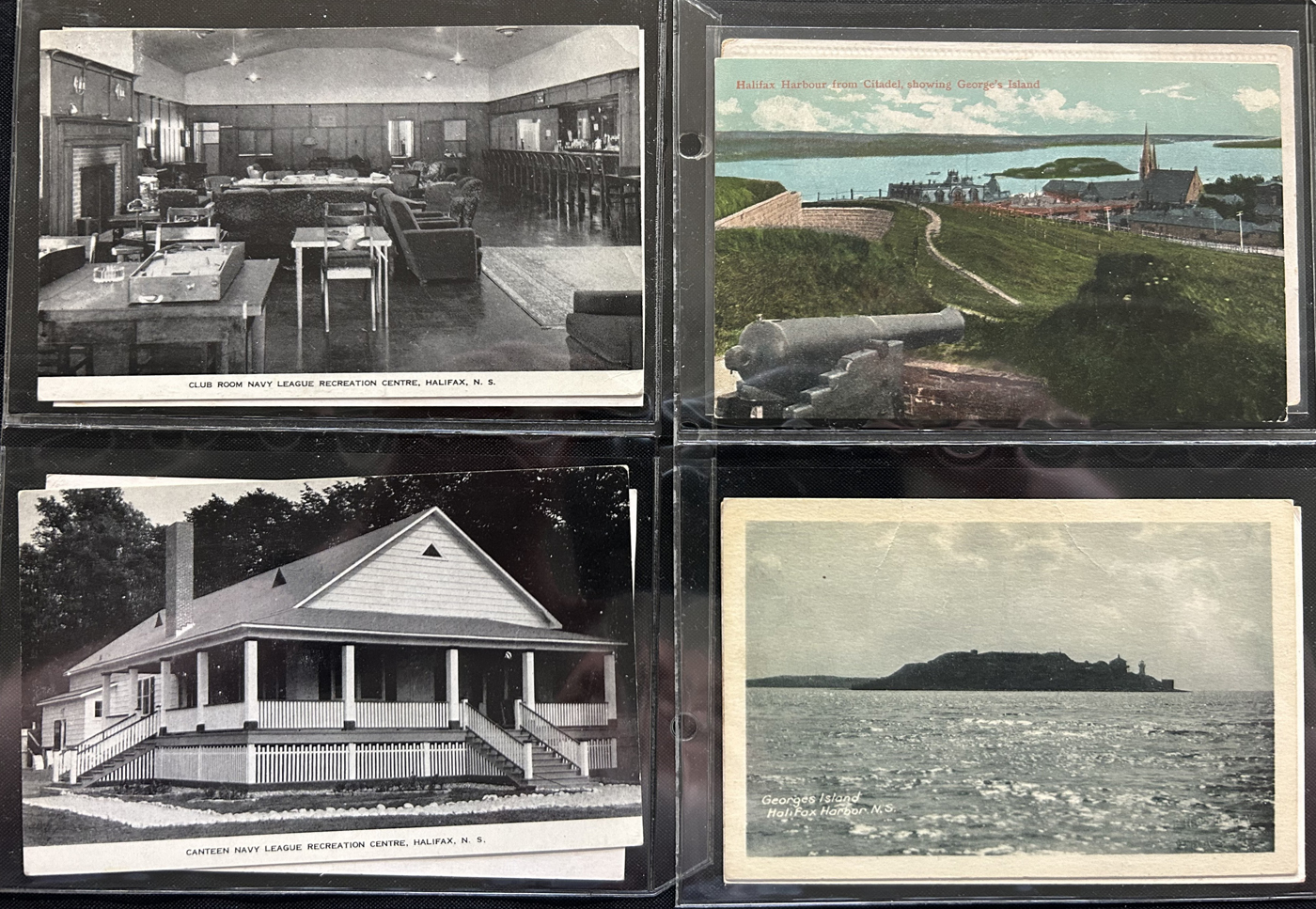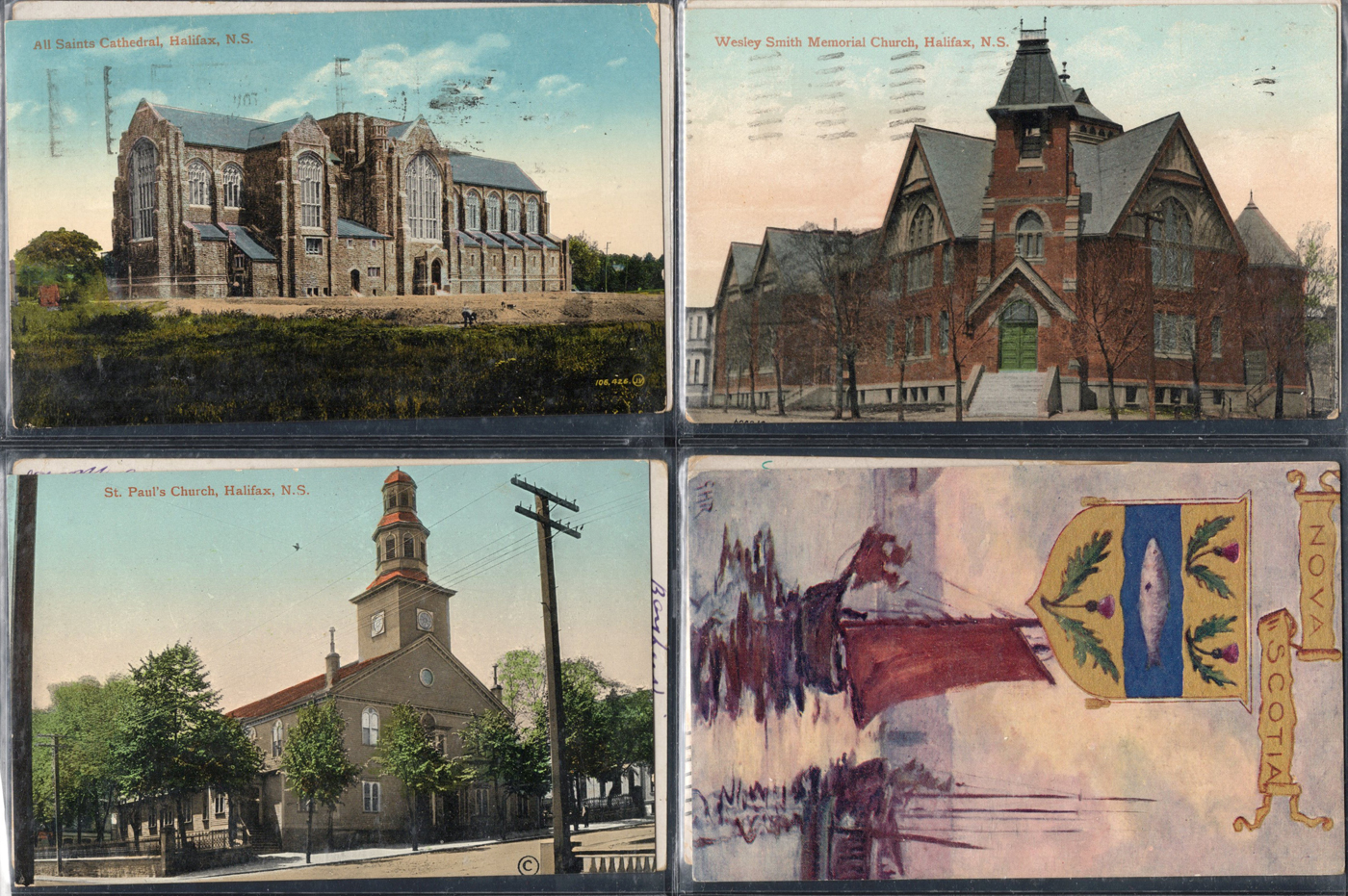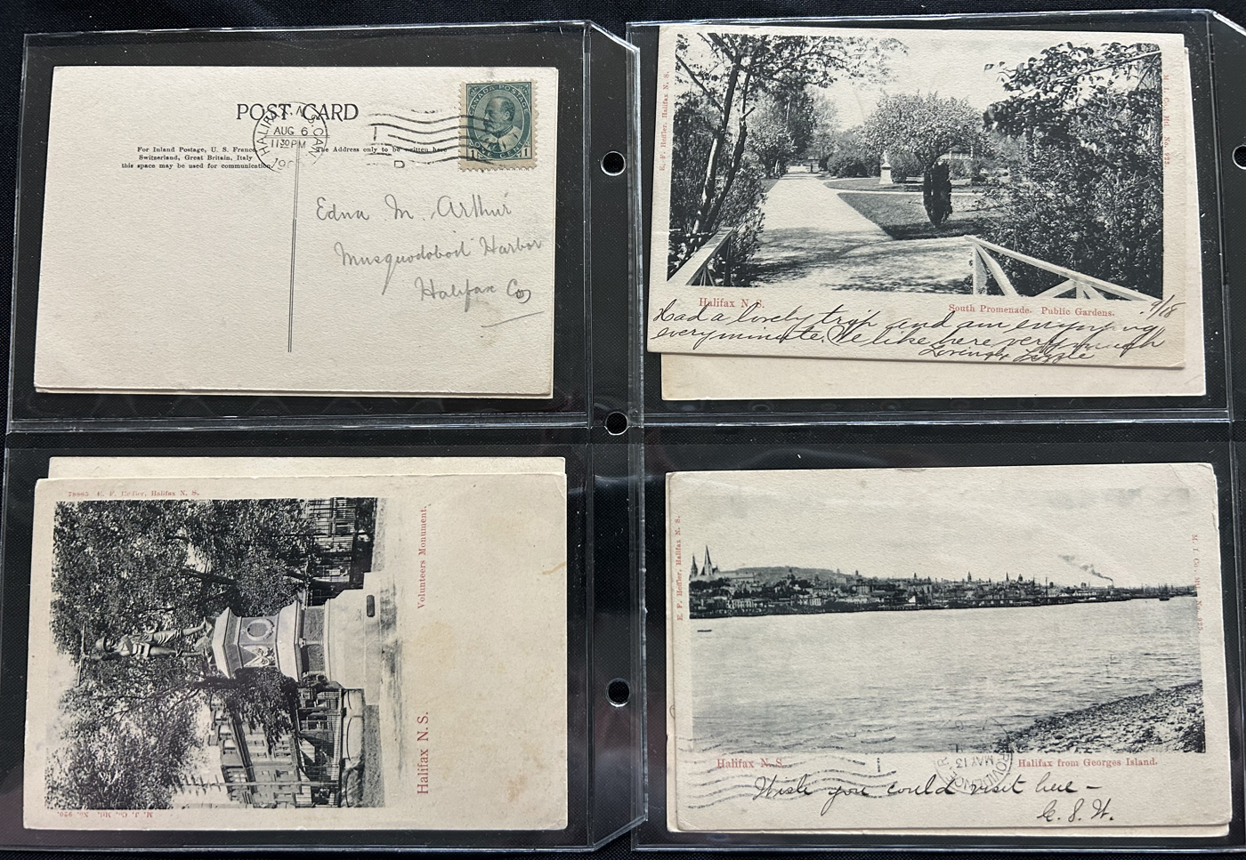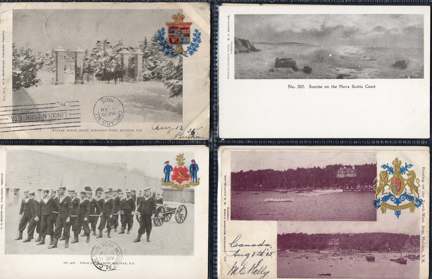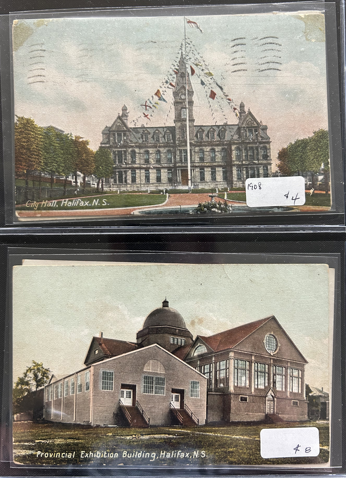 1213 PC   imageCollection of 129 Early Halifax, Nova Scotia Picture Postcards, in a postcard binder, with about 120 different (mostly pre-World War II), including a wide variety of cards such as patriotic (several types, incl. series), leather, real photo, street scenes, Henry Hechler views, and more. Mix of used and unused and overall fine to very fine. All different cards pictured online (duplicates tucked under). (Scan 1) (Scan 2) (Scan 3) (Scan 4) (Scan 5) (Scan 6) (Scan 7) (Scan 8) (Scan 9) (Scan 10) (Scan 11) (Scan 12) (Scan 13) (Scan 14) (Scan 15) (Scan 16) (Scan 17) (Scan 18) (Scan 19) (Scan 20) (Scan 21) (Scan 22) (Scan 23) (Scan 24) (Scan 25) (Scan 26) (Scan 27) (Scan 28) (Scan 29) (Scan 30) (Scan 31) (All Scans)