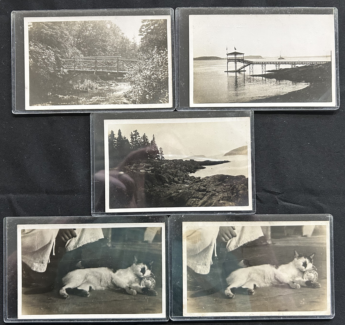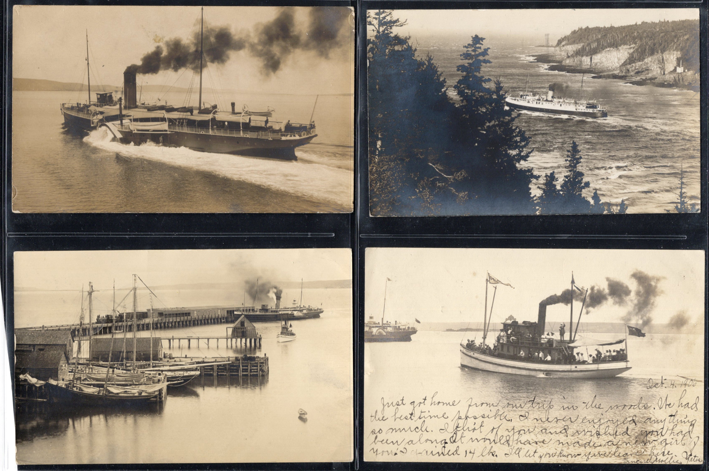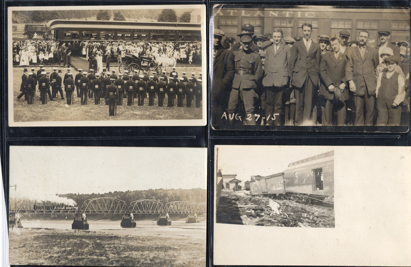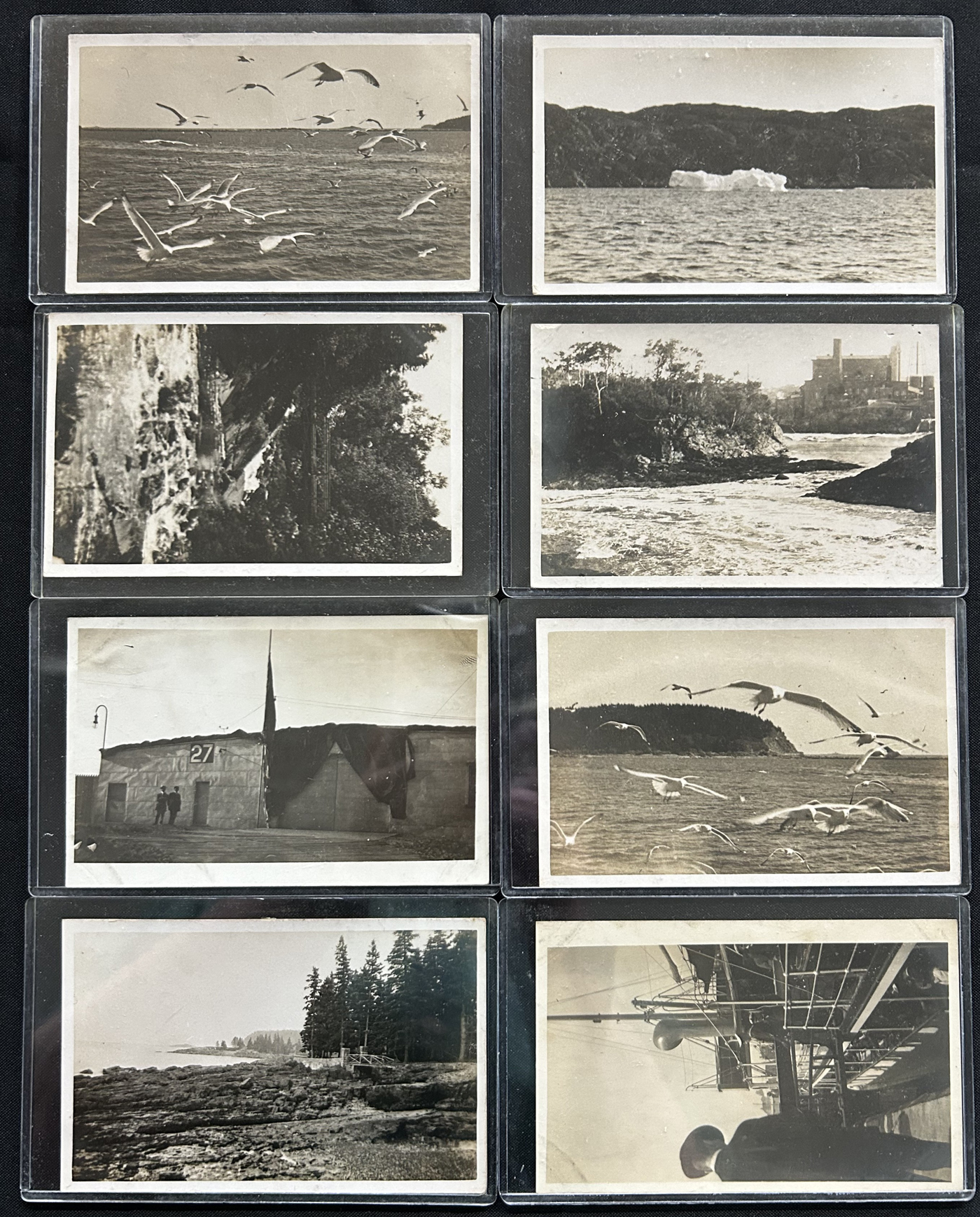 1209 PC   imageGroup of 19 Early Real Photo Postcards of Halifax Ships and Related Themes, all look to have been taken in the Halifax to St John's vicinity, noting pictured of an iceberg, two photos with note on back "HMS Essex", some show military parades (Halifax?), various ships, a sailor and his goat with note "one pet and its keeper", two photos of a cat, each with a pencil note "photo of the ships cat asleep just like a sailor (no) love Harry" and "This is our cat its name is Charlie" and more. All unused, a rare and mostly very fine grouping. (Scan 1) (Scan 2) (Scan 3) (Scan 4) (All Scans)