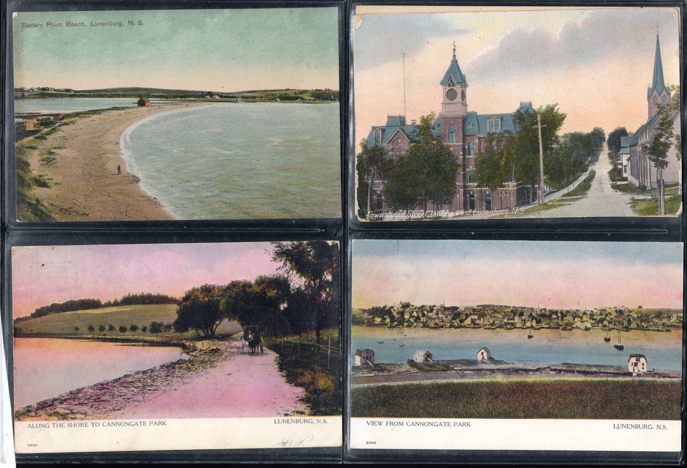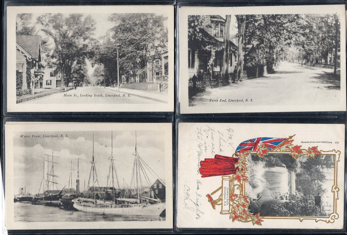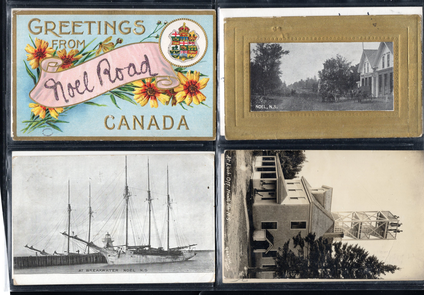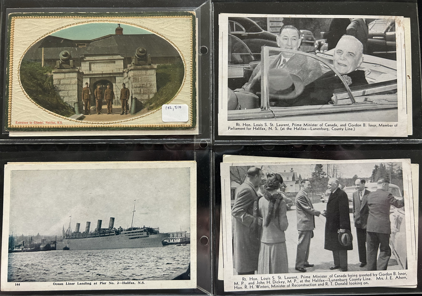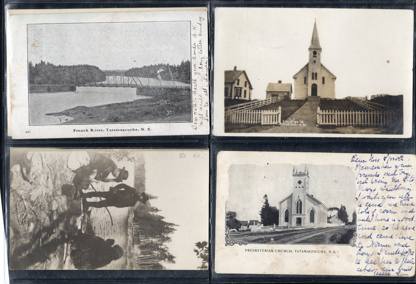 1203 PC   imageCollection of "K to M" Nova Scotia Towns Early Picture Postcards, with about 177 different mostly pre-World War II cards, sorted alphabetically by town in a postcard binder. We note a good variety of types, with real photo (many), town views, patriotic (several types, incl. series) with several scarce to rare cards. There is a mix of used and unused, so there can be postmark interest as well. Some edge, etc. faults noted, still overall fine to very fine. Photos show a good sampling. (Scan 1) (Scan 2) (Scan 3) (Scan 4) (Scan 5) (Scan 6) (Scan 7) (Scan 8) (Scan 9) (Scan 10) (Scan 11) (Scan 12) (Scan 13) (Scan 14) (Scan 15) (Scan 16) (Scan 17) (Scan 18) (Scan 19) (Scan 20) (All Scans)