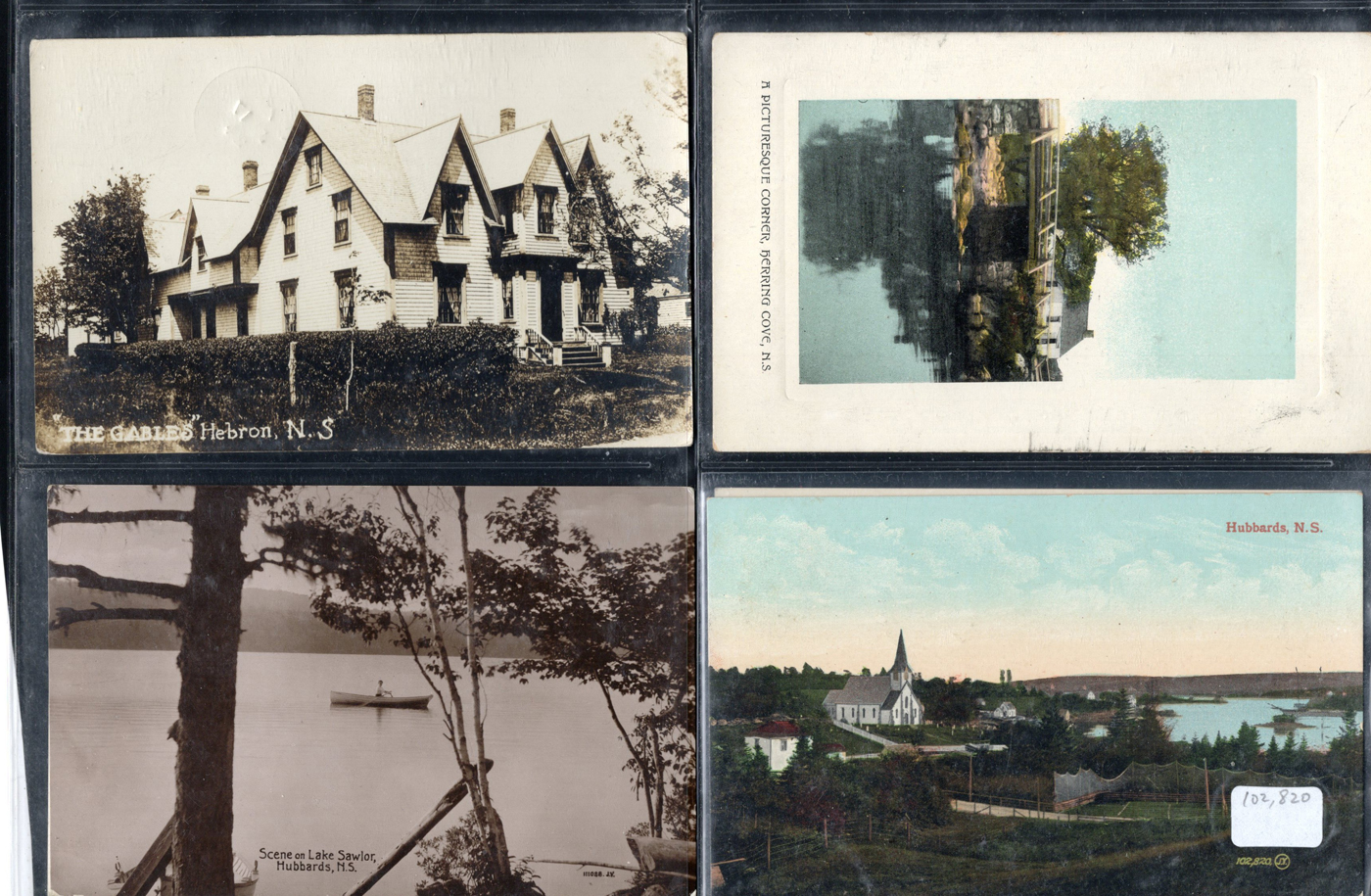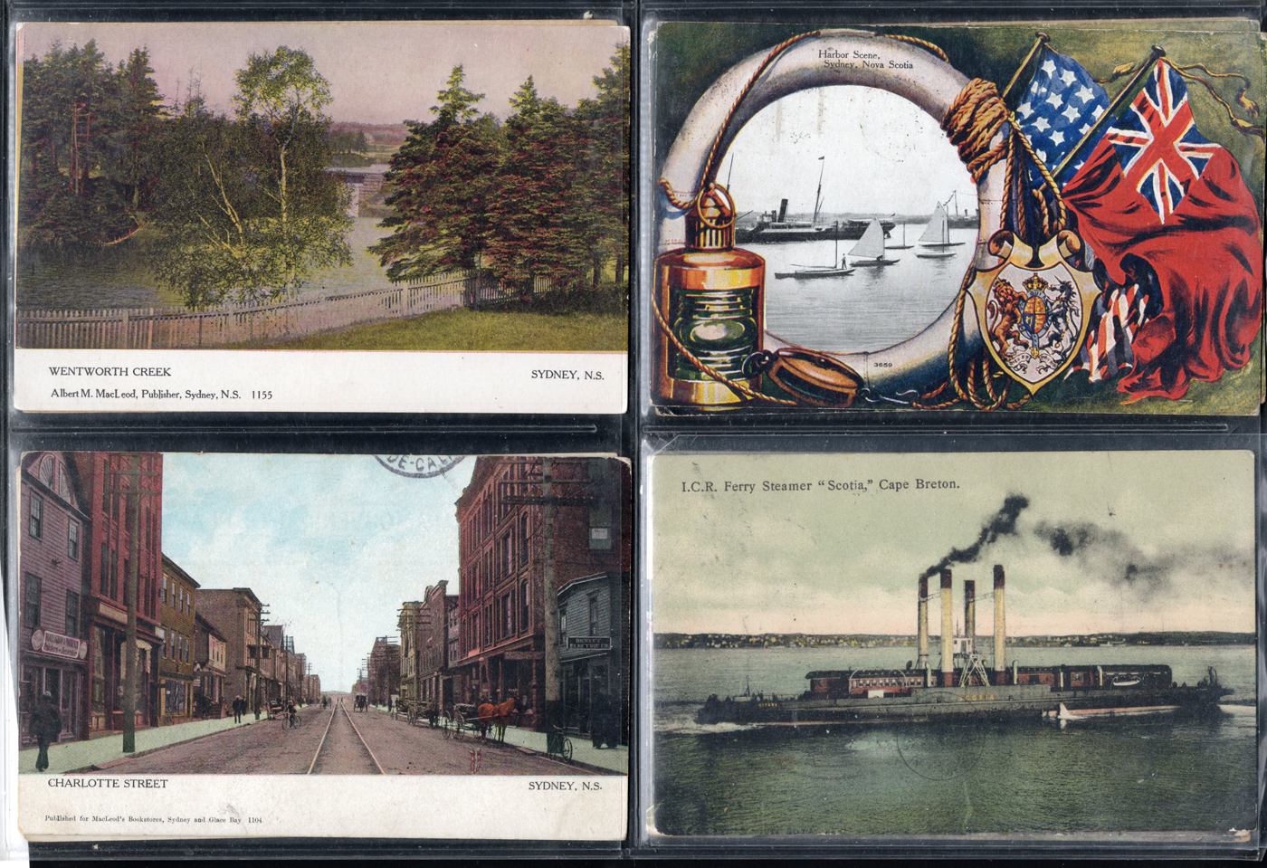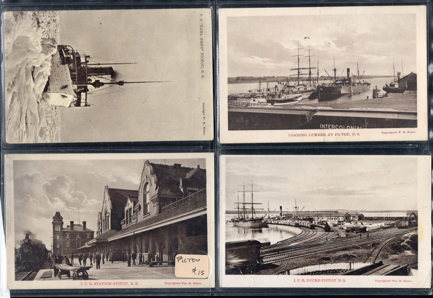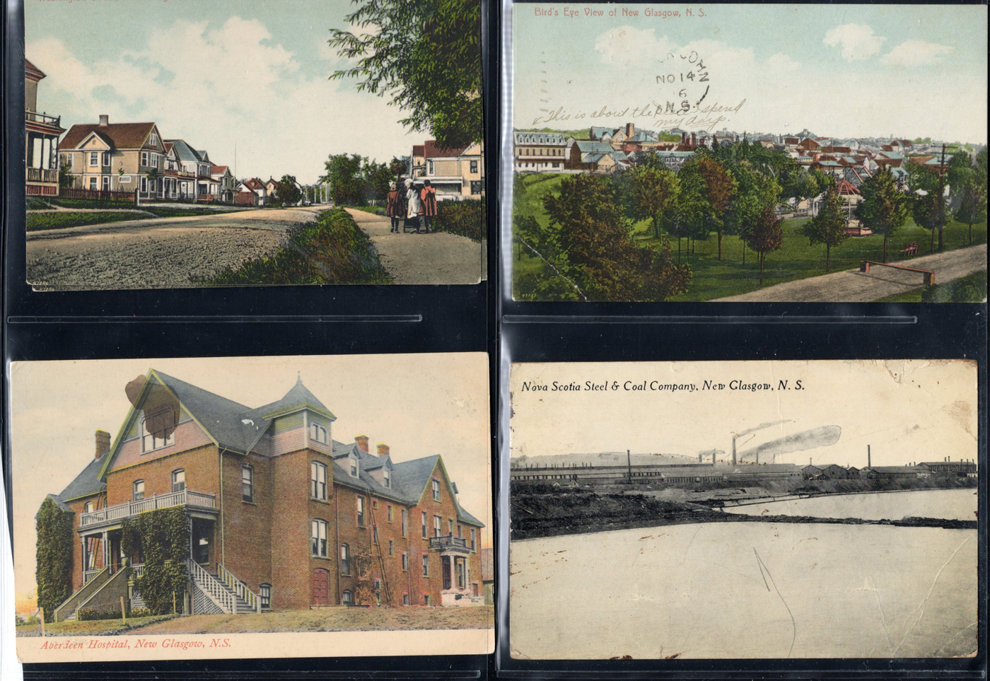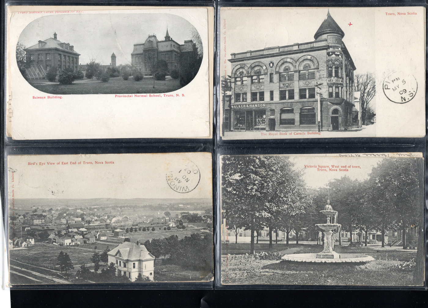 1203 PC   imageCollection of "K to M" Nova Scotia Towns Early Picture Postcards, with about 177 different mostly pre-World War II cards, sorted alphabetically by town in a postcard binder. We note a good variety of types, with real photo (many), town views, patriotic (several types, incl. series) with several scarce to rare cards. There is a mix of used and unused, so there can be postmark interest as well. Some edge, etc. faults noted, still overall fine to very fine. Photos show a good sampling. (Scan 1) (Scan 2) (Scan 3) (Scan 4) (Scan 5) (Scan 6) (Scan 7) (Scan 8) (Scan 9) (Scan 10) (Scan 11) (Scan 12) (Scan 13) (Scan 14) (Scan 15) (Scan 16) (Scan 17) (Scan 18) (Scan 19) (Scan 20) (All Scans)
