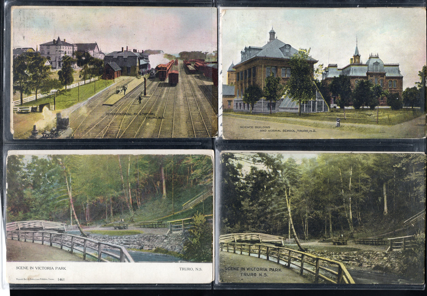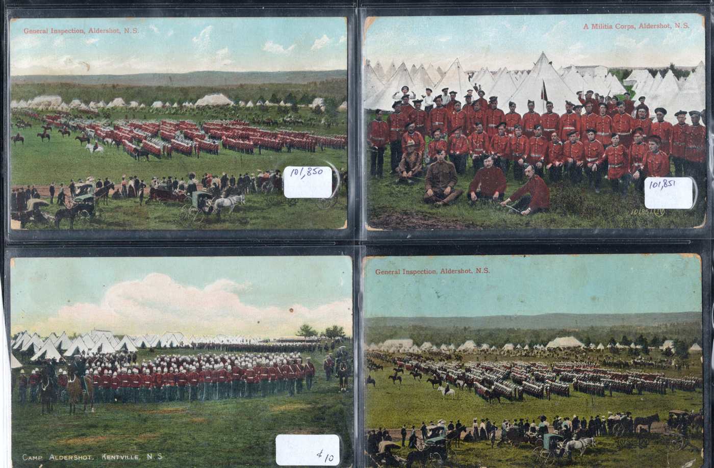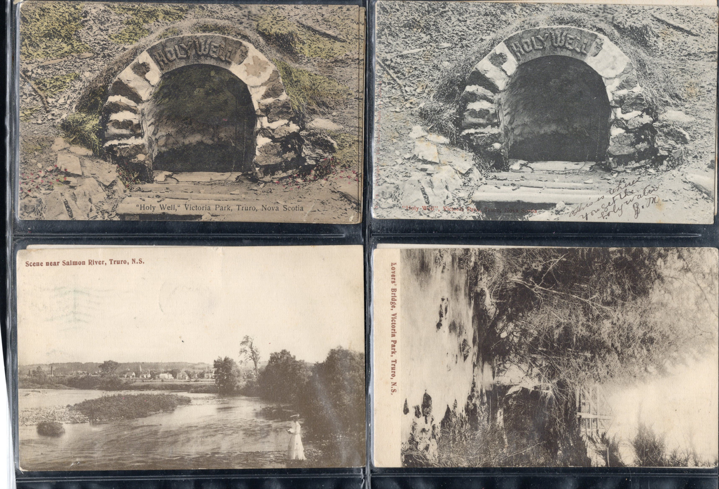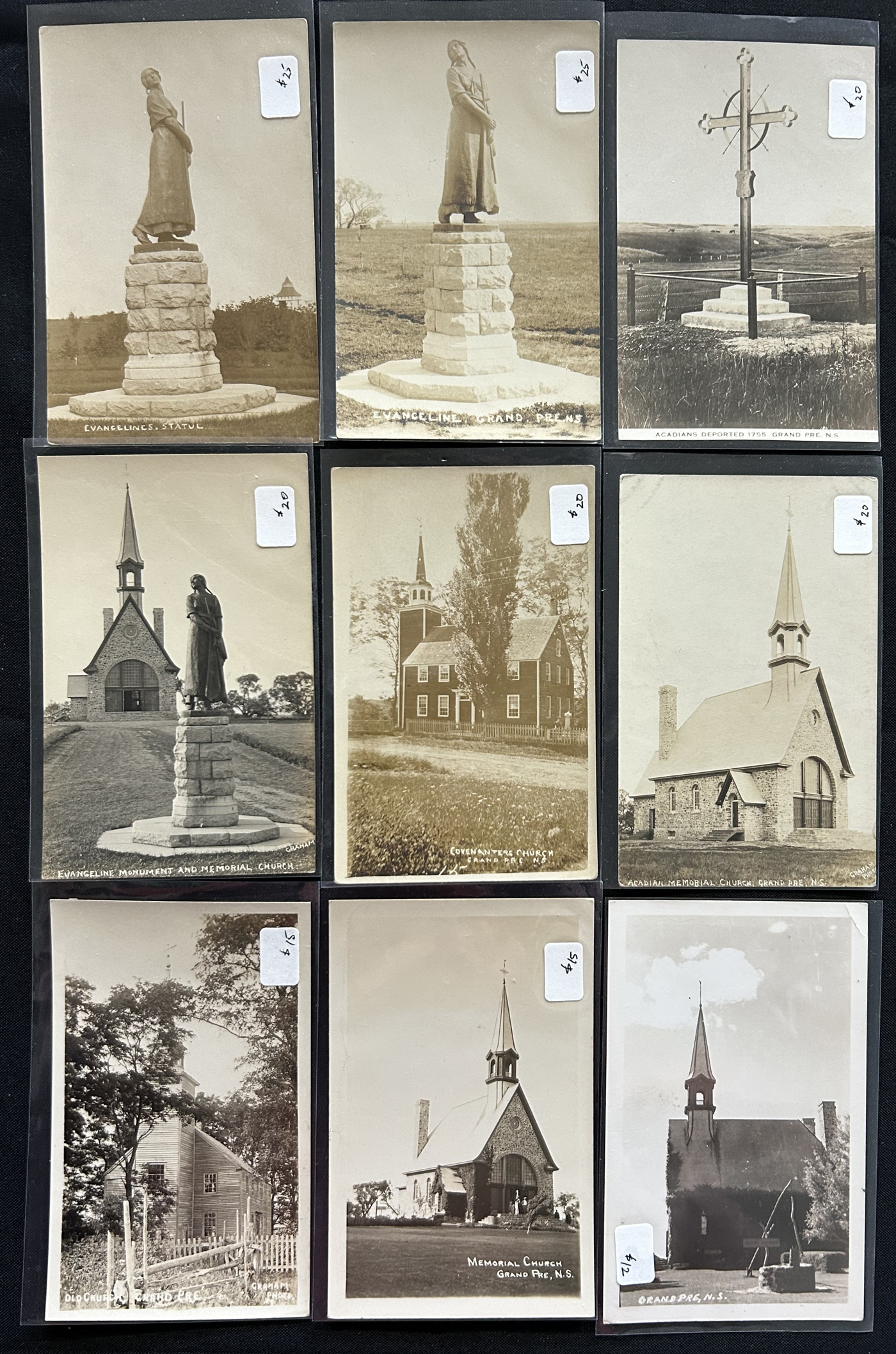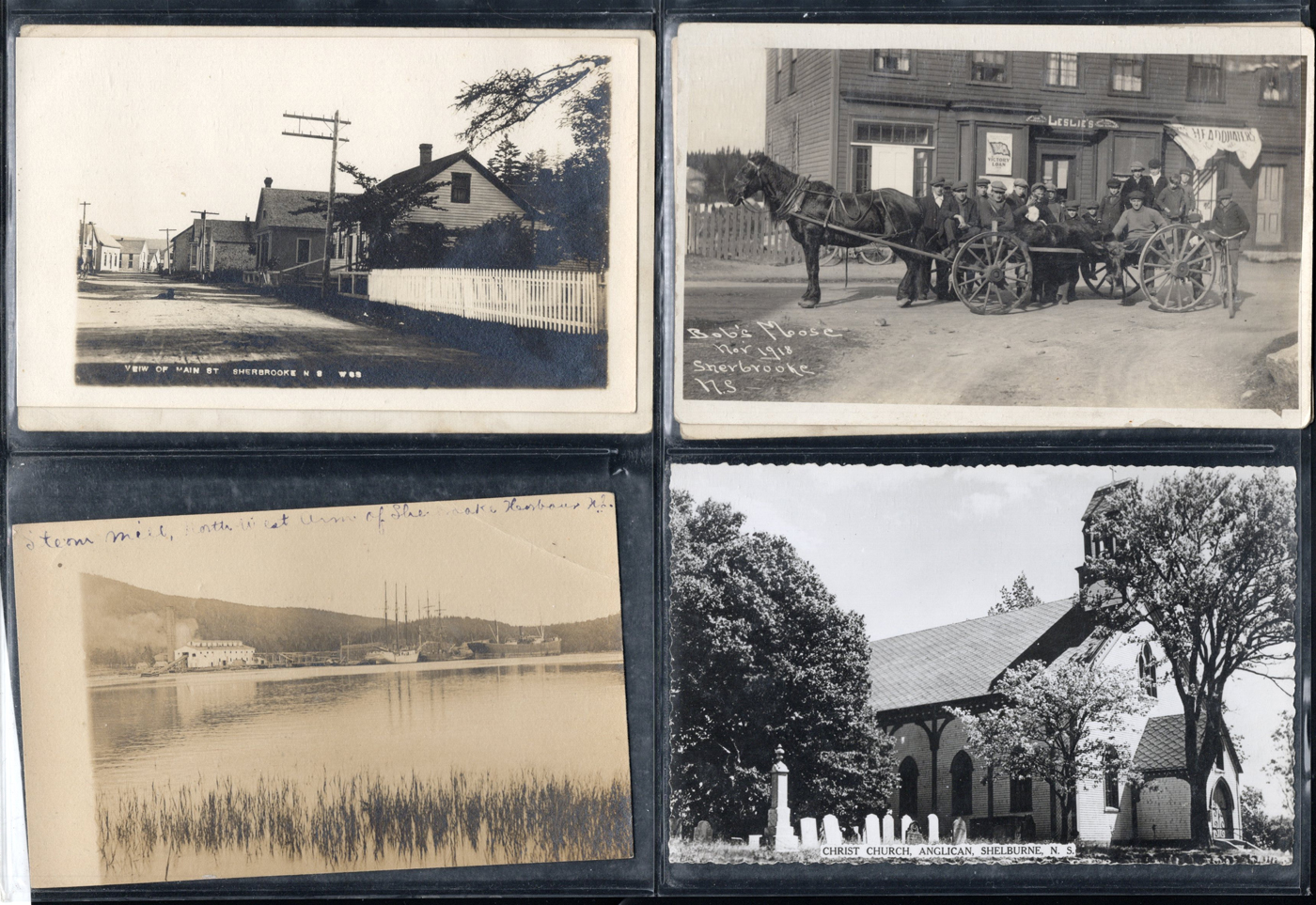 1203 PC   imageCollection of "K to M" Nova Scotia Towns Early Picture Postcards, with about 177 different mostly pre-World War II cards, sorted alphabetically by town in a postcard binder. We note a good variety of types, with real photo (many), town views, patriotic (several types, incl. series) with several scarce to rare cards. There is a mix of used and unused, so there can be postmark interest as well. Some edge, etc. faults noted, still overall fine to very fine. Photos show a good sampling. (Scan 1) (Scan 2) (Scan 3) (Scan 4) (Scan 5) (Scan 6) (Scan 7) (Scan 8) (Scan 9) (Scan 10) (Scan 11) (Scan 12) (Scan 13) (Scan 14) (Scan 15) (Scan 16) (Scan 17) (Scan 18) (Scan 19) (Scan 20) (All Scans)