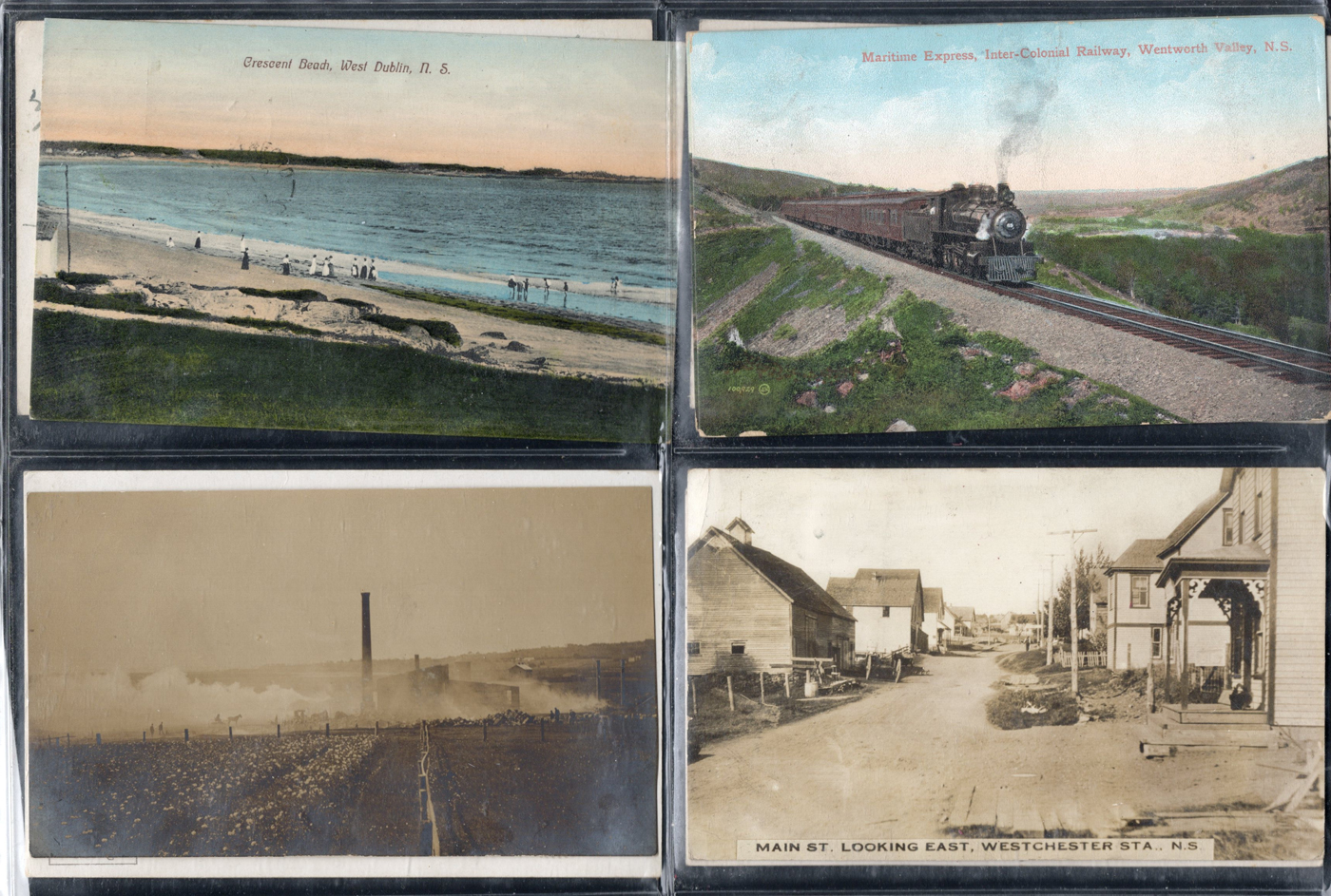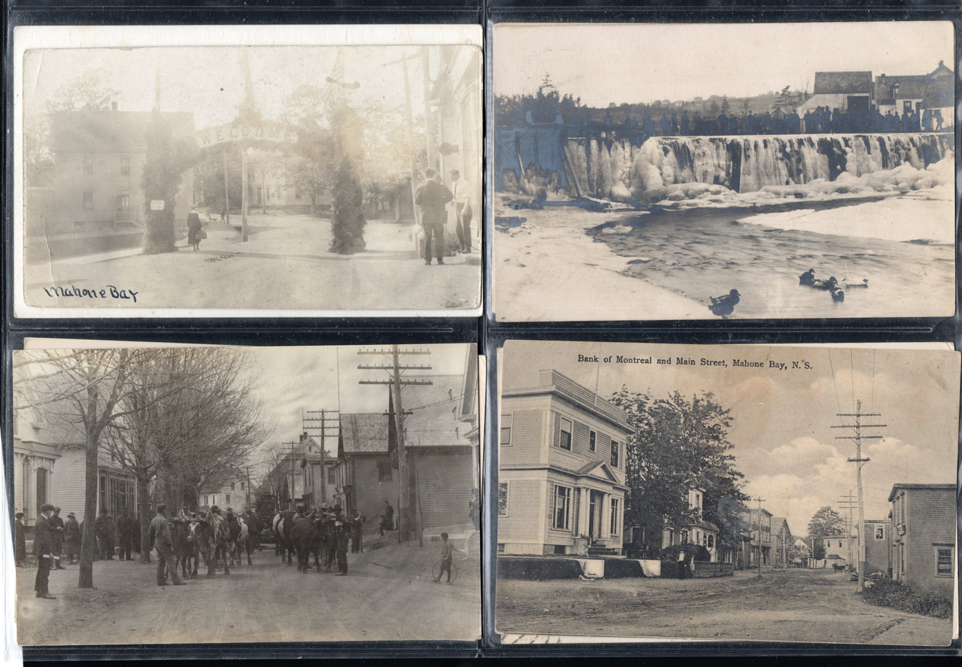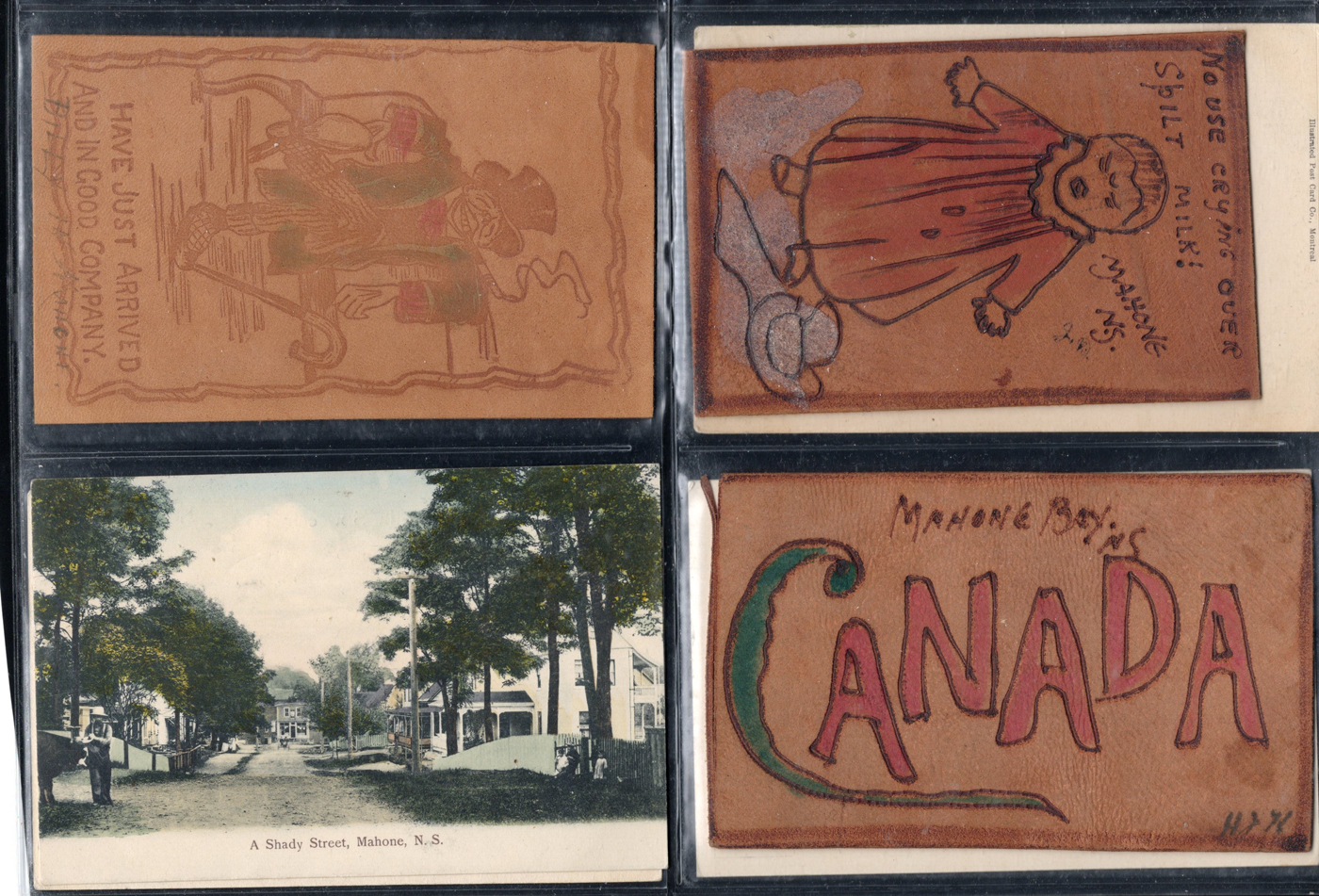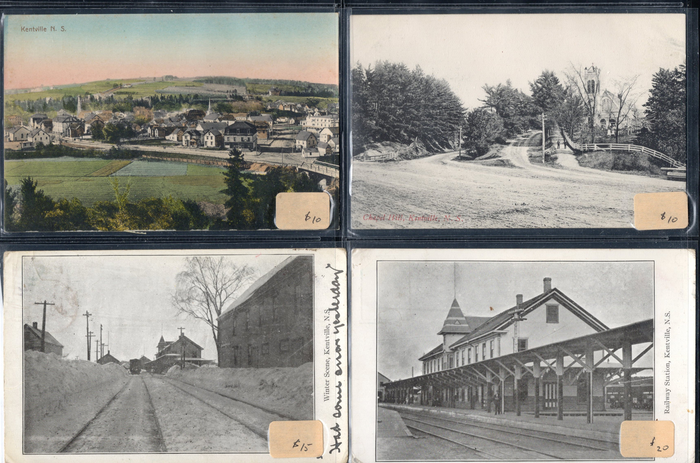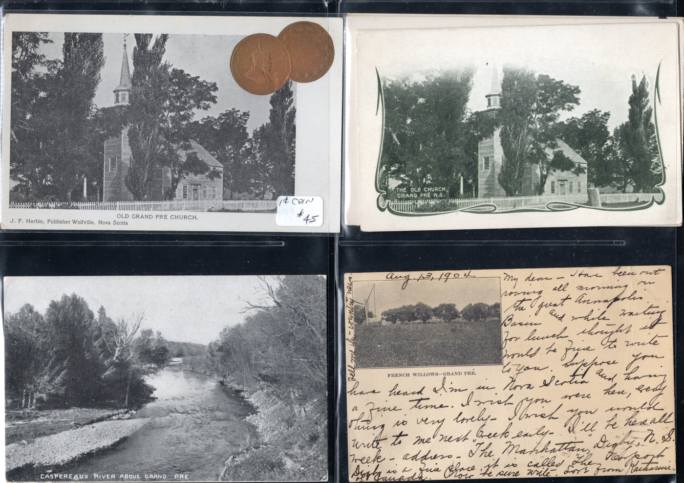 1203 PC   imageCollection of "K to M" Nova Scotia Towns Early Picture Postcards, with about 177 different mostly pre-World War II cards, sorted alphabetically by town in a postcard binder. We note a good variety of types, with real photo (many), town views, patriotic (several types, incl. series) with several scarce to rare cards. There is a mix of used and unused, so there can be postmark interest as well. Some edge, etc. faults noted, still overall fine to very fine. Photos show a good sampling. (Scan 1) (Scan 2) (Scan 3) (Scan 4) (Scan 5) (Scan 6) (Scan 7) (Scan 8) (Scan 9) (Scan 10) (Scan 11) (Scan 12) (Scan 13) (Scan 14) (Scan 15) (Scan 16) (Scan 17) (Scan 18) (Scan 19) (Scan 20) (All Scans)