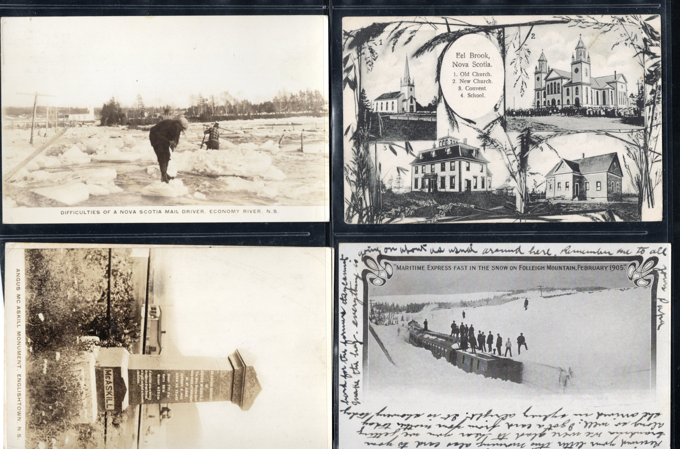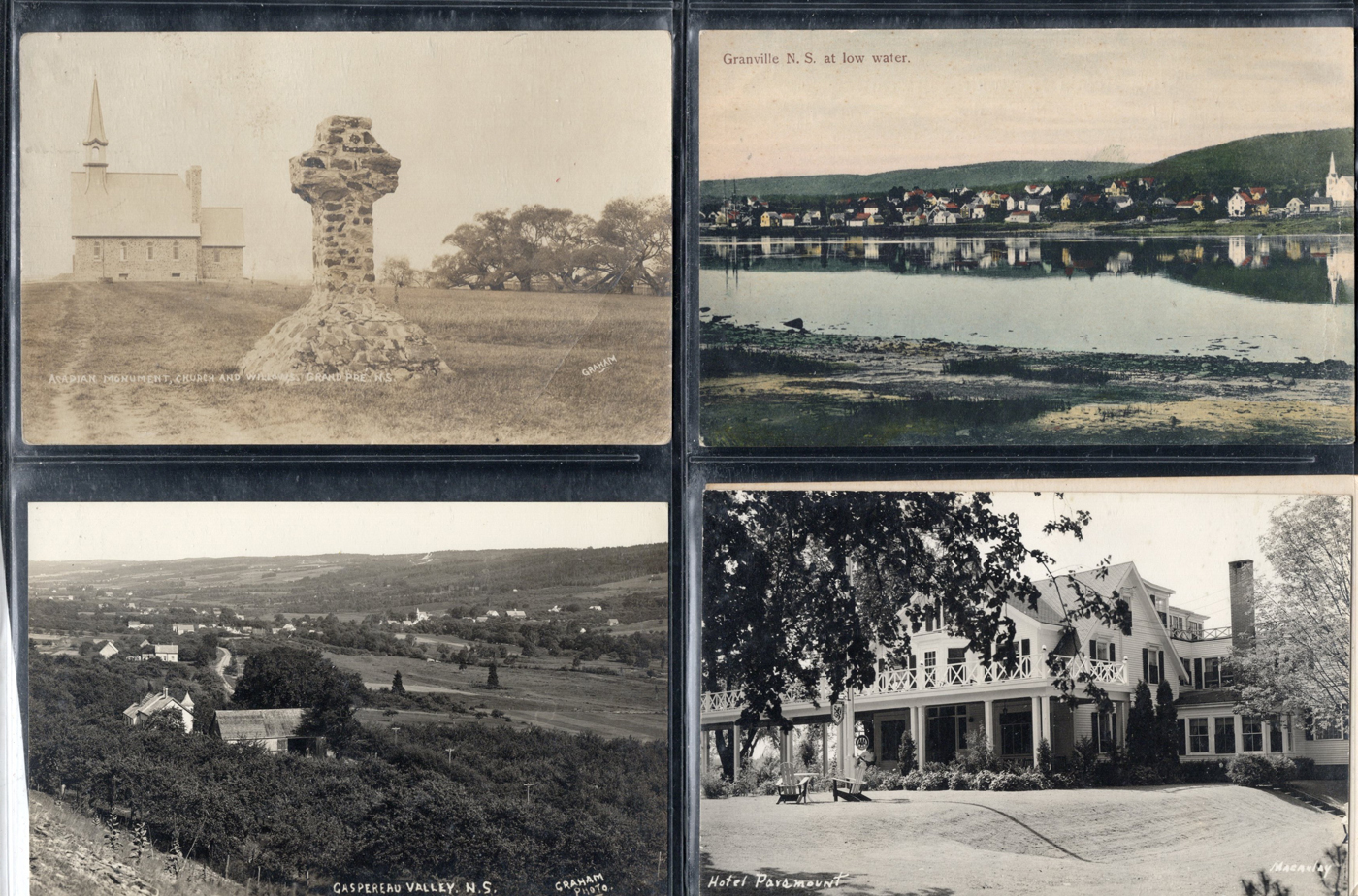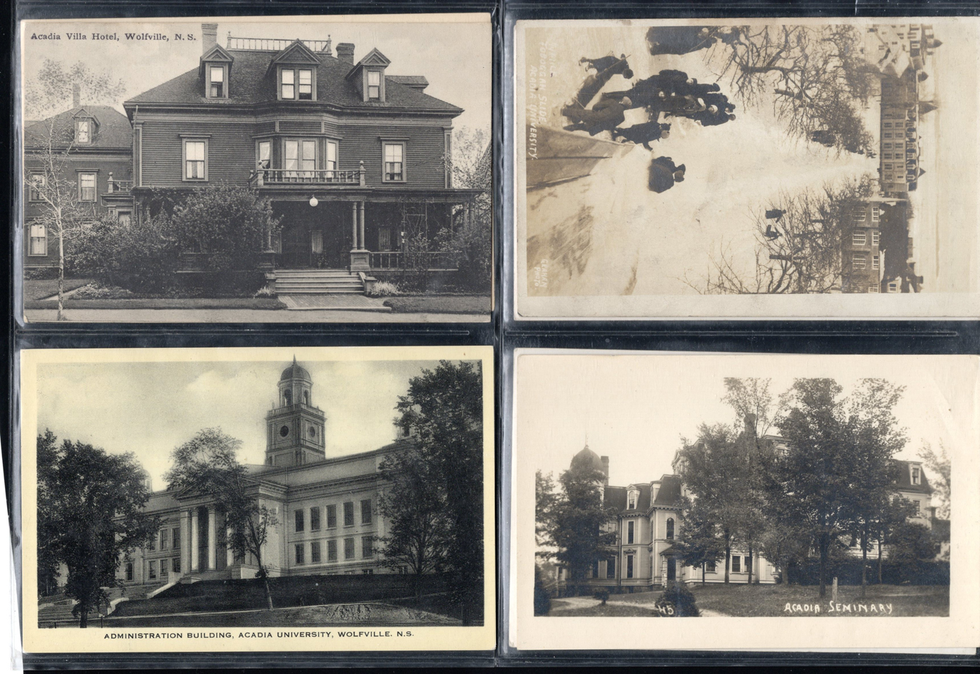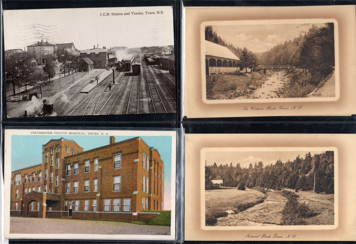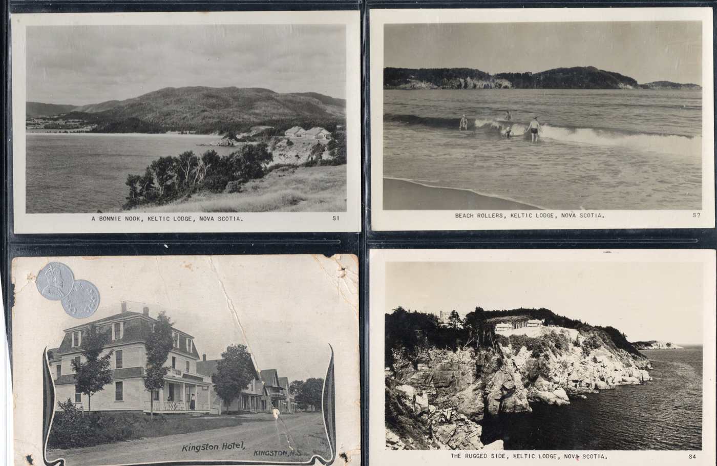 1203 PC   imageCollection of "K to M" Nova Scotia Towns Early Picture Postcards, with about 177 different mostly pre-World War II cards, sorted alphabetically by town in a postcard binder. We note a good variety of types, with real photo (many), town views, patriotic (several types, incl. series) with several scarce to rare cards. There is a mix of used and unused, so there can be postmark interest as well. Some edge, etc. faults noted, still overall fine to very fine. Photos show a good sampling. (Scan 1) (Scan 2) (Scan 3) (Scan 4) (Scan 5) (Scan 6) (Scan 7) (Scan 8) (Scan 9) (Scan 10) (Scan 11) (Scan 12) (Scan 13) (Scan 14) (Scan 15) (Scan 16) (Scan 17) (Scan 18) (Scan 19) (Scan 20) (All Scans)