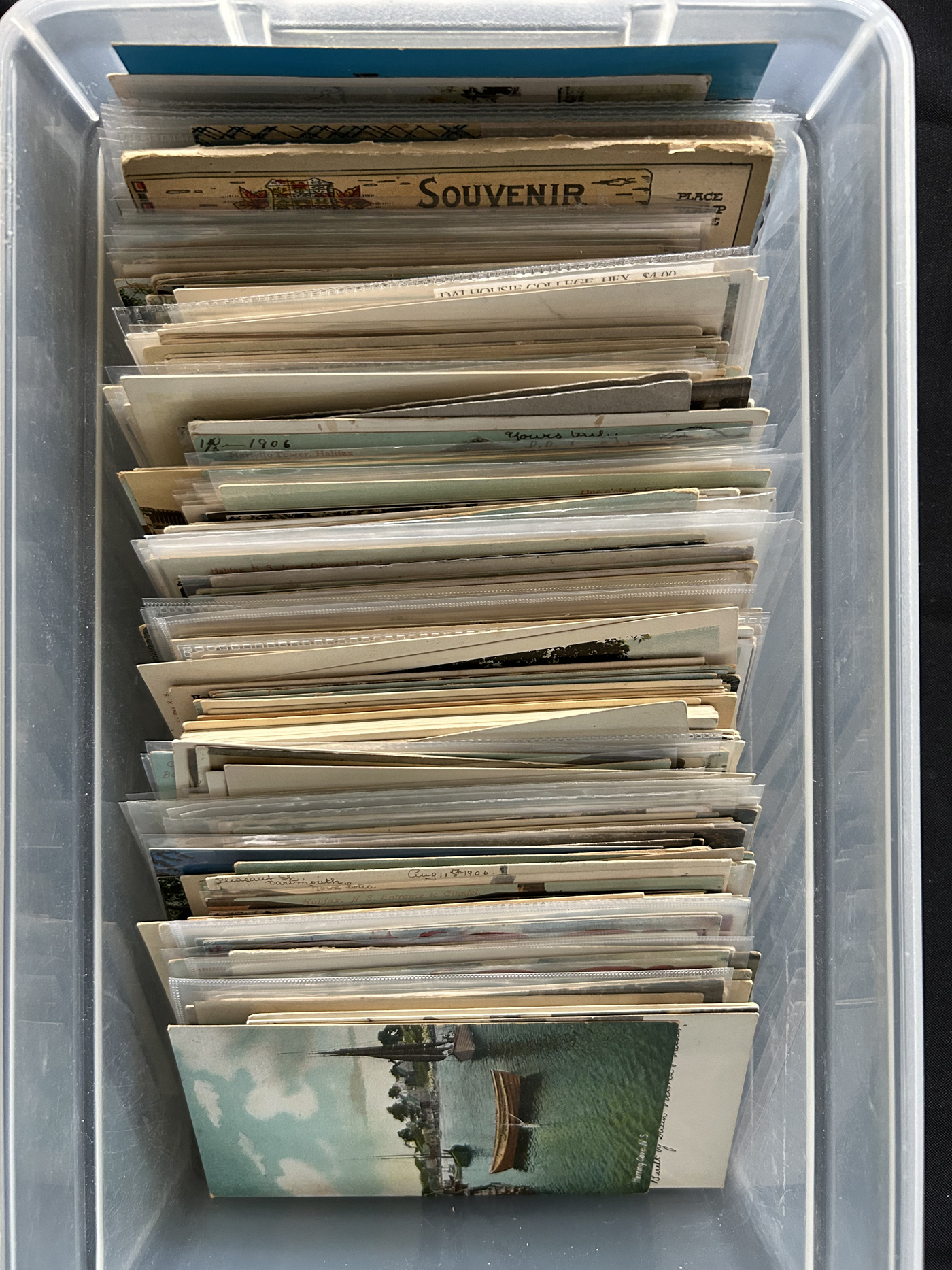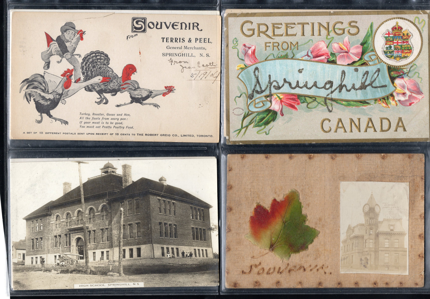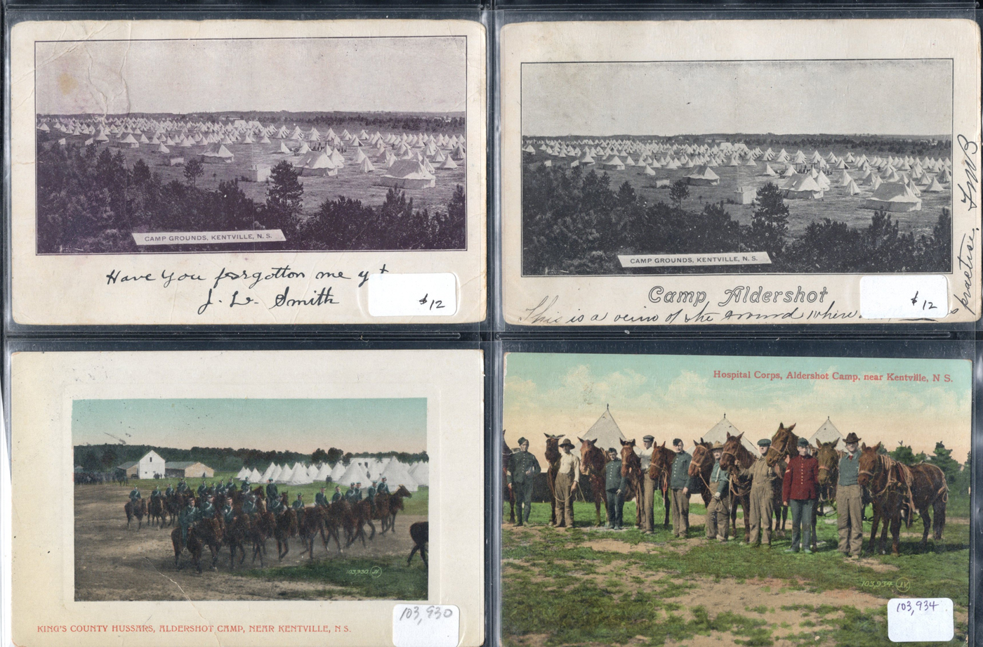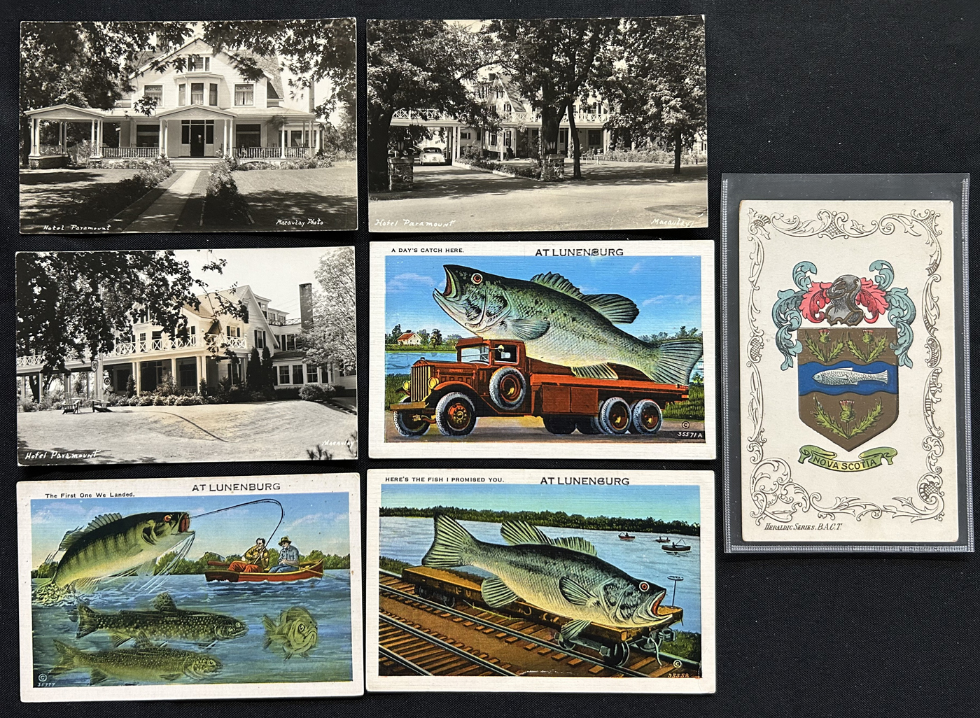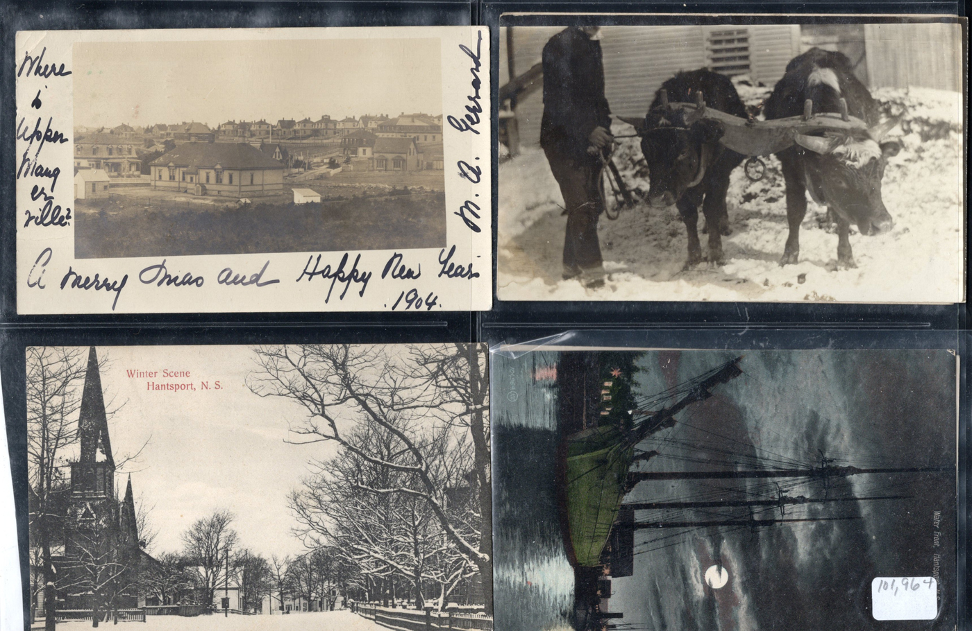 1203 PC   imageCollection of "K to M" Nova Scotia Towns Early Picture Postcards, with about 177 different mostly pre-World War II cards, sorted alphabetically by town in a postcard binder. We note a good variety of types, with real photo (many), town views, patriotic (several types, incl. series) with several scarce to rare cards. There is a mix of used and unused, so there can be postmark interest as well. Some edge, etc. faults noted, still overall fine to very fine. Photos show a good sampling. (Scan 1) (Scan 2) (Scan 3) (Scan 4) (Scan 5) (Scan 6) (Scan 7) (Scan 8) (Scan 9) (Scan 10) (Scan 11) (Scan 12) (Scan 13) (Scan 14) (Scan 15) (Scan 16) (Scan 17) (Scan 18) (Scan 19) (Scan 20) (All Scans)