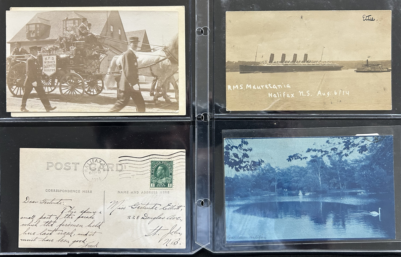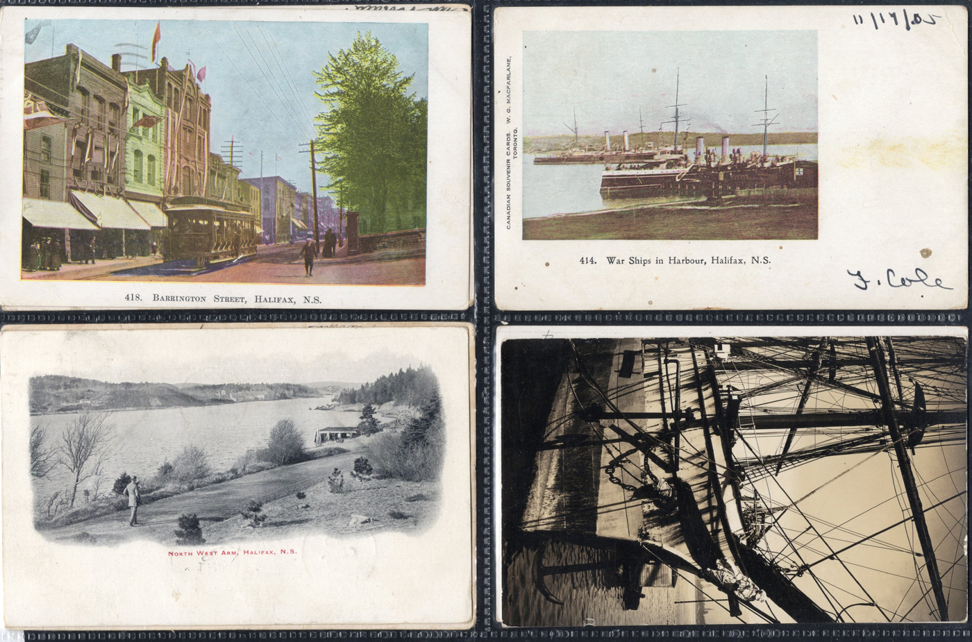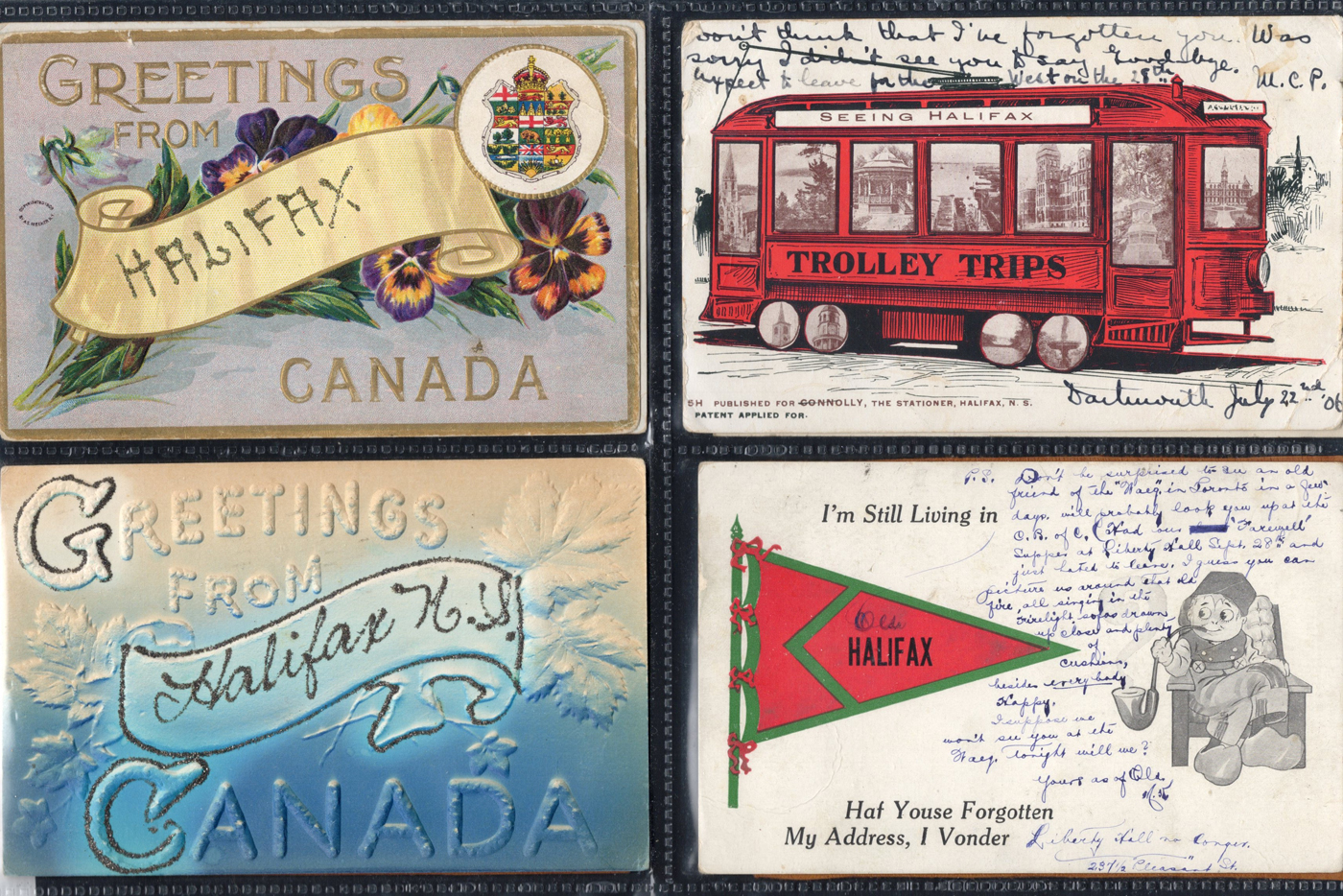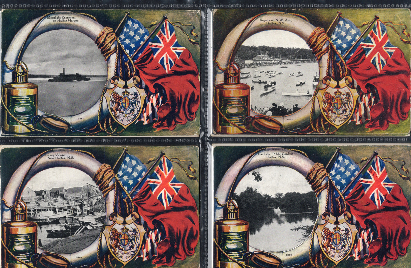 1212 PC   imageCollection of About 300 Halifax, Nova Scotia Picture Postcards, with a wide range of subjects depicted, including World War I themes (ships, soldiers, barracks, parades), patriotics, buildings, the 1917 Halifax explosion, real photos, winter scenes, and much more. Most are pre-World War II, noted a dozen or so sepia and chrome cards. We estimate over half have been mailed, so there is also postmark interest. Overall fine or better, see photos for a sampling. (Scan 1) (Scan 2) (Scan 3) (Scan 4) (Scan 5) (Scan 6) (Scan 7) (Scan 8) (All Scans)