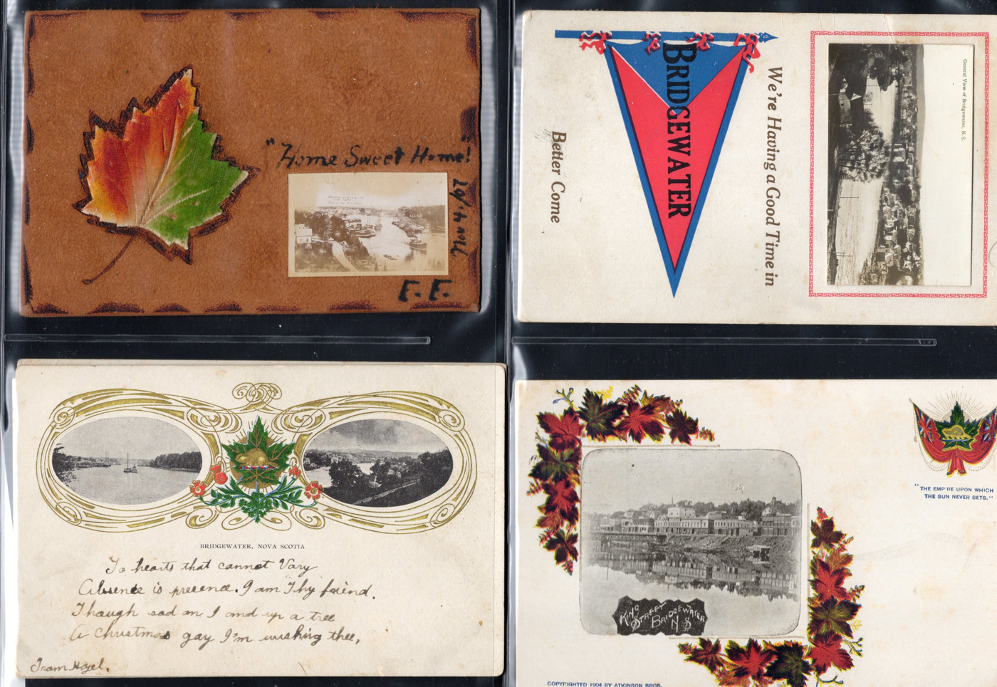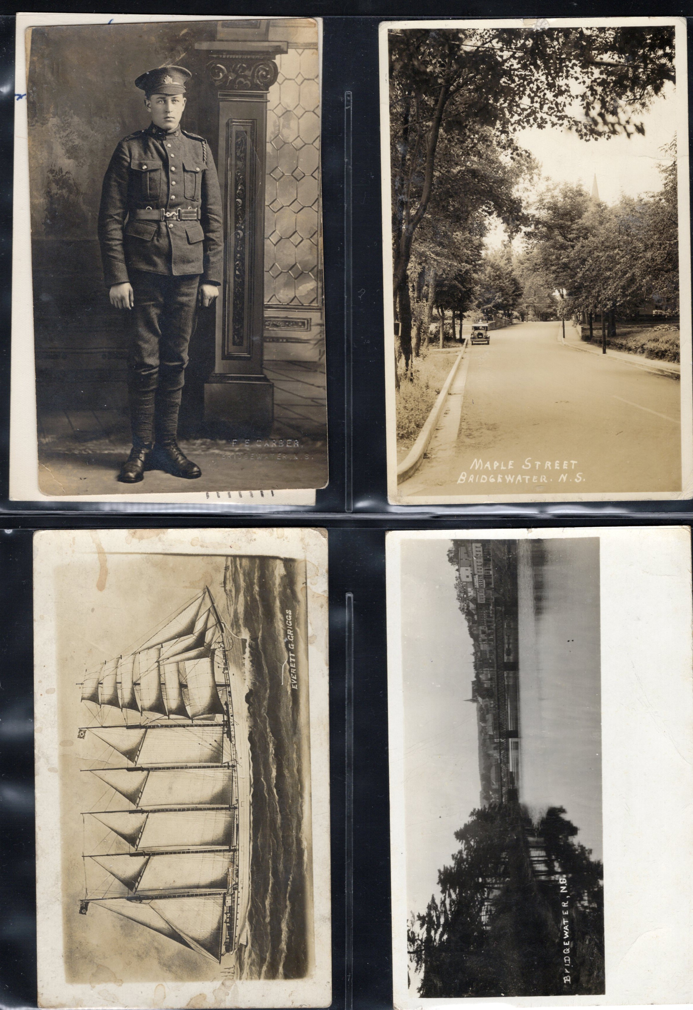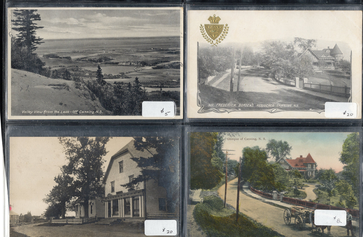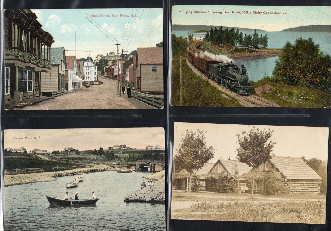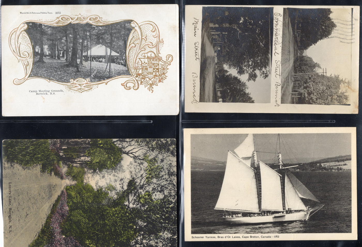 1201 PC   imageCollection of "B and C" Nova Scotia Towns Early Picture Postcards, with about 167 different mostly pre-World War II cards, sorted alphabetically by town in a postcard binder. We note a good variety of types, with real photo, town views, patriotic (several types, incl. series) with several scarce to rare cards. There is a mix of used and unused, so there can be postmark interest as well. Some edge, etc. faults noted, still overall fine to very fine. Photos show a good sampling. (Scan 1) (Scan 2) (Scan 3) (Scan 4) (Scan 5) (Scan 6) (Scan 7) (Scan 8) (Scan 9) (Scan 10) (Scan 11) (Scan 12) (Scan 13) (Scan 14) (Scan 15) (Scan 16) (Scan 17) (Scan 18) (Scan 19) (Scan 20) (All Scans)
