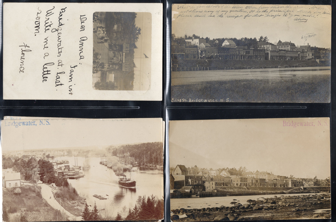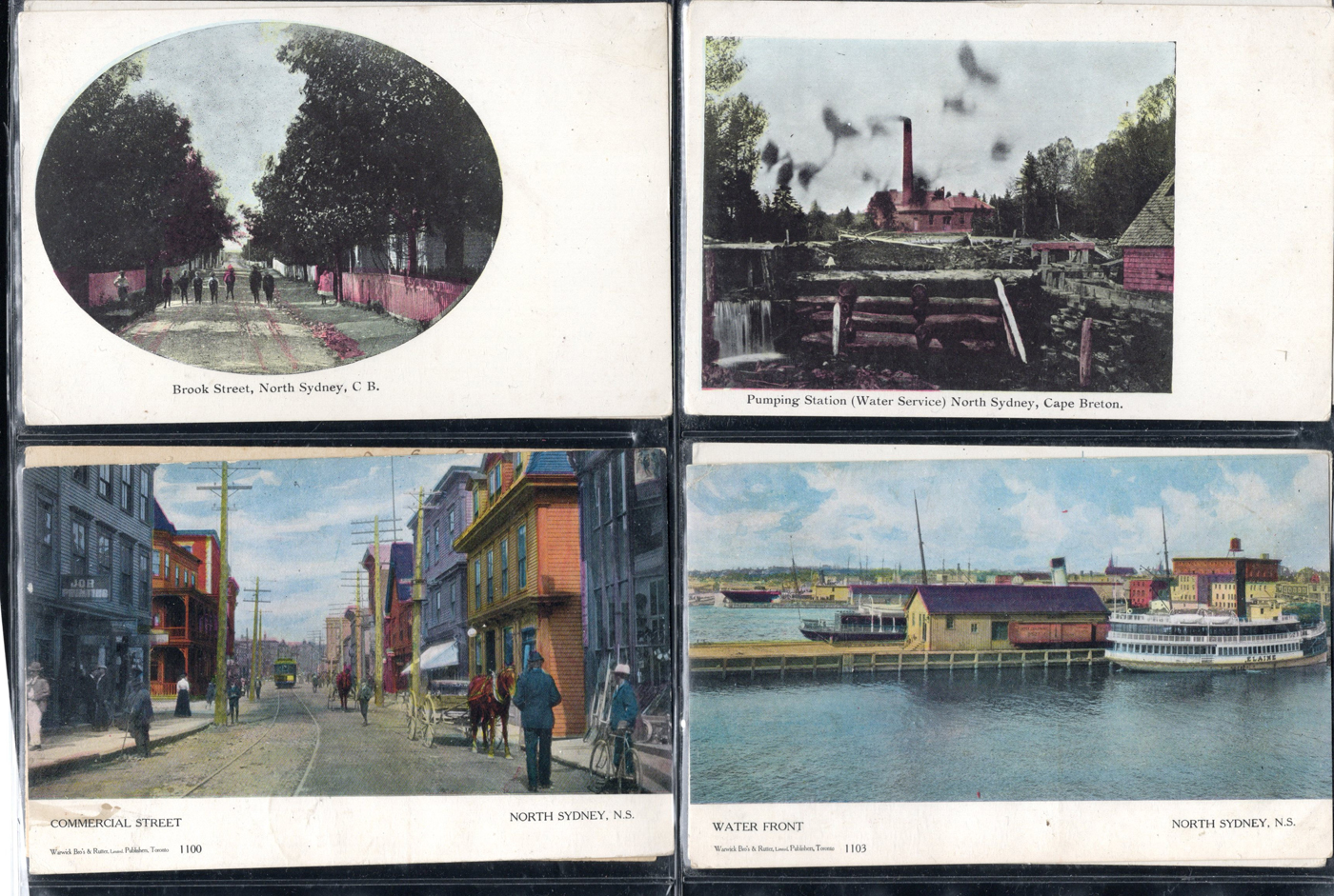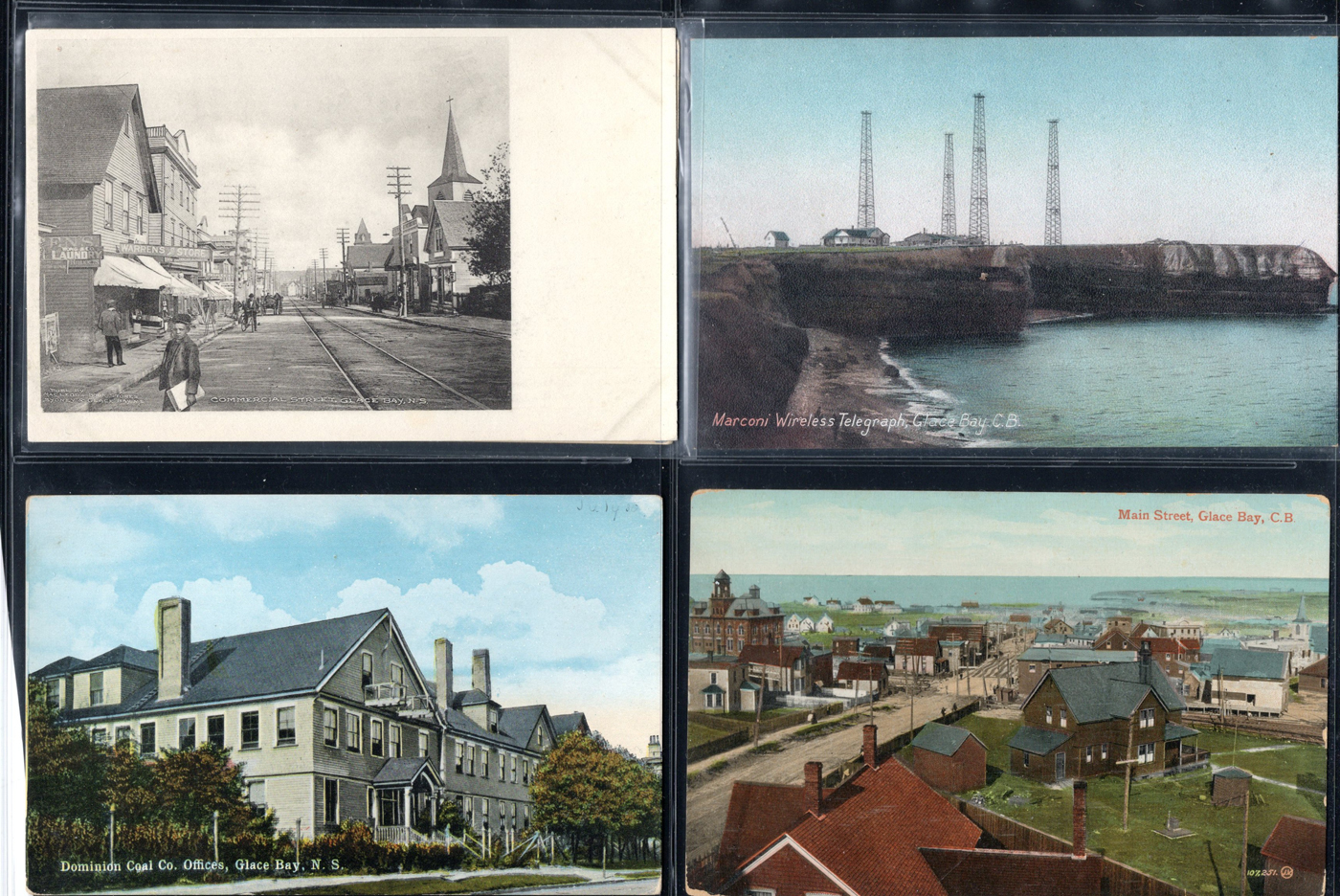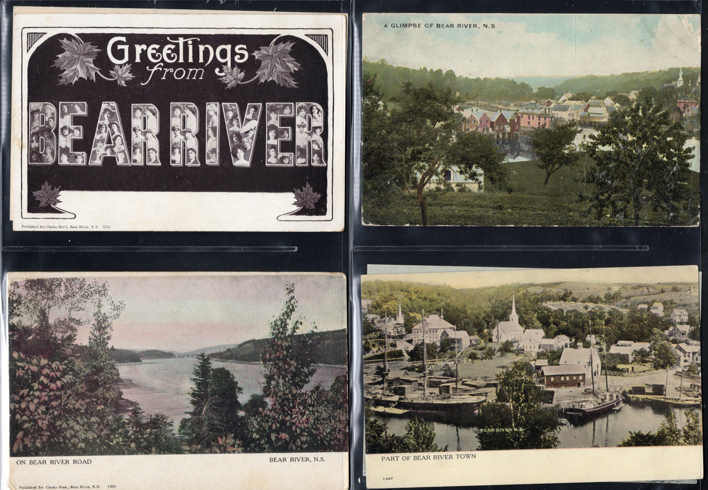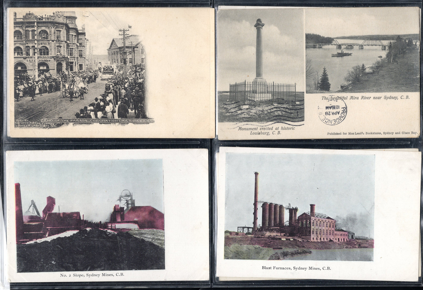 1201 PC   imageCollection of "B and C" Nova Scotia Towns Early Picture Postcards, with about 167 different mostly pre-World War II cards, sorted alphabetically by town in a postcard binder. We note a good variety of types, with real photo, town views, patriotic (several types, incl. series) with several scarce to rare cards. There is a mix of used and unused, so there can be postmark interest as well. Some edge, etc. faults noted, still overall fine to very fine. Photos show a good sampling. (Scan 1) (Scan 2) (Scan 3) (Scan 4) (Scan 5) (Scan 6) (Scan 7) (Scan 8) (Scan 9) (Scan 10) (Scan 11) (Scan 12) (Scan 13) (Scan 14) (Scan 15) (Scan 16) (Scan 17) (Scan 18) (Scan 19) (Scan 20) (All Scans)