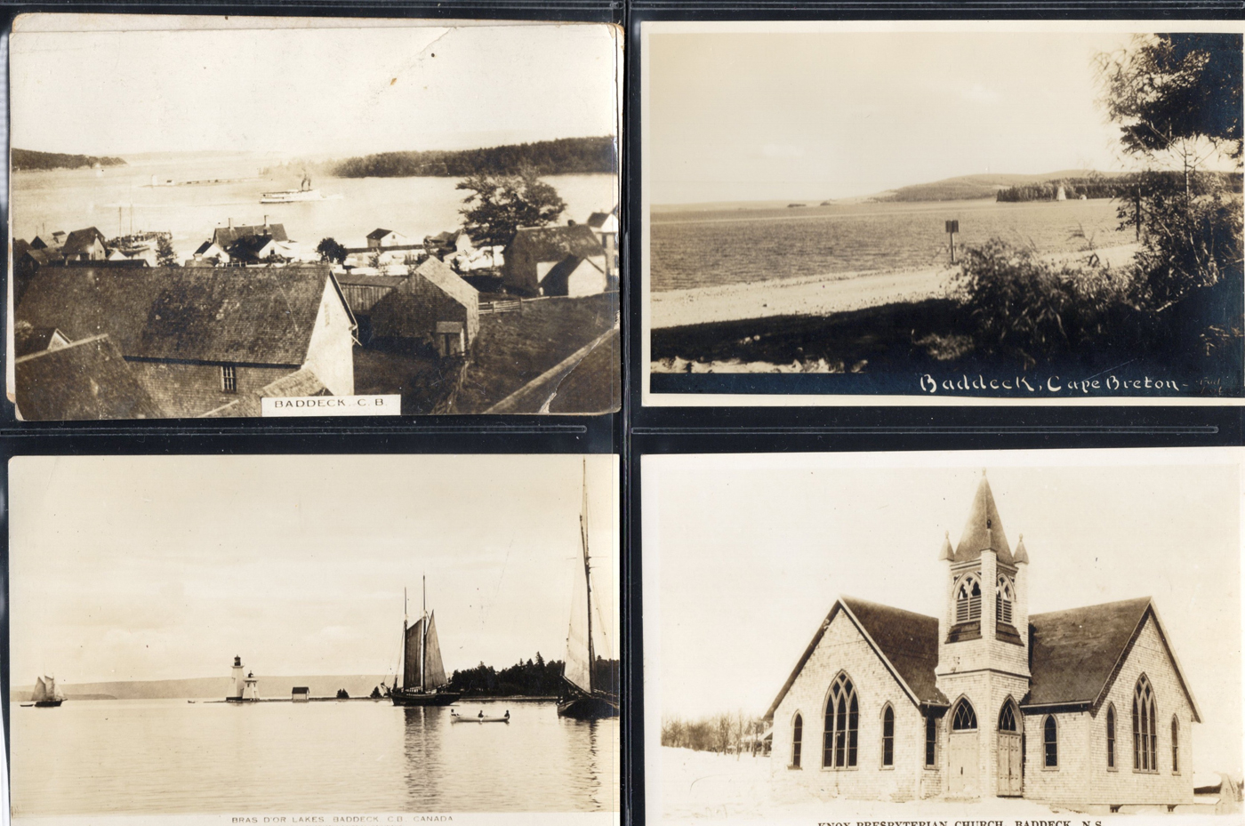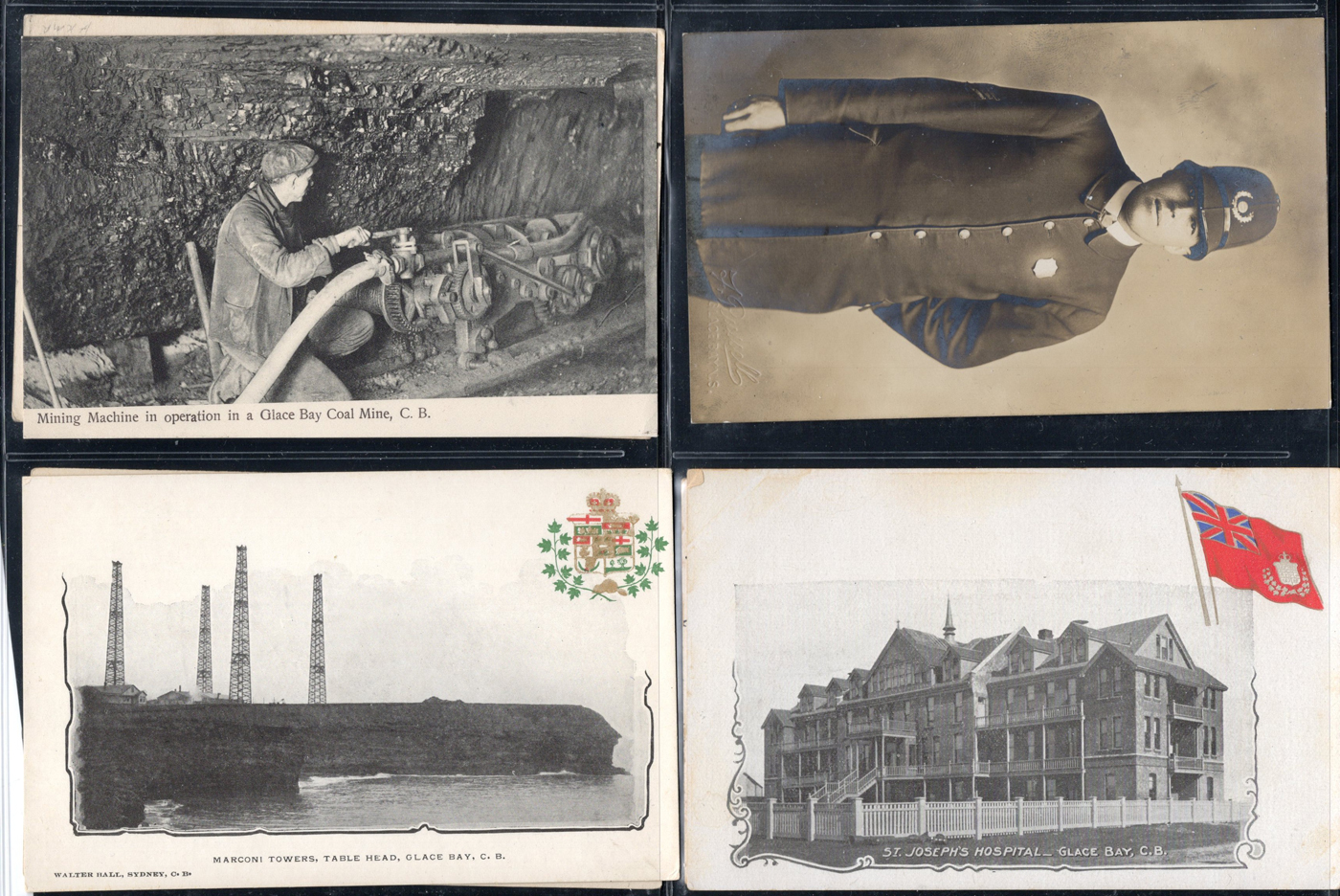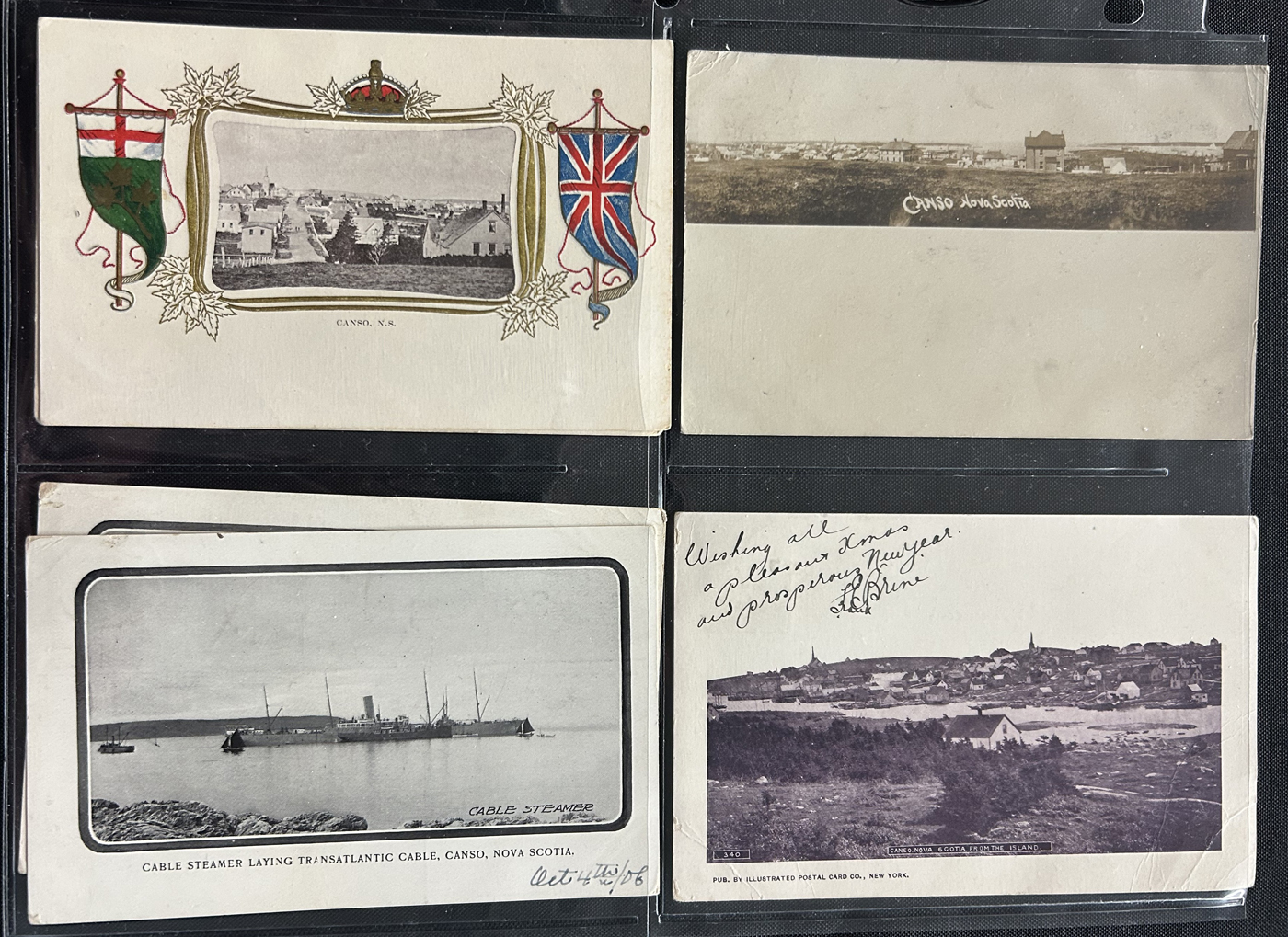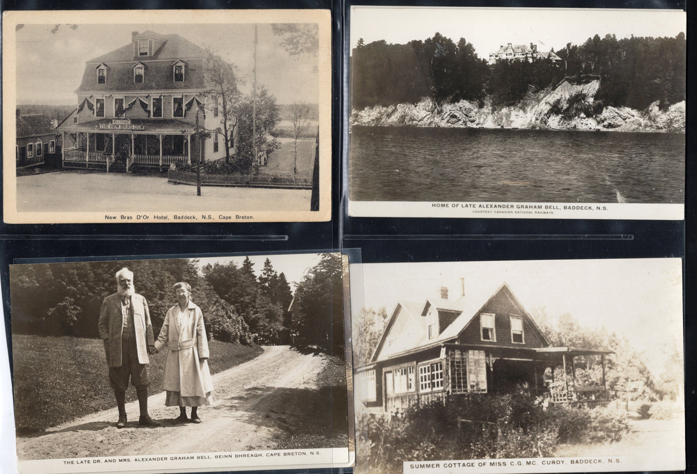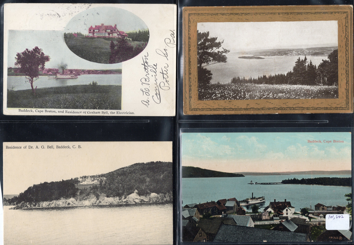 1201 PC   imageCollection of "B and C" Nova Scotia Towns Early Picture Postcards, with about 167 different mostly pre-World War II cards, sorted alphabetically by town in a postcard binder. We note a good variety of types, with real photo, town views, patriotic (several types, incl. series) with several scarce to rare cards. There is a mix of used and unused, so there can be postmark interest as well. Some edge, etc. faults noted, still overall fine to very fine. Photos show a good sampling. (Scan 1) (Scan 2) (Scan 3) (Scan 4) (Scan 5) (Scan 6) (Scan 7) (Scan 8) (Scan 9) (Scan 10) (Scan 11) (Scan 12) (Scan 13) (Scan 14) (Scan 15) (Scan 16) (Scan 17) (Scan 18) (Scan 19) (Scan 20) (All Scans)