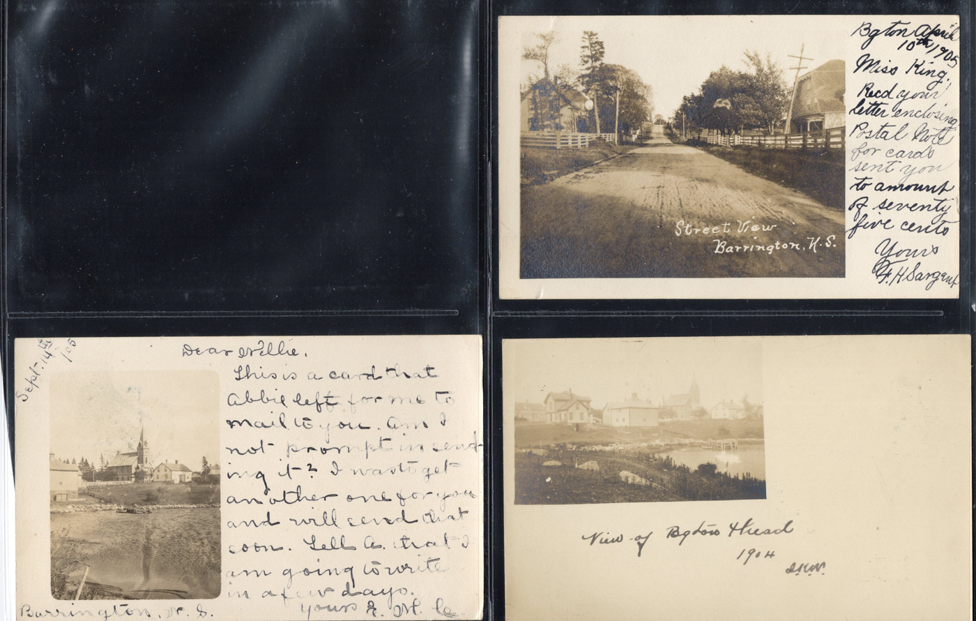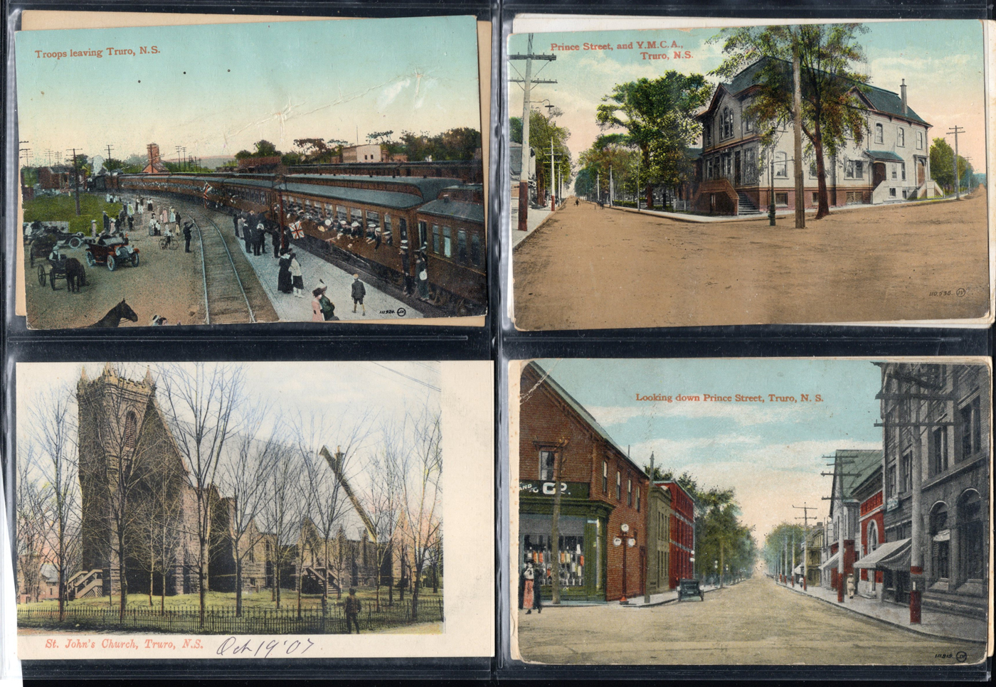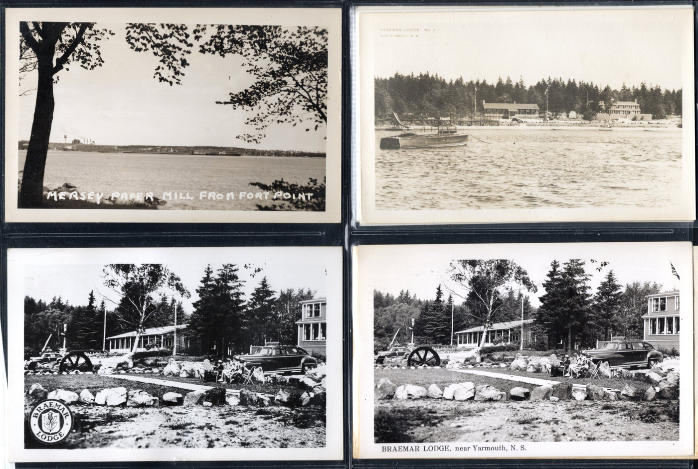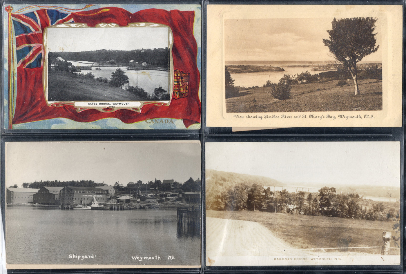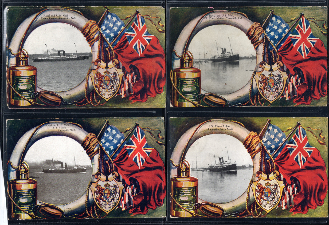 1207 PC   imageCollection of Yarmouth, Nova Scotia Towns Early Picture Postcards, with about 118 different mostly pre-World War II cards, sorted alphabetically by town in a postcard binder. We note a good variety of types, with real photo (many), town views, patriotic (several types, incl. series) with several scarce to rare cards. There is a mix of used and unused, so there can be postmark interest as well. Some edge, etc. faults noted, still overall fine to very fine. Photos show a good sampling. (Scan 1) (Scan 2) (Scan 3) (Scan 4) (Scan 5) (Scan 6) (Scan 7) (Scan 8) (Scan 9) (Scan 10) (Scan 11) (Scan 12) (Scan 13) (Scan 14) (Scan 15) (Scan 16) (Scan 17) (All Scans)
