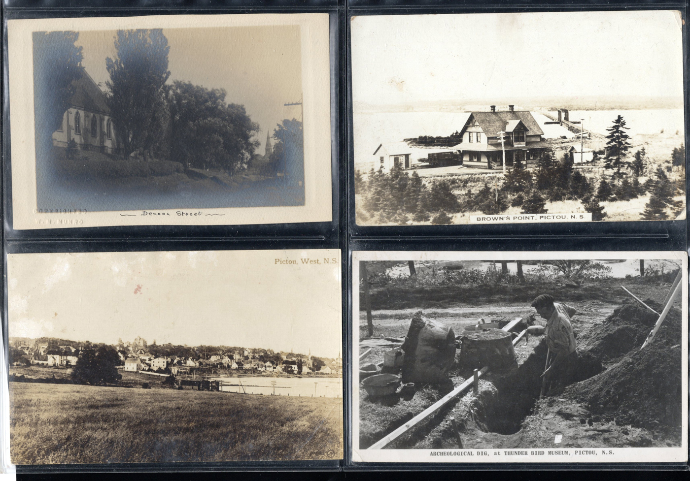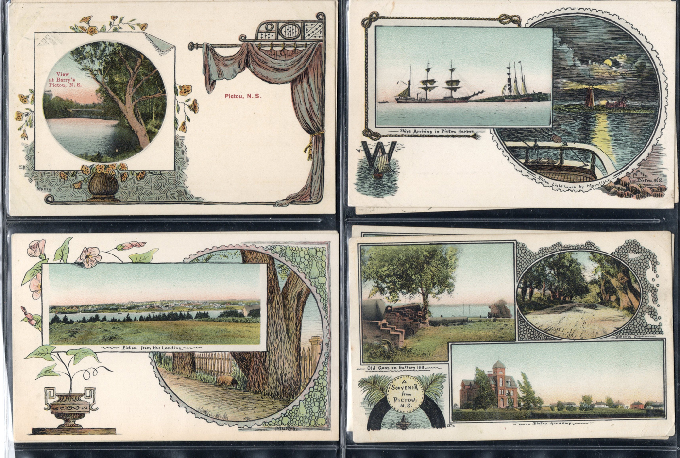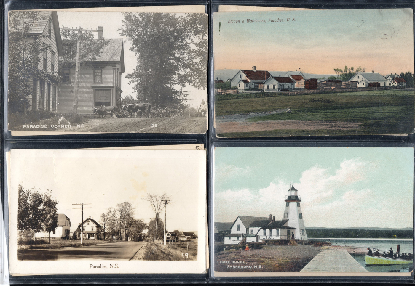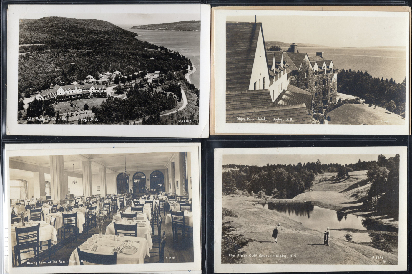 1204 PC   imageCollection of "N to P" Nova Scotia Towns Early Picture Postcards, with about 195 different mostly pre-World War II cards, sorted alphabetically by town in a postcard binder. We note a good variety of types, with real photo (many), town views, patriotic (several types, incl. series) with several scarce to rare cards. There is a mix of used and unused, so there can be postmark interest as well. Some edge, etc. faults noted, still overall fine to very fine. Photos show a good sampling. (Scan 1) (Scan 2) (Scan 3) (Scan 4) (Scan 5) (Scan 6) (Scan 7) (Scan 8) (Scan 9) (Scan 10) (Scan 11) (Scan 12) (Scan 13) (Scan 14) (Scan 15) (Scan 16) (Scan 17) (Scan 18) (Scan 19) (Scan 20) (Scan 21) (Scan 22) (Scan 23) (Scan 24) (Scan 25) (All Scans)