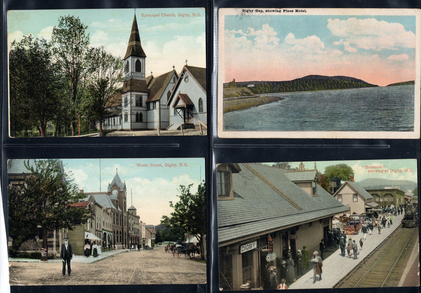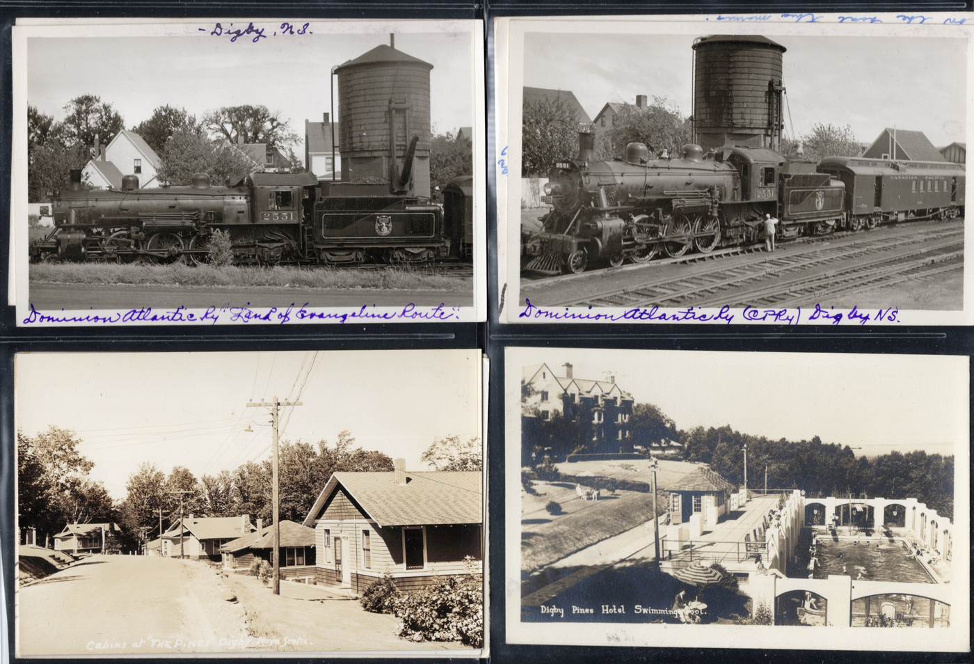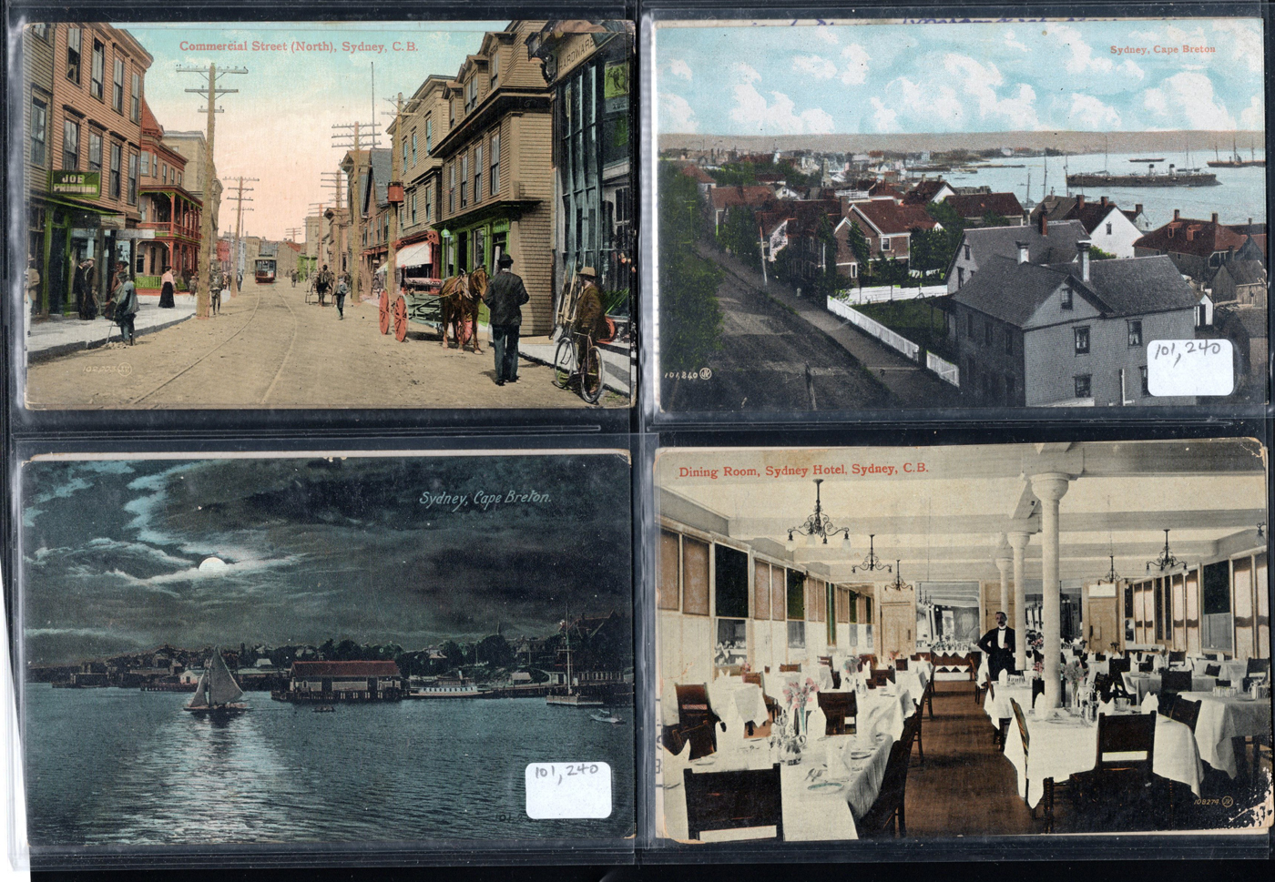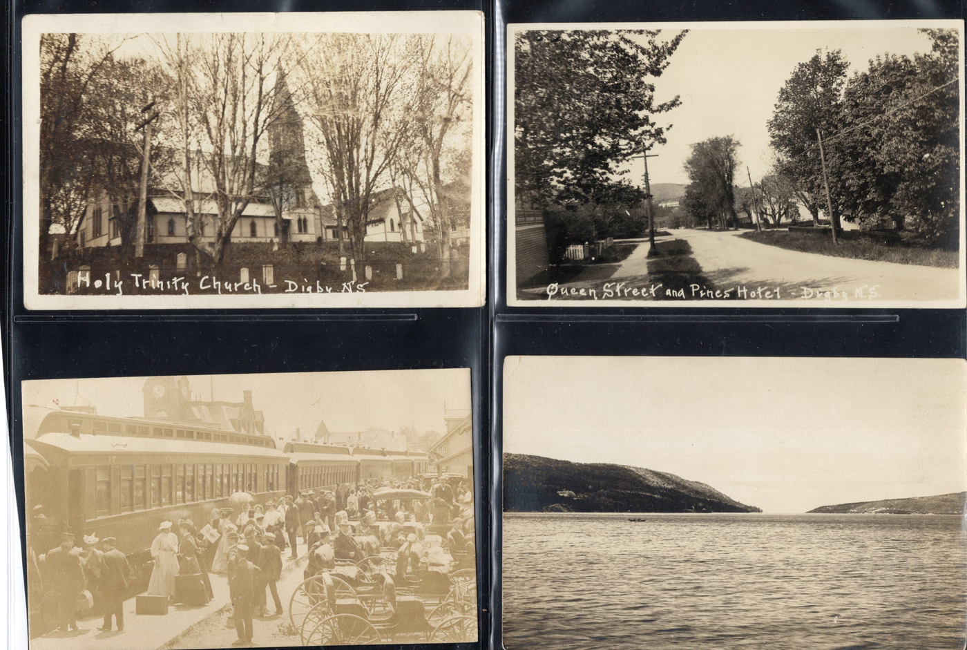 1202 PC   imageCollection of "D to J" Nova Scotia Towns Early Picture Postcards, with about 210 different mostly pre-World War II cards (no Halifax), sorted alphabetically by town in a postcard binder. We note a good variety of types, with real photo (many), town views, patriotic (several types, incl. series) with several scarce to rare cards. There is a mix of used and unused, so there can be postmark interest as well. Some edge, etc. faults noted, still overall fine to very fine. Photos show a good sampling. (Scan 1) (Scan 2) (Scan 3) (Scan 4) (Scan 5) (Scan 6) (Scan 7) (Scan 8) (Scan 9) (Scan 10) (Scan 11) (Scan 12) (Scan 13) (Scan 14) (Scan 15) (Scan 16) (Scan 17) (Scan 18) (Scan 19) (Scan 20) (Scan 21) (Scan 22) (Scan 23) (Scan 24) (Scan 25) (Scan 26) (Scan 27) (All Scans)
