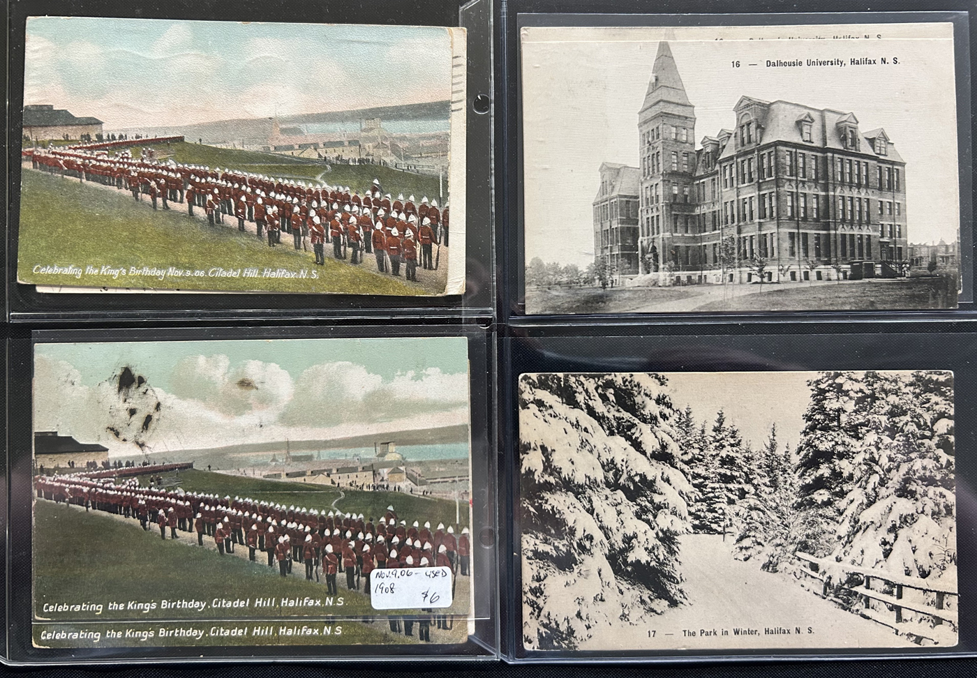 1215 PC   imageCollection of About 72 Early Halifax, Nova Scotia Picture Postcards, with a wide range of subjects depicted, including buildings, street scenes, regiment parades, etc. Most are pre-World War II, noted a few more recent. Many have been mailed, so there may also be postmark interest. Overall fine or better, all cards shown online. (Scan 1) (Scan 2) (Scan 3) (Scan 4) (Scan 5) (Scan 6) (Scan 7) (Scan 8) (Scan 9) (Scan 10) (Scan 11) (Scan 12) (Scan 13) (Scan 14) (Scan 15) (Scan 16) (Scan 17) (Scan 18) (Scan 19) (Scan 20) (All Scans)