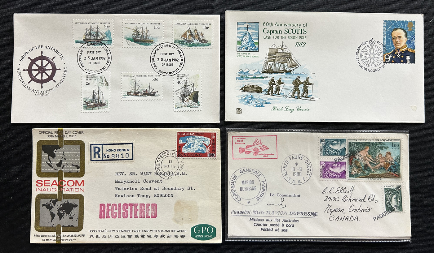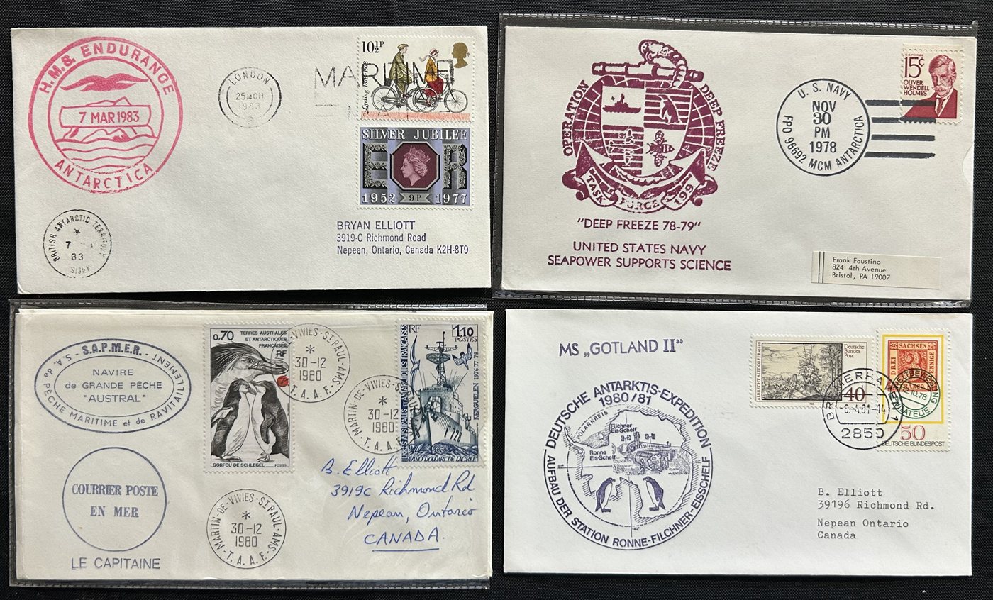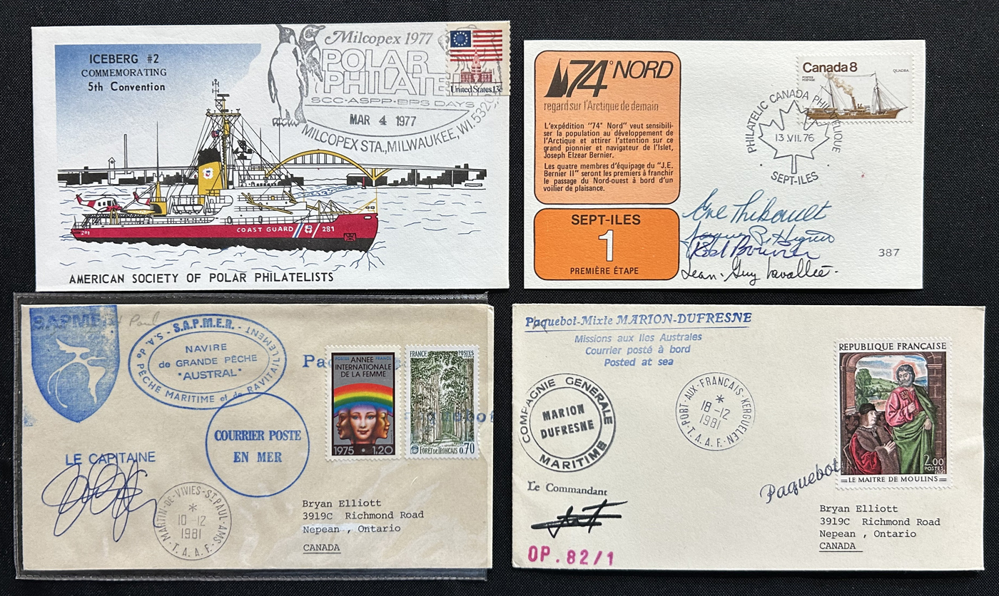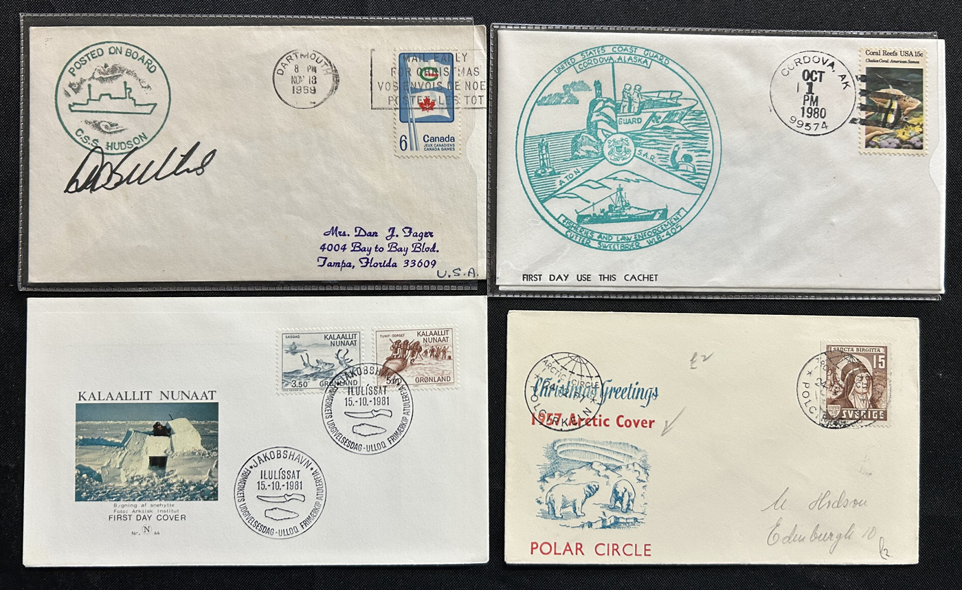 1219 CVR   imageGroup of Over 500 Arctic Patrol and Polar Related Covers, from the 1950s to the 1980s, from a wide variety of different countries. Many with special cachets and postmarks (note several Northwest Territories) saw some signed covers and more. A small proportion of the covers are Arctic or Polar or Naval in nature only, as they are franked with stamps on that theme. Overall very fine, a lifetime accumulation of this fascinating subject. See pictures for an idea. (Scan 1) (Scan 2) (Scan 3) (Scan 4) (Scan 5) (Scan 6) (Scan 7) (Scan 8) (Scan 9) (Scan 10) (All Scans)