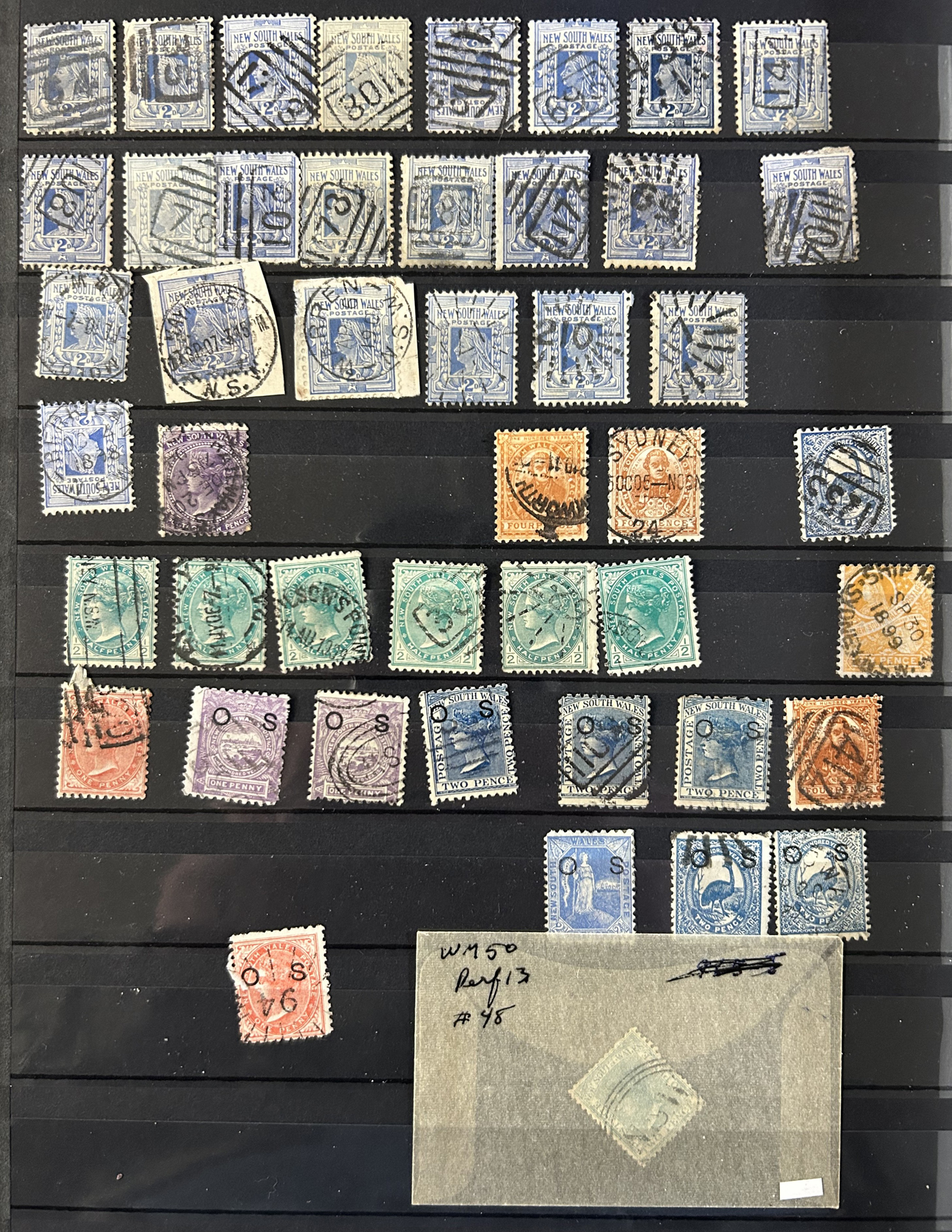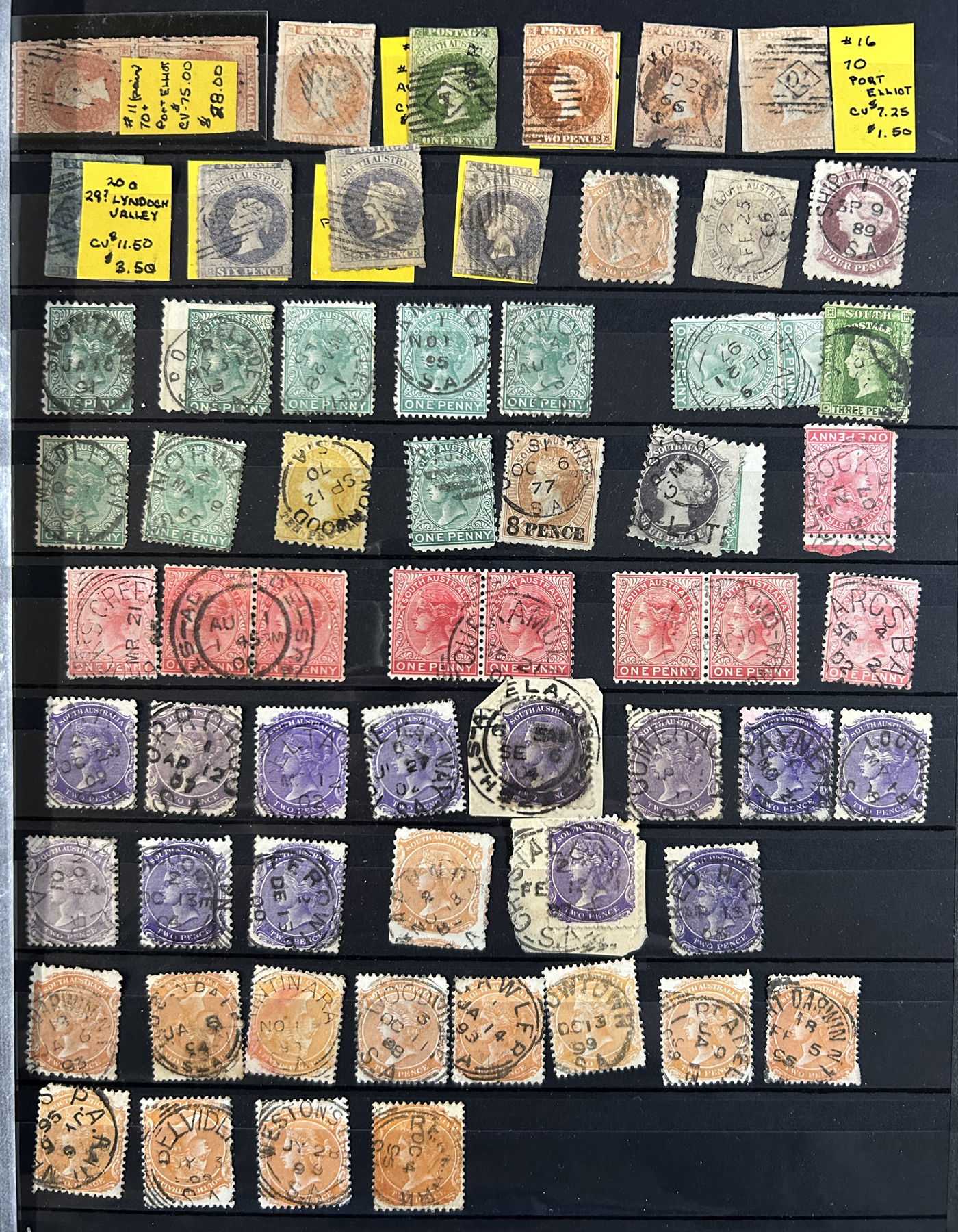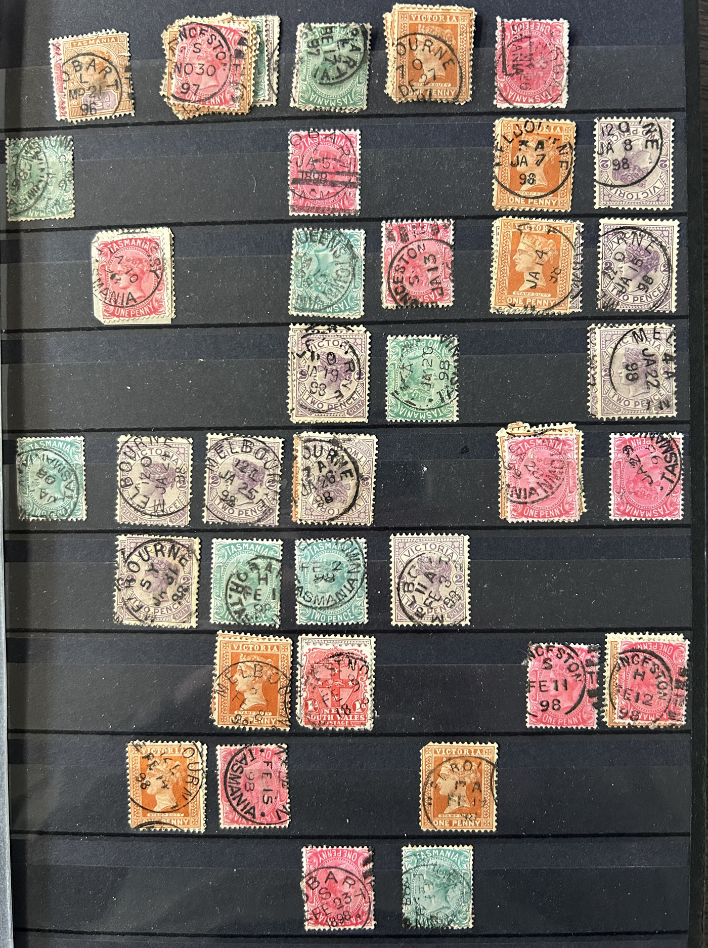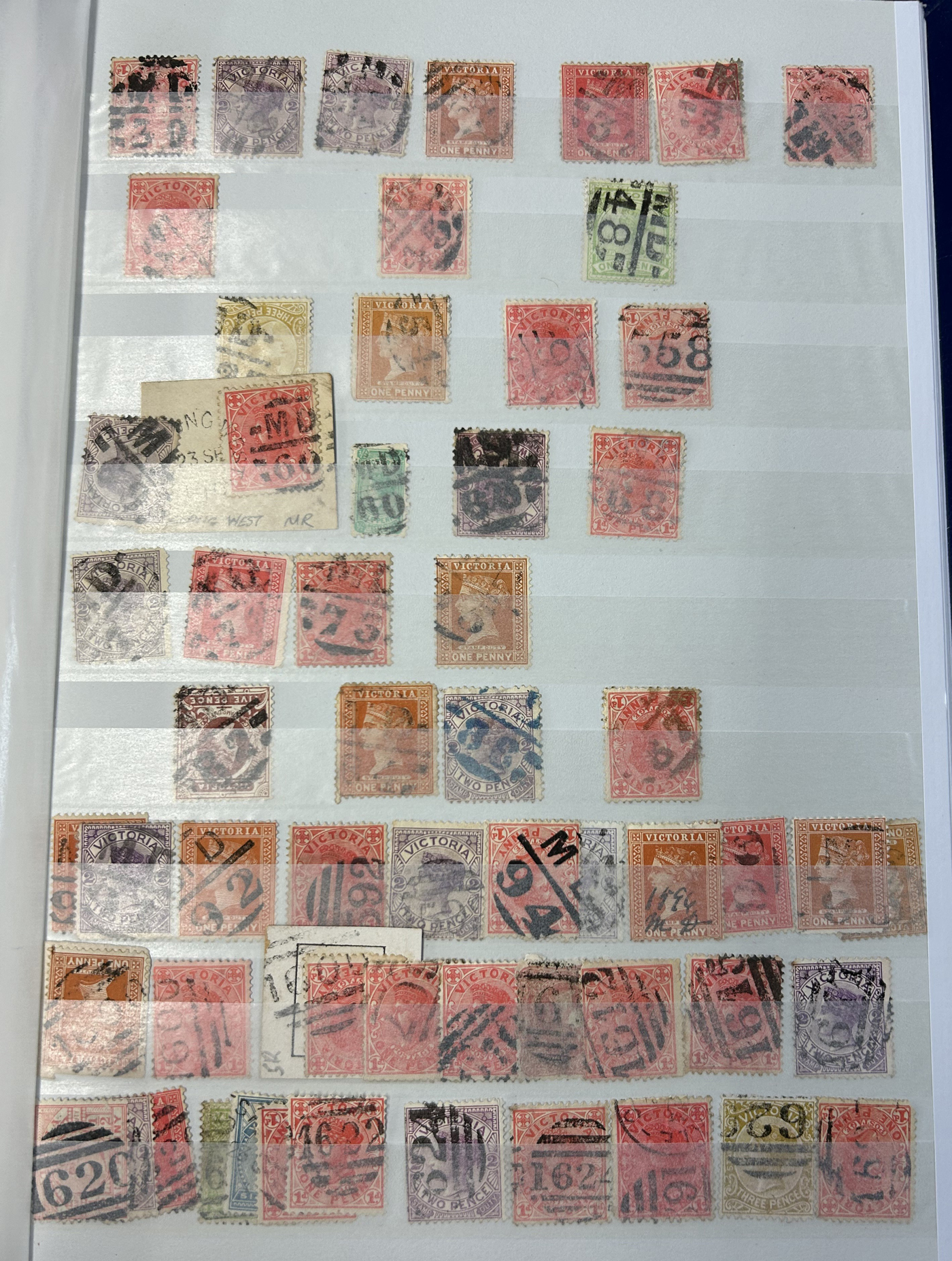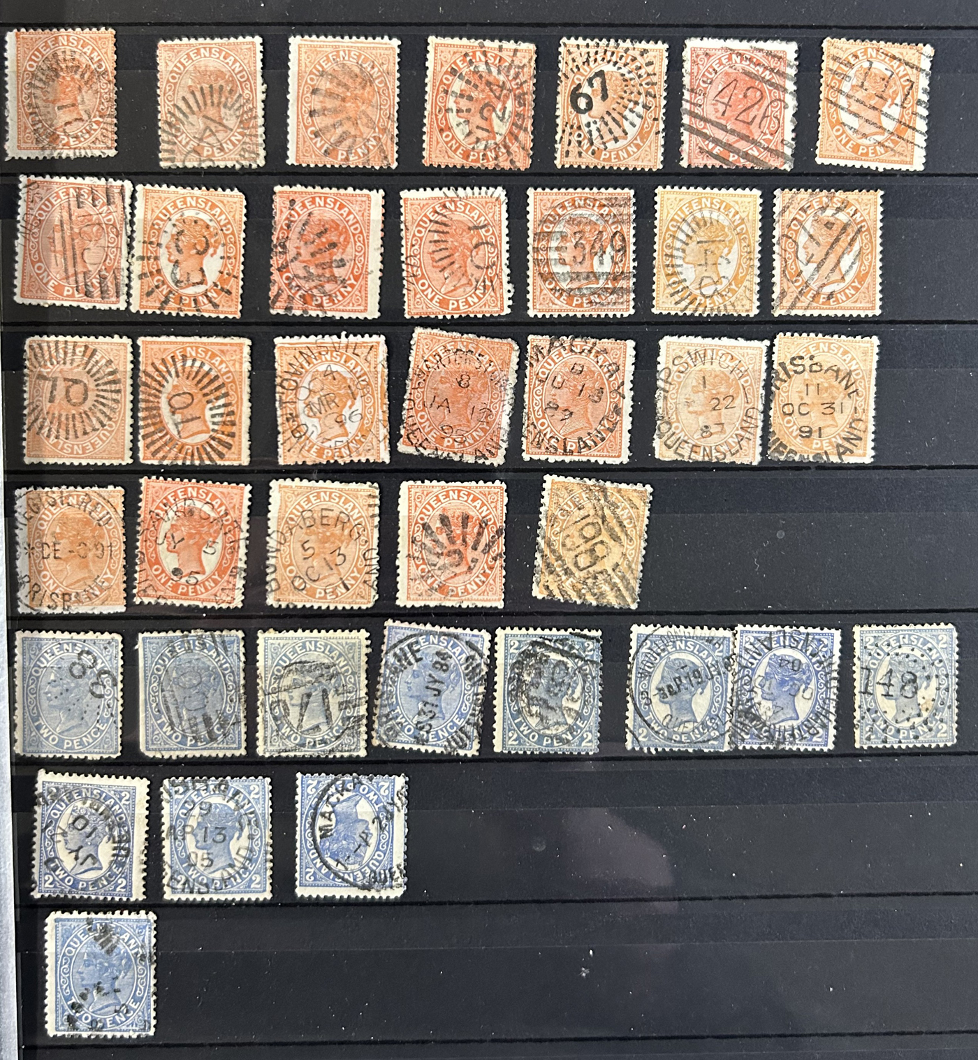 1256 O   imageSmall Collection of Interesting Town Postmarks on Australian States Stamps, filling two medium stockbooks and 9 stock sheets with roughly 750 stamps, each with either town cancels (mostly choice well centered towns) or numeral cancels. A useful lot for the enthusiast, we only show the highlights of the lot online. (Scan 1) (Scan 2) (Scan 3) (Scan 4) (Scan 5) (Scan 6) (Scan 7) (Scan 8) (Scan 9) (Scan 10) (Scan 11) (Scan 12) (Scan 13) (All Scans)