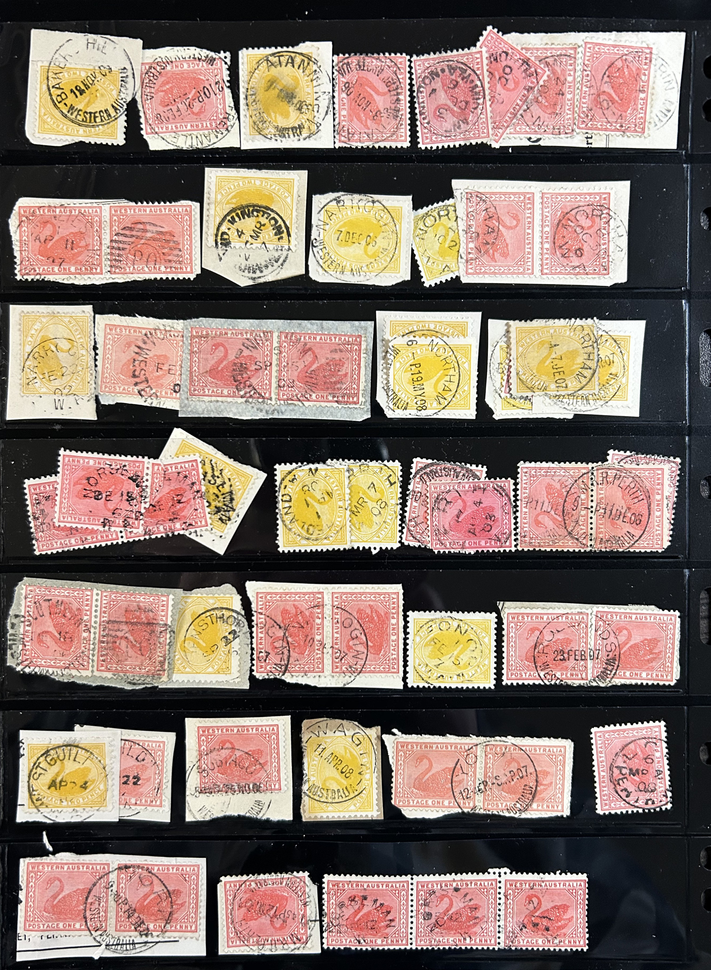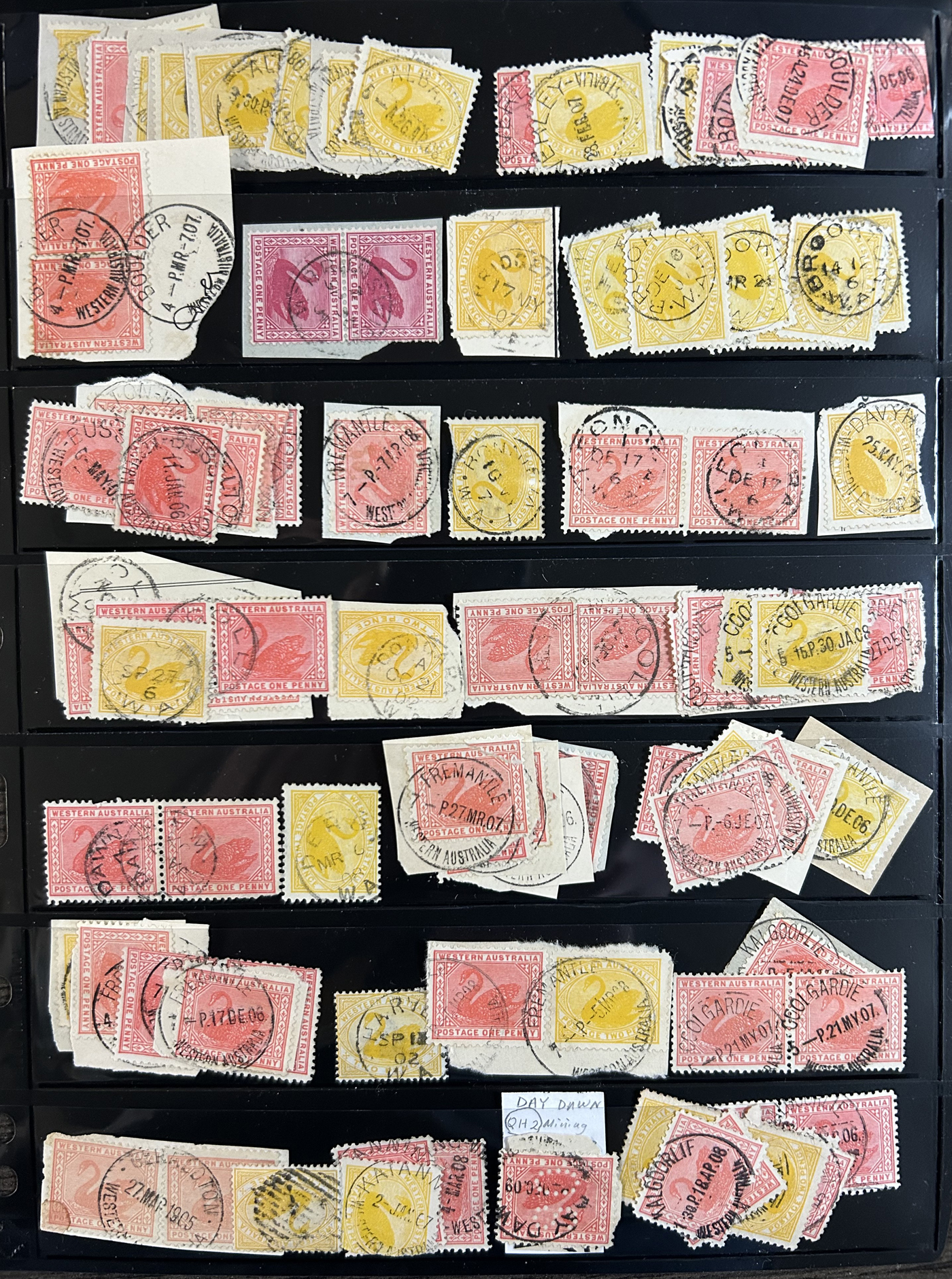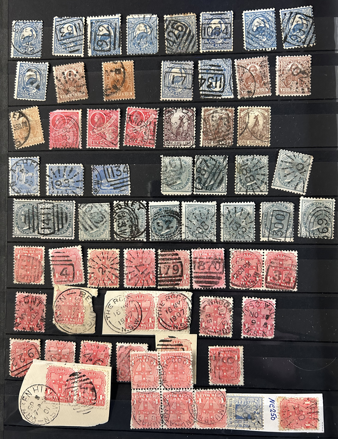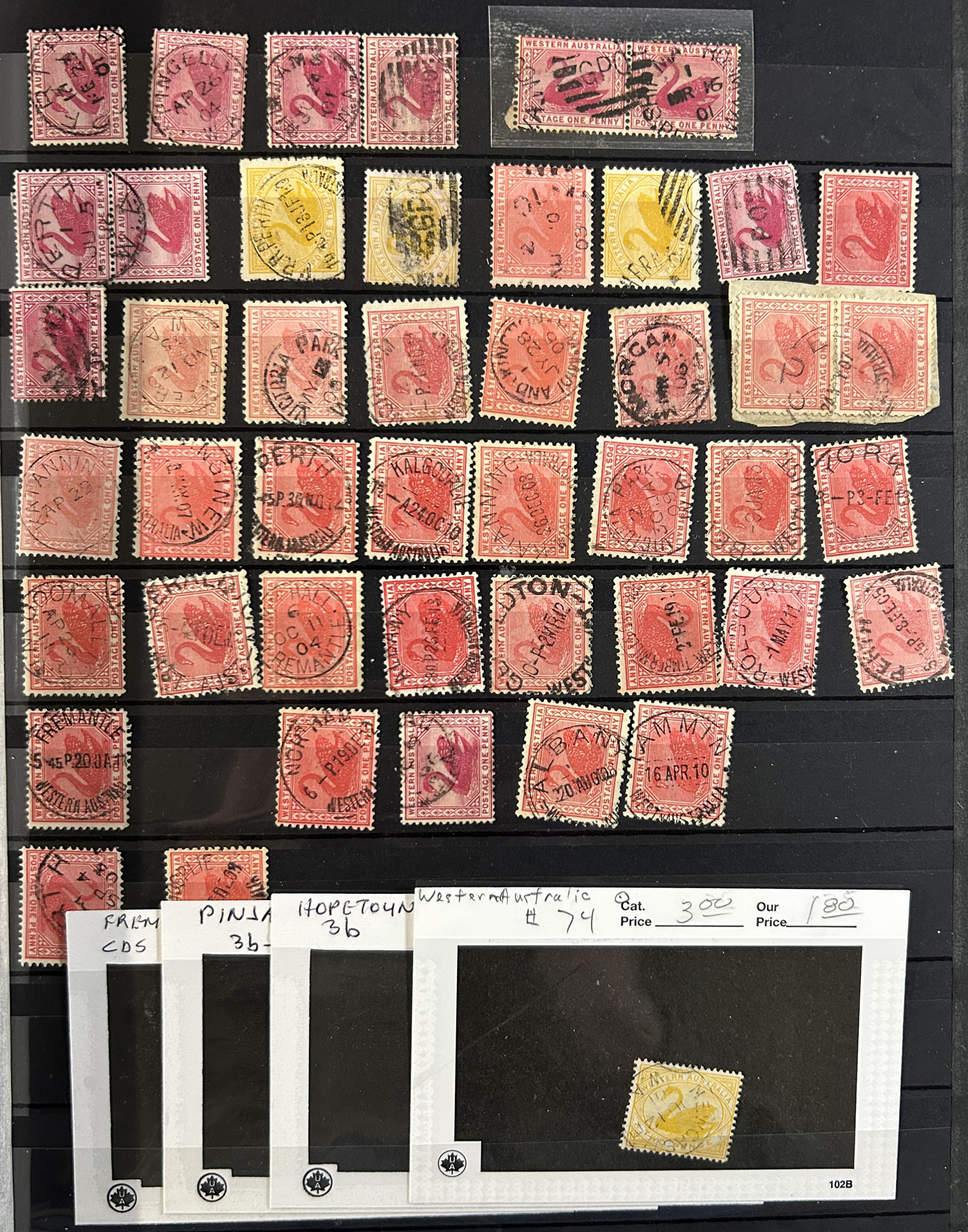 1256 O   imageSmall Collection of Interesting Town Postmarks on Australian States Stamps, filling two medium stockbooks and 9 stock sheets with roughly 750 stamps, each with either town cancels (mostly choice well centered towns) or numeral cancels. A useful lot for the enthusiast, we only show the highlights of the lot online. (Scan 1) (Scan 2) (Scan 3) (Scan 4) (Scan 5) (Scan 6) (Scan 7) (Scan 8) (Scan 9) (Scan 10) (Scan 11) (Scan 12) (Scan 13) (All Scans)