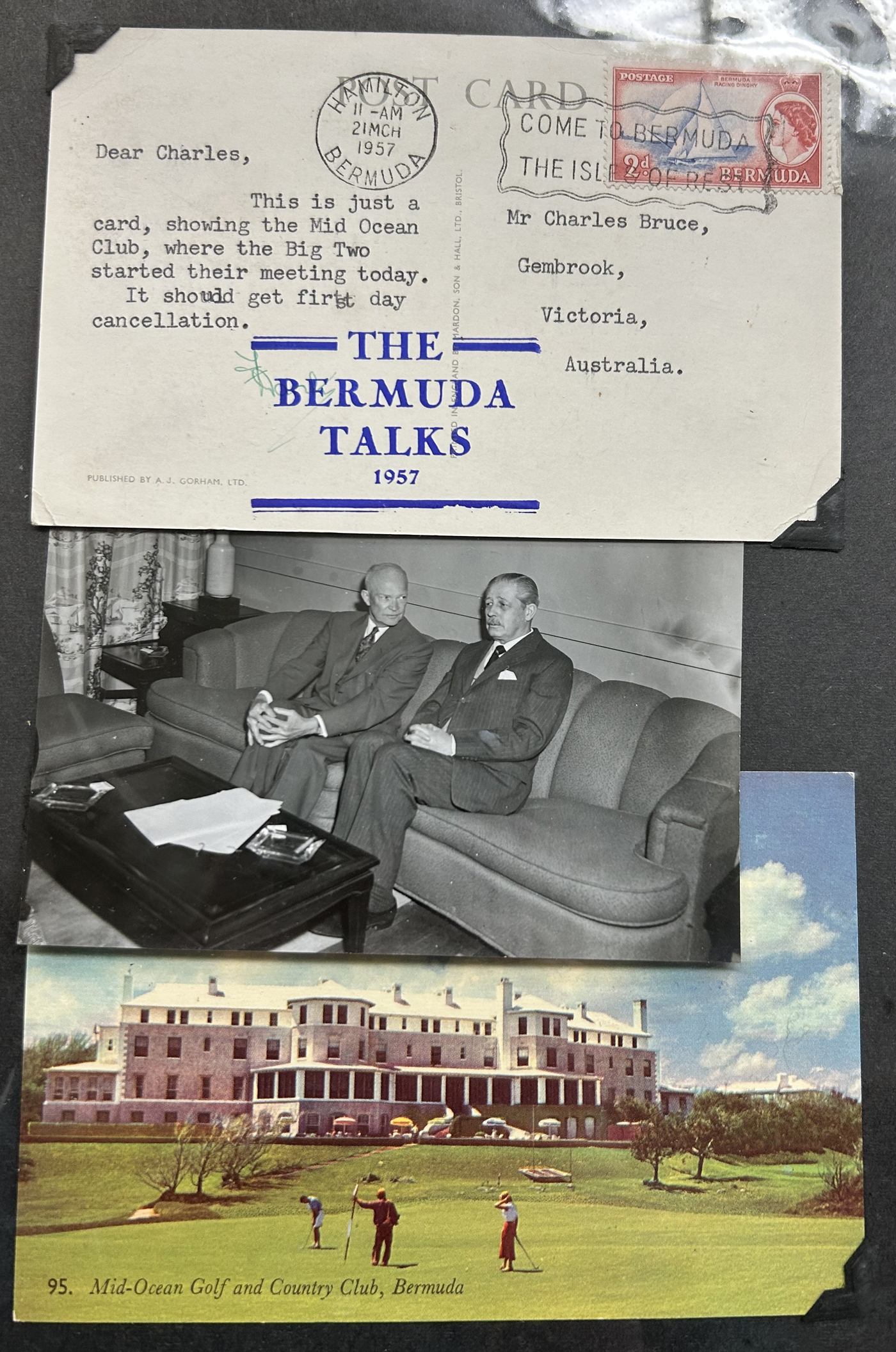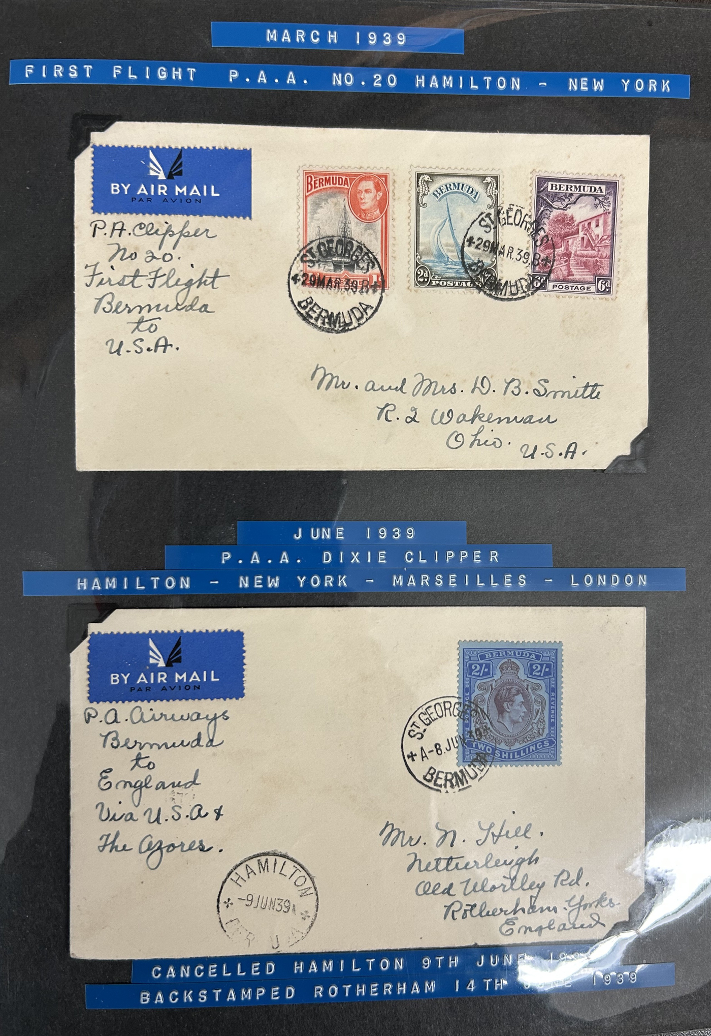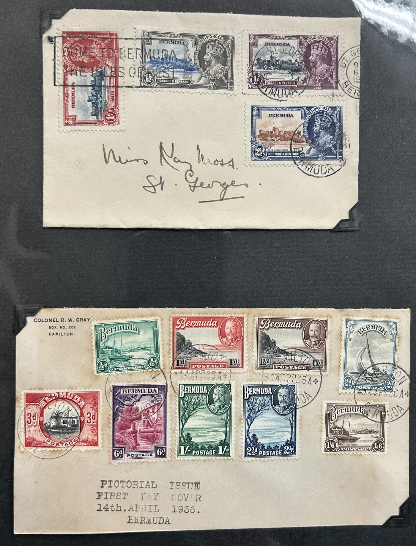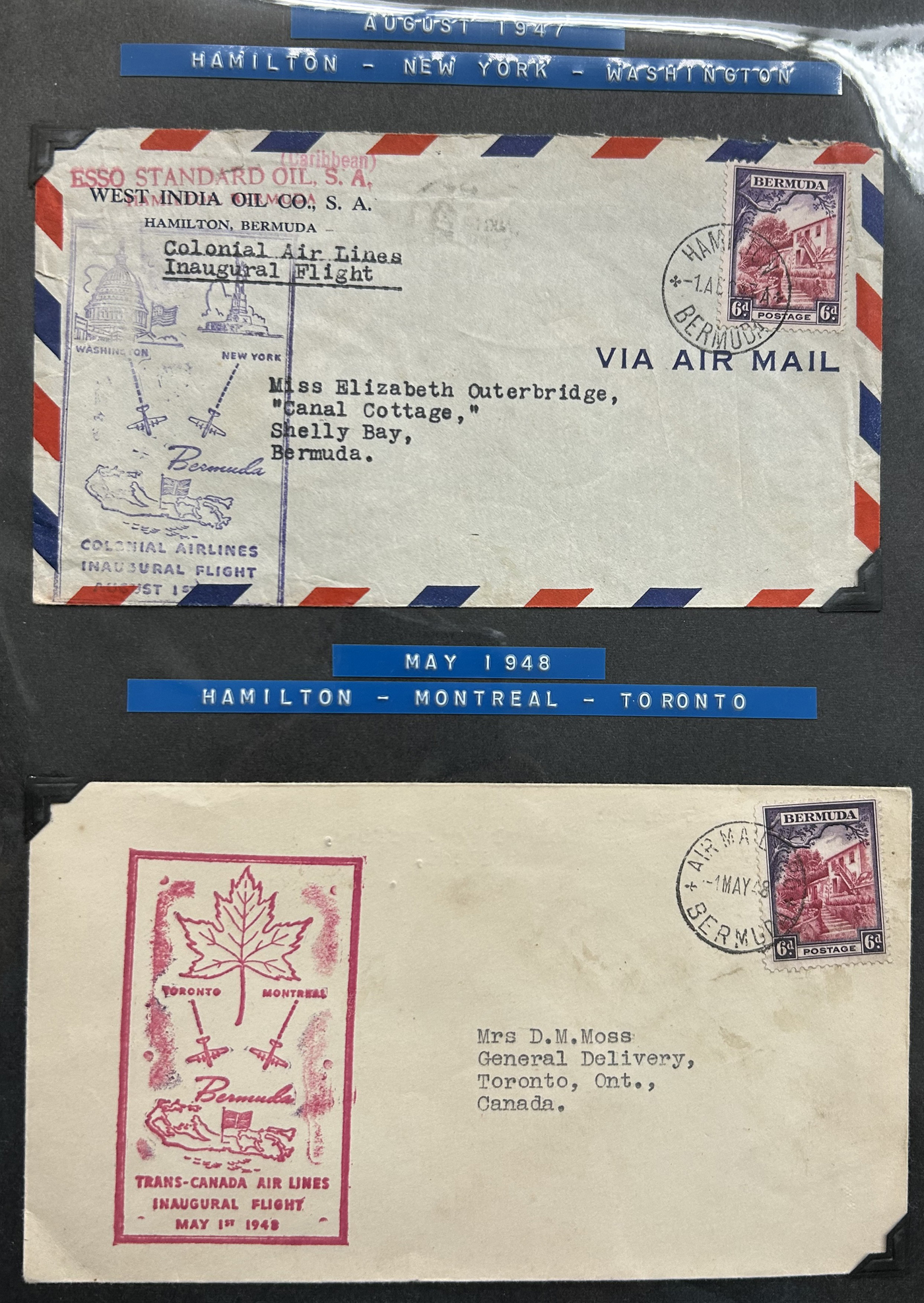 1257 CVR   imageCollection of Bermuda Postal History, Victorian Era to the 1960s, with just over 60 items, including 17 postal stationery cards (QV to QEII, mostly unused, with two SPECIMEN cards, a UPU card with reply portion attached, etc.). Rest are covers, including first day covers (noted 1935 Jubilee, 1936 Pictorial, 1946 Peace, 1949 U.P.U., and many more), first flight covers from 1937 to 1948, various event covers, etc. We also note better frankings, including a few "key plates", etc. Overall very fine and desireable, our photos only show a sampling. (Scan 1) (Scan 2) (Scan 3) (Scan 4) (Scan 5) (Scan 6) (Scan 7) (Scan 8) (Scan 9) (Scan 10) (Scan 11) (Scan 12) (Scan 13) (All Scans)