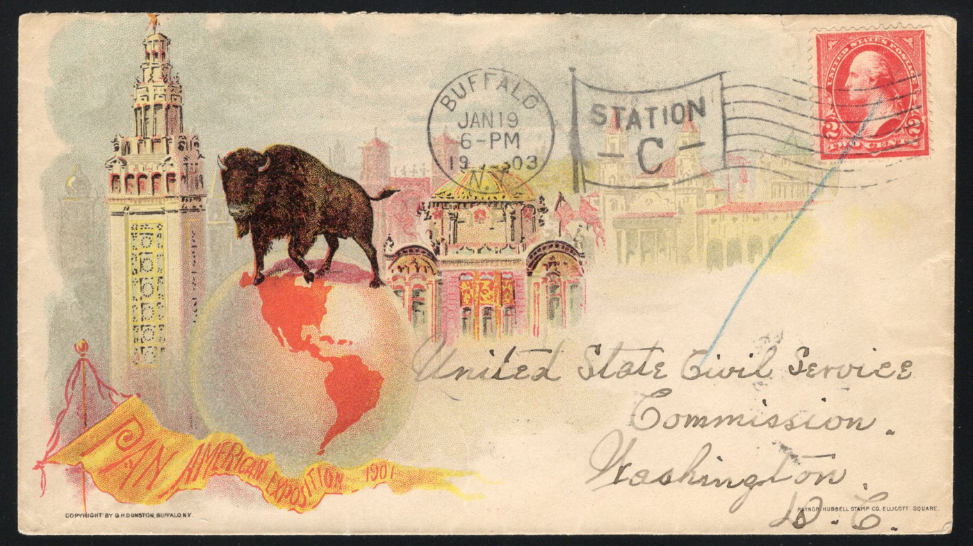 1348 CVR 246 image1903 2c Pan American Illustrated Advertising Cover, mailed from Buffalo, NY on JAN.19.1903 ("Station C" flag cancel) to Washington DC (JAN.20 receiver on back), with colourful exposition illustrations, very fine.