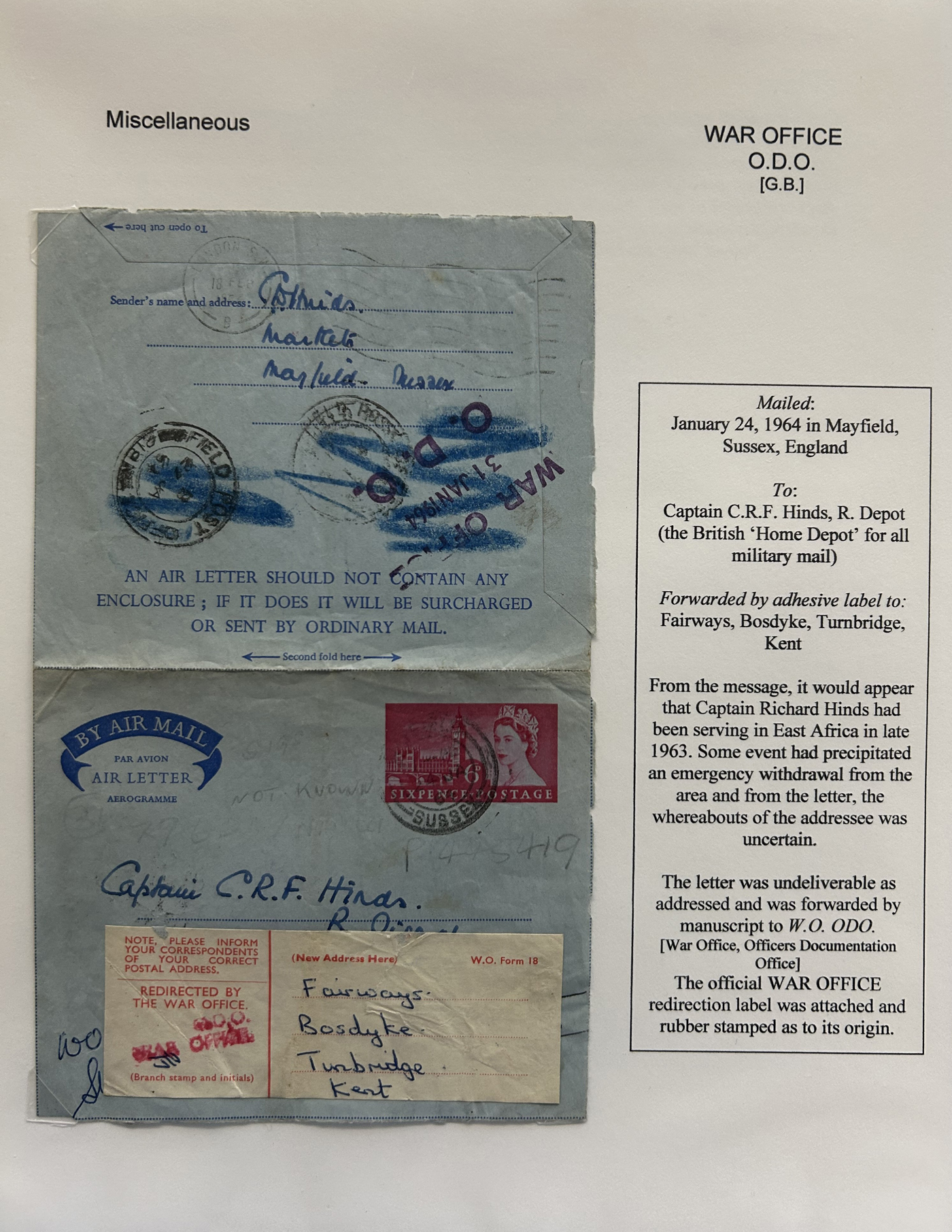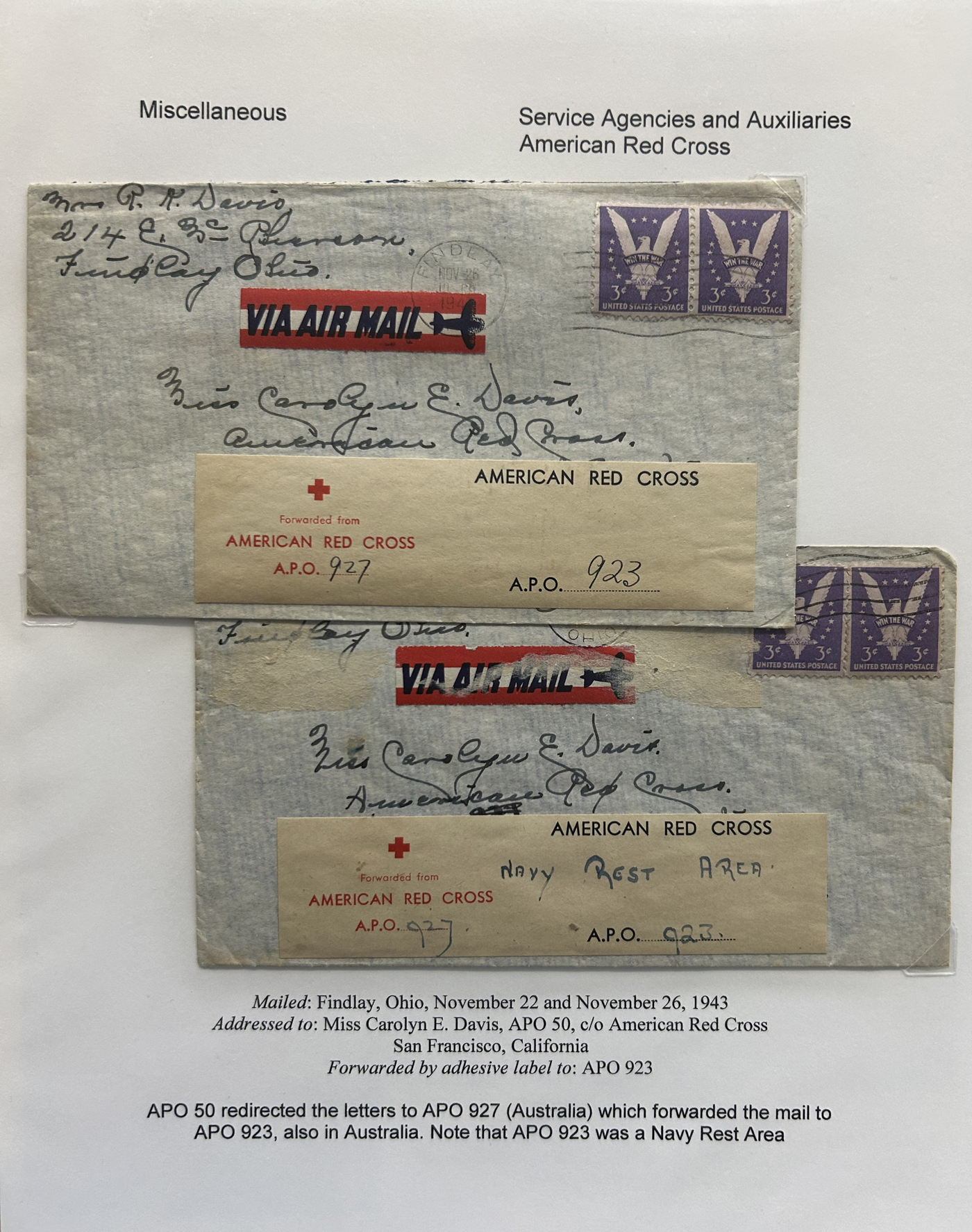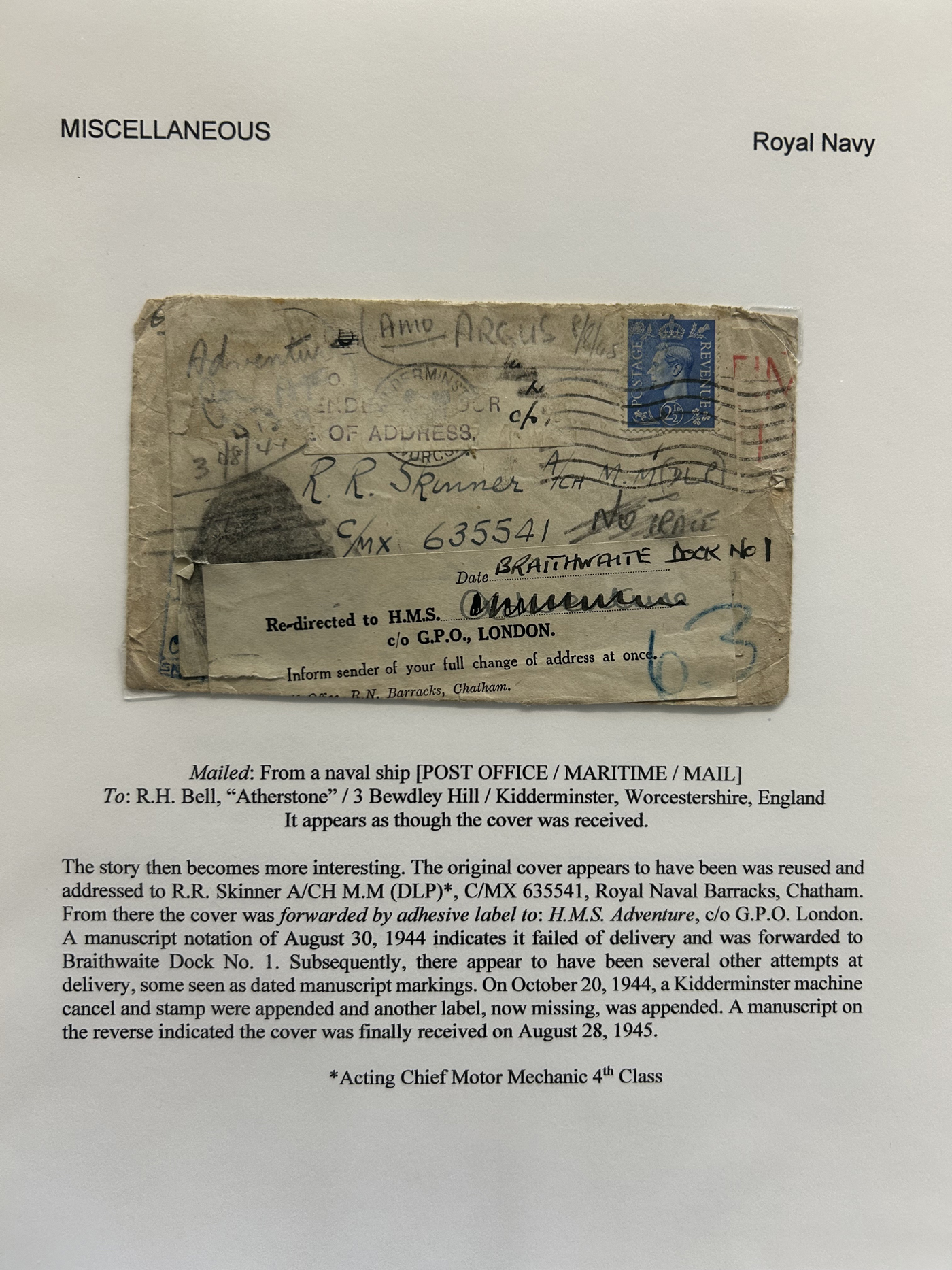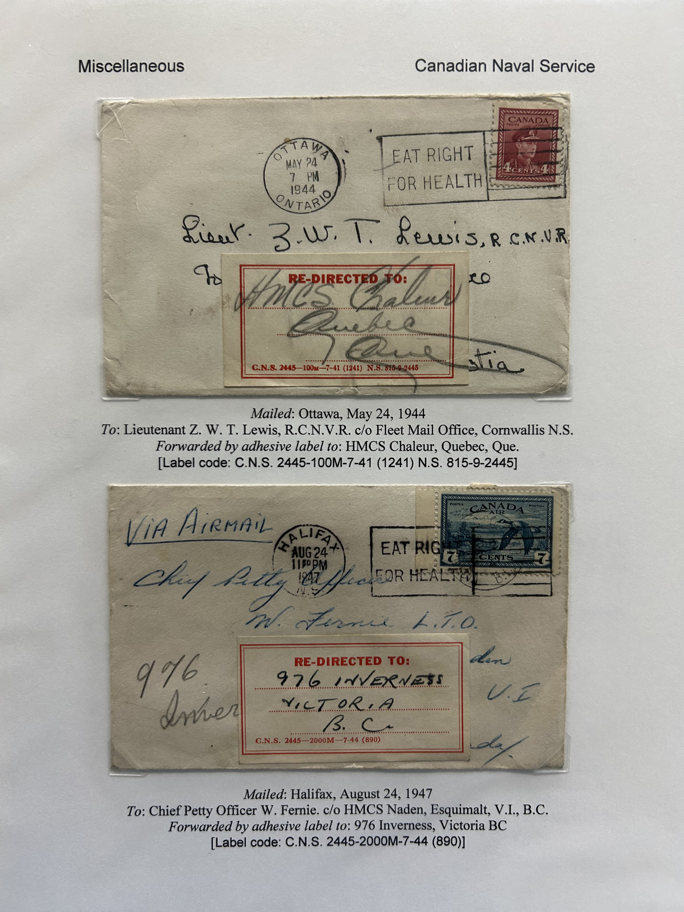 1355 CVR   imageSpecialized Collection / Exhibit of 30 Worldwide Covers with Different Various Forwarding Address Labels, 1920s to 1970s, majority are well written-up on pages, sorted by type of label, with categories such as Military, Service Agencies, Travel Agencies, Shipping Agencies and a few Government / Official. Includes a good variety of countries (many were mailed from the US), with good frankings, postmarks, routings, etc. A fascinating collection of these scarcer forwarding address labels. Very fine, see our online pictures for a sampling. A great opportunity to start a new collection, or to add to an existing one. (Scan 1) (Scan 2) (Scan 3) (Scan 4) (Scan 5) (Scan 6) (Scan 7) (Scan 8) (Scan 9) (All Scans)