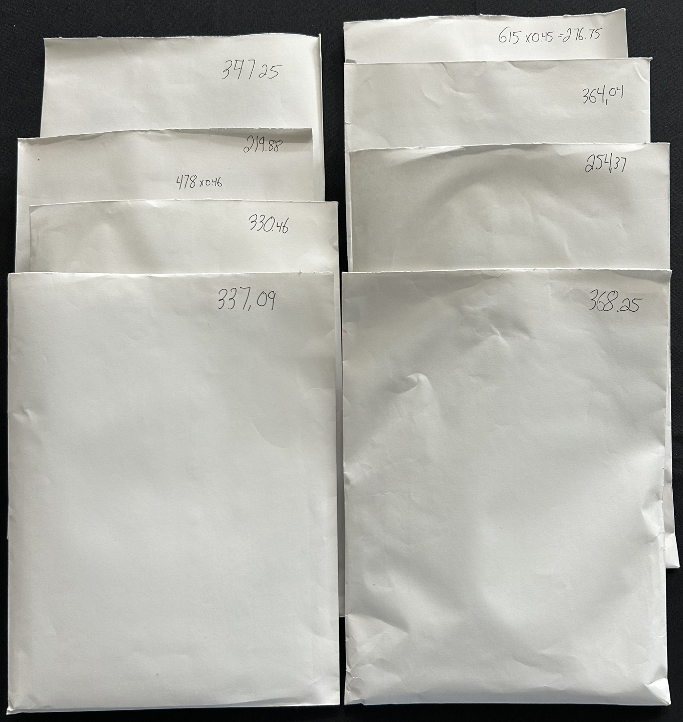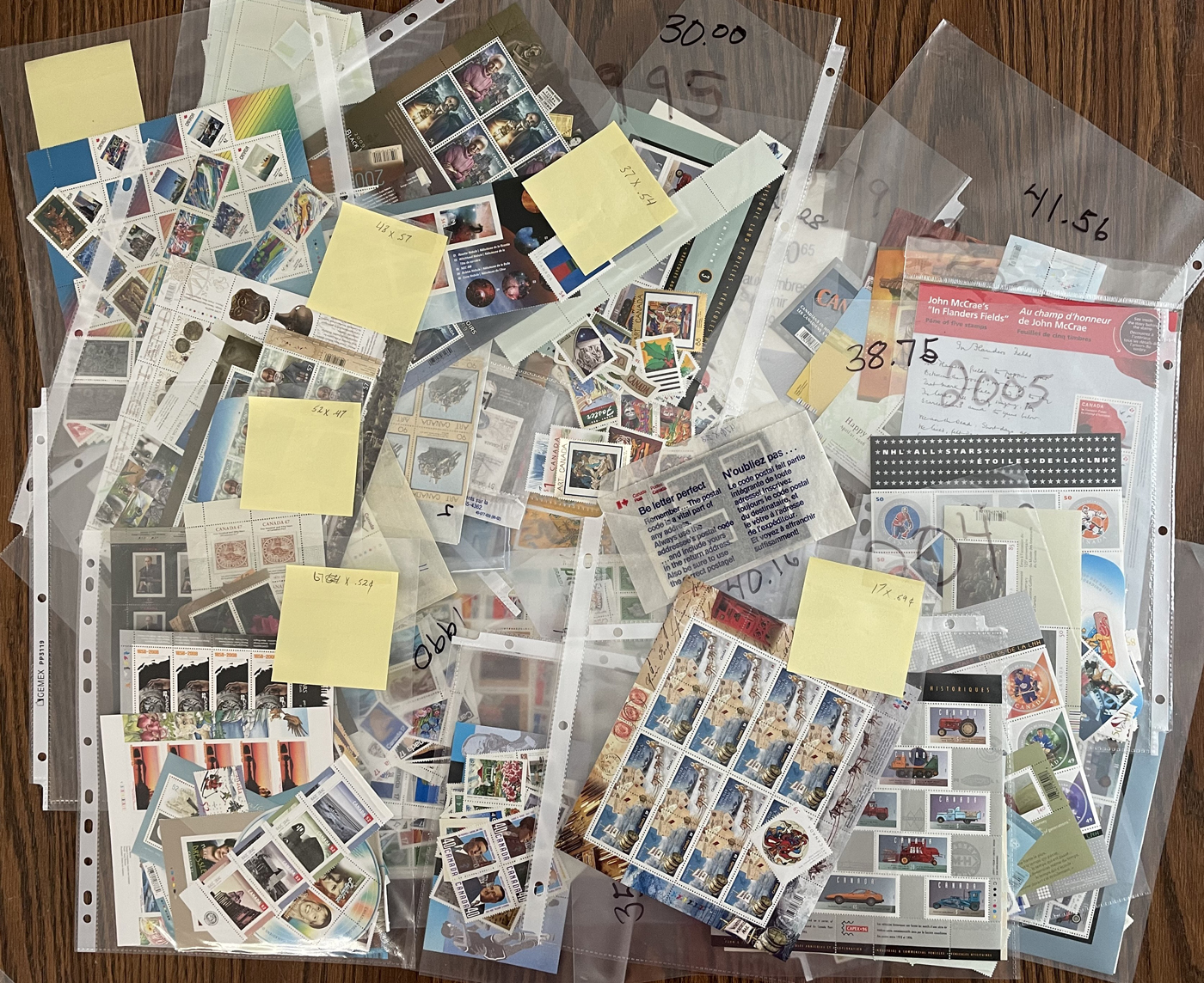1456 nh   imageLarge Group of Mint Postage, in 8 large envelopes, each containing $200 to $300 in value, mostly in sheets, sheetlets, but also saw singles, blocks and booklets. Several envelopes contain 42c to 46c values (majority of the lot), one appears to contain 50c and higher values and there are other values throughout. Face value carefully counted by consignor.