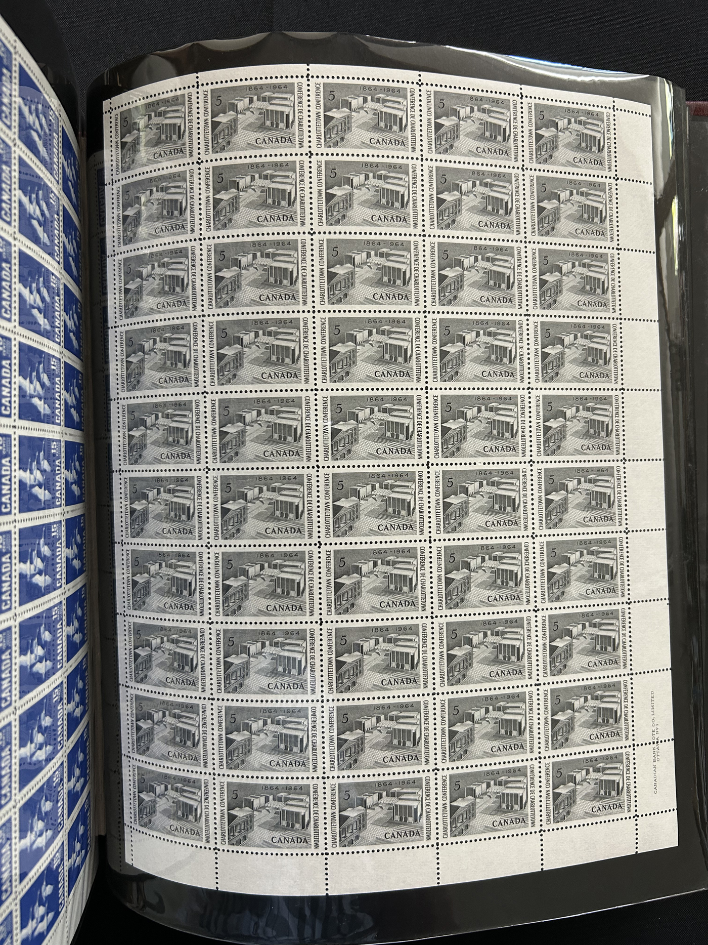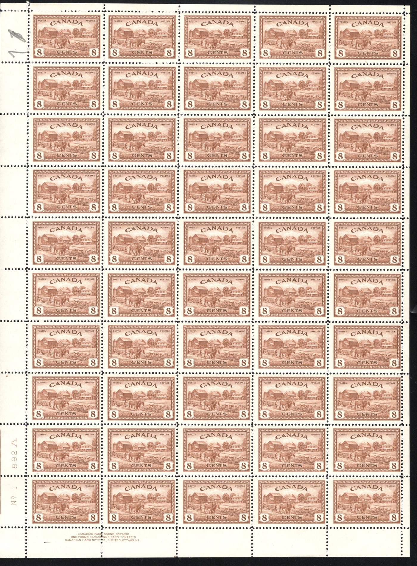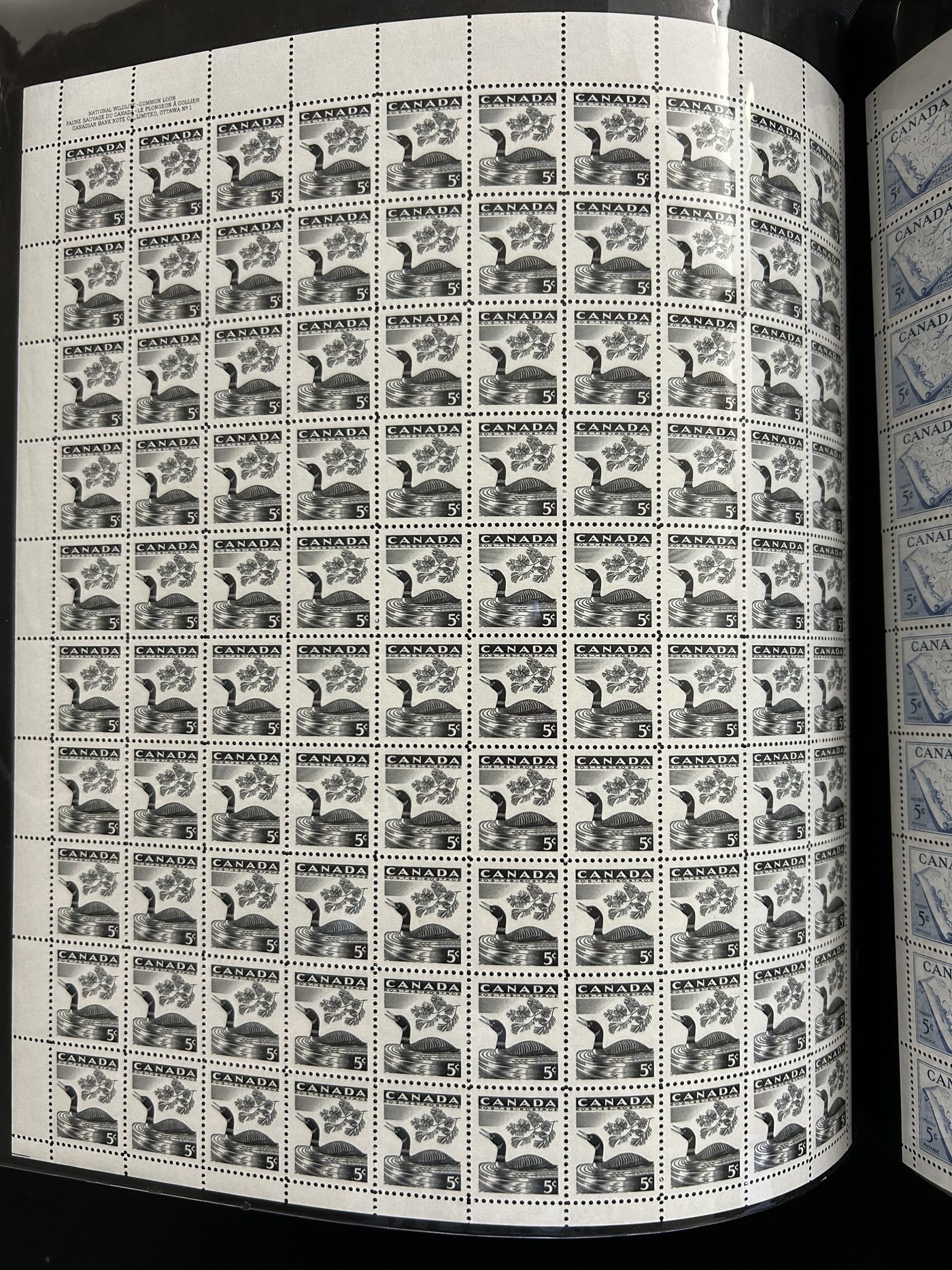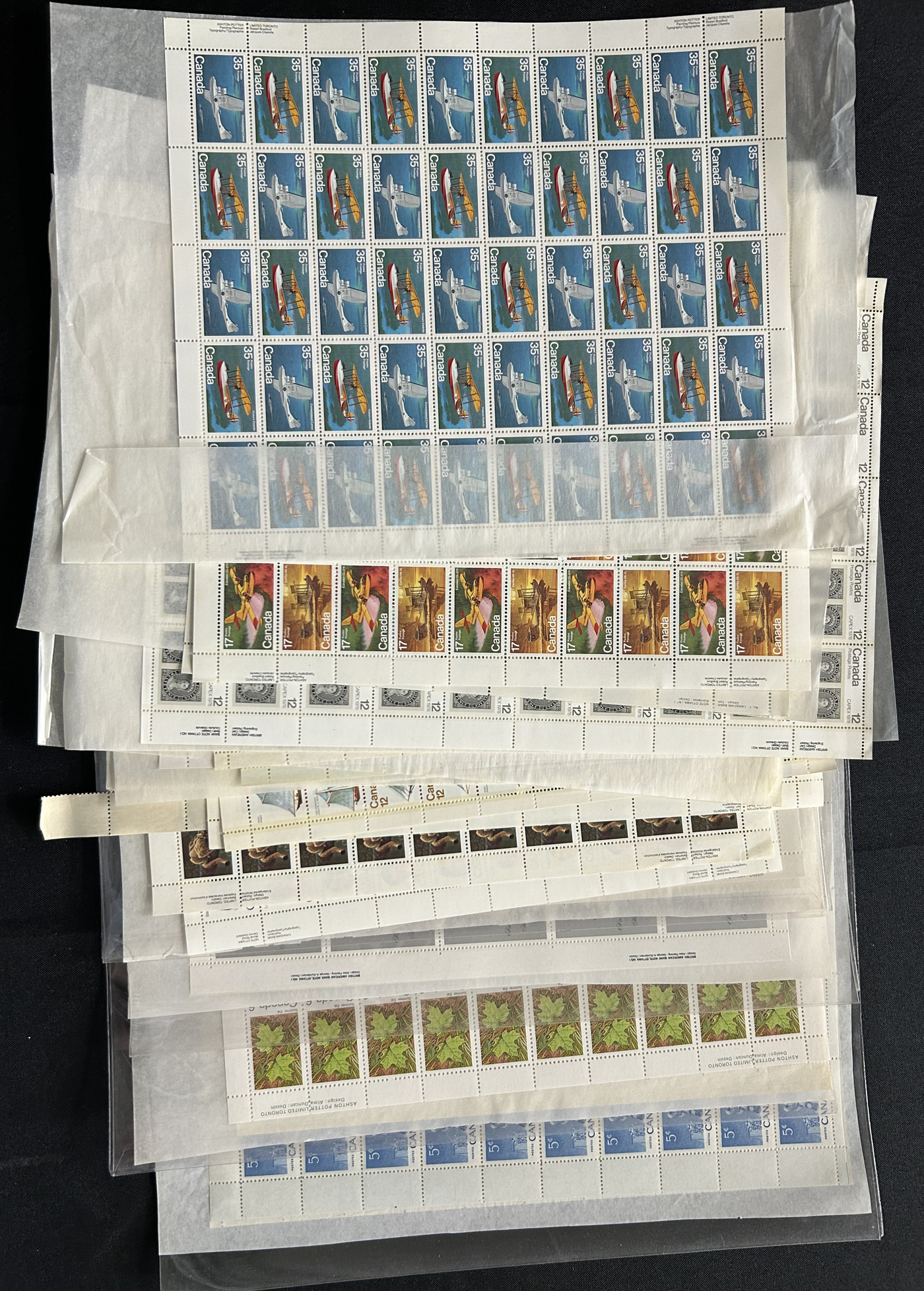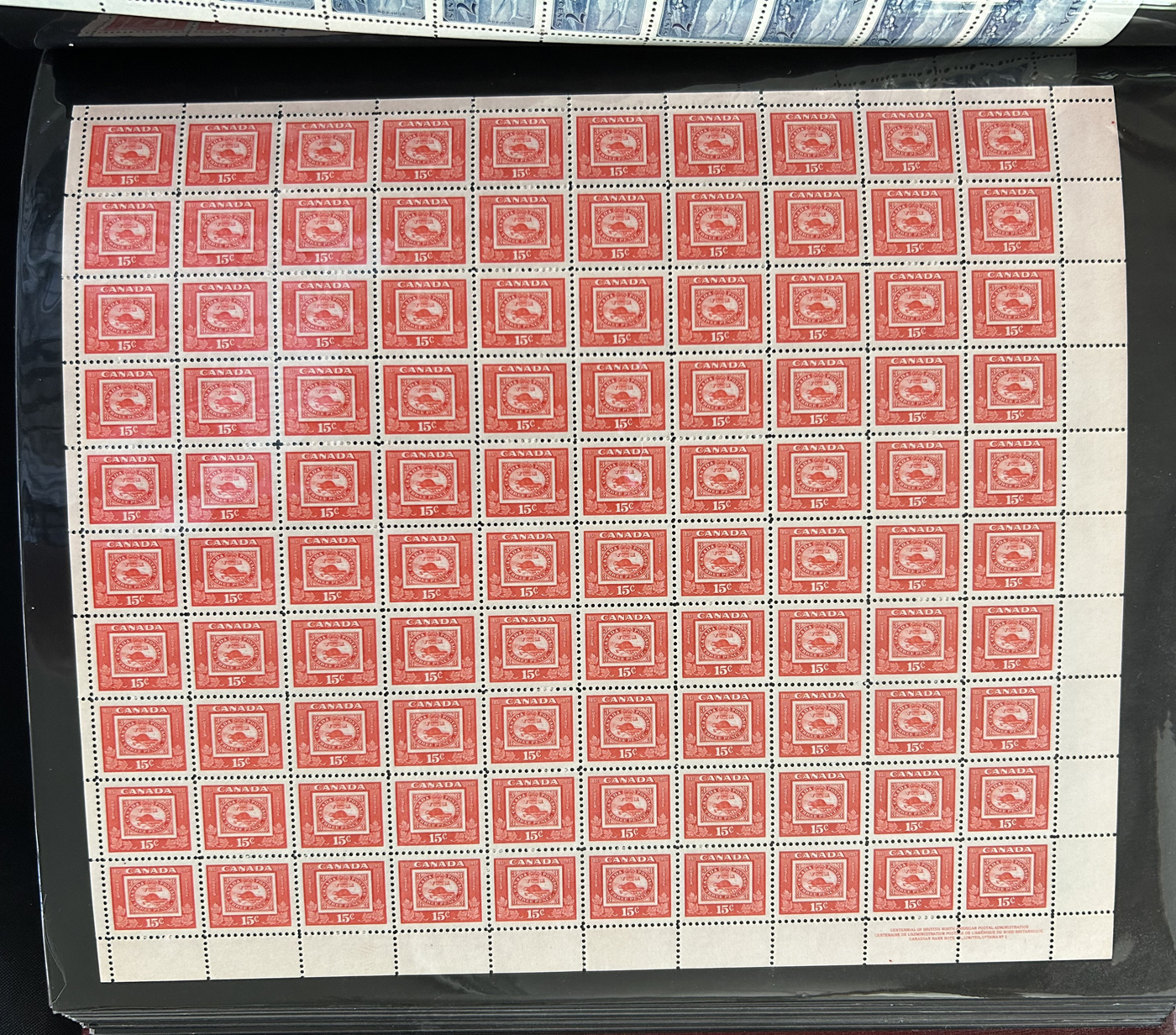 1446 nh 268/977 imageCollection of 43 Different Complete Mint Sheets, (56 sheets in all) in a sheet folder, mostly from the 5c era but includes others such as #268 ($150), 977 ($362), 372 ($150), a sheet of #781 with "EXUP 78" show overprint, 5 sheets of #700-703 (10c Ships, including #s 701i-703i), 10 sheets of #610 (Kreighoff, loaded with possibilities for varieties) as well as a sheet of Newfoundland #270, their last stamp. We note the odd separation, still an overall very fine lot. (Scan 1) (Scan 2) (Scan 3) (Scan 4) (All Scans)